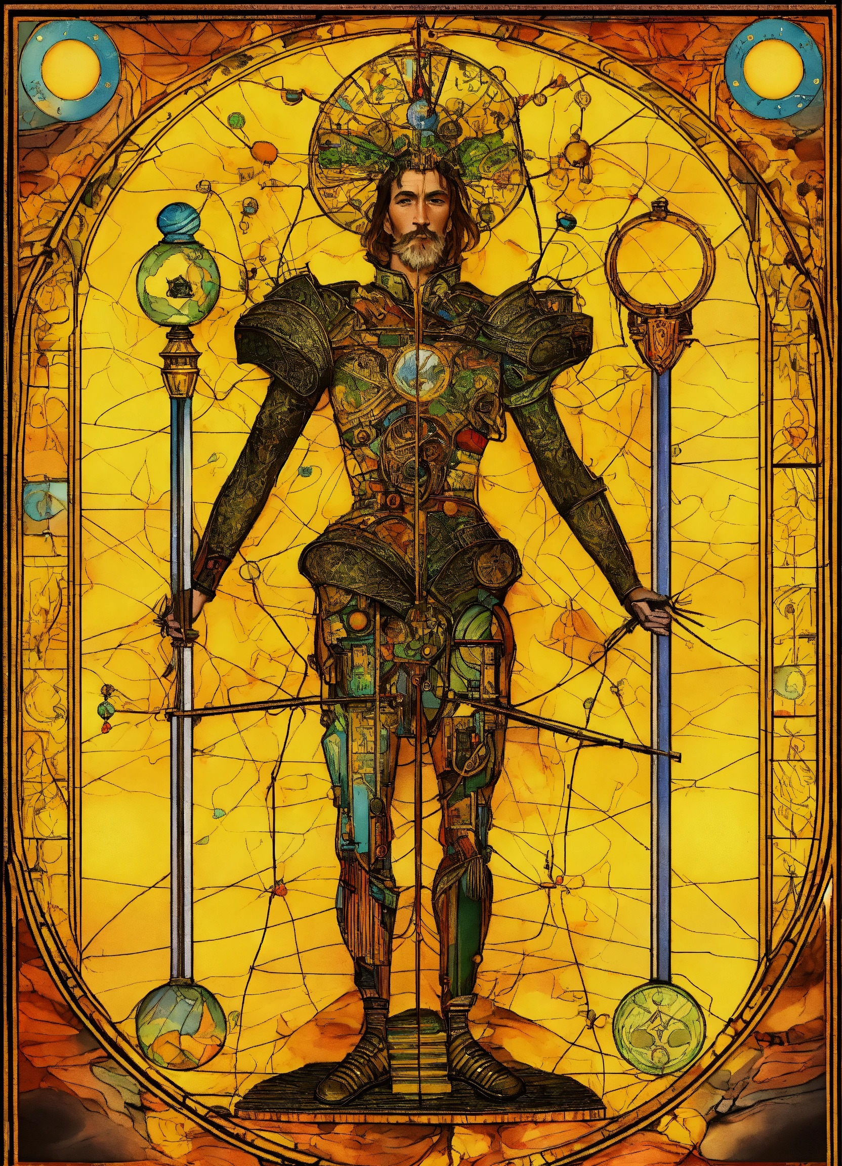 Genera una imagen sel arcano del tarot el loco version inteligencia artificial, computadora calculos al estilo matrix