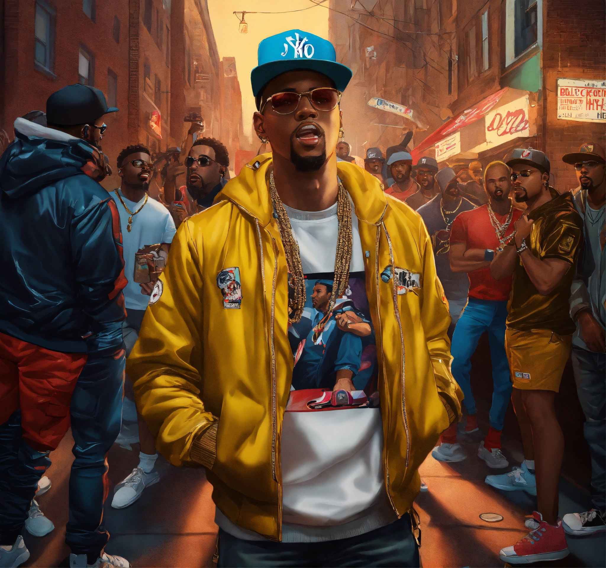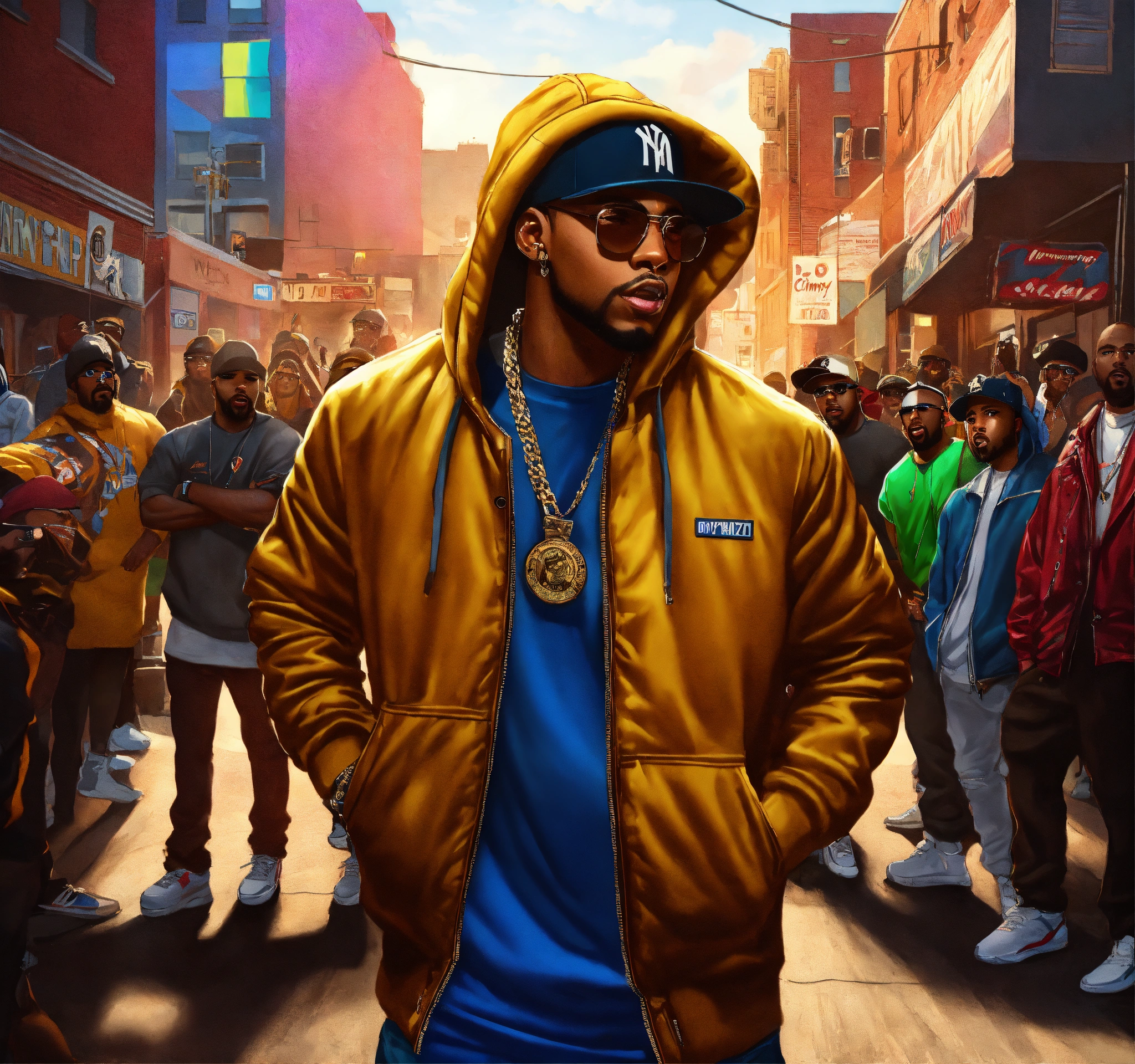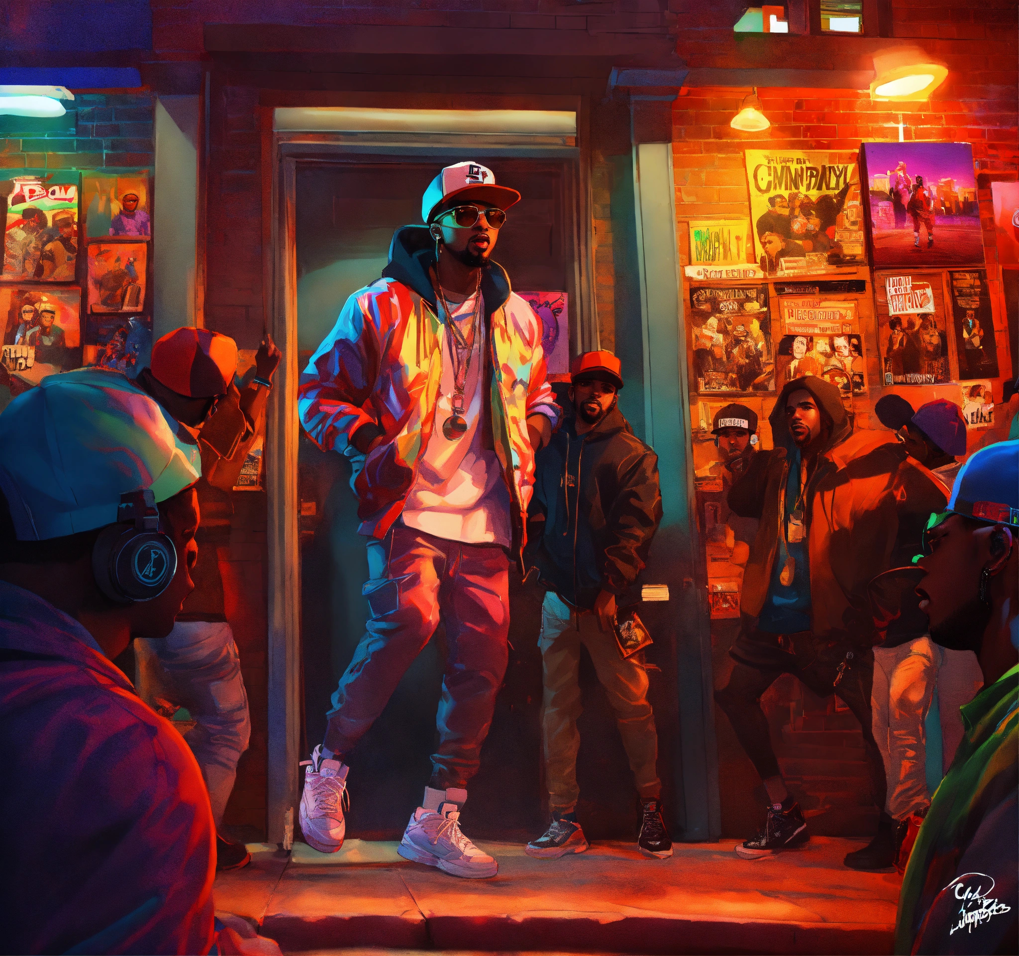 Full body pop art, hyperrealist portrait of rapper "cassidy" rapping at a record label cimpany with swizz beats with black people cheering in the streets of philadelphia hip hop memorabilia on walls in background, fantasy art, photo realistic, dynamic lighting, artstation, poster, volumetric lighting, very detailed faces, 4 k, award winning