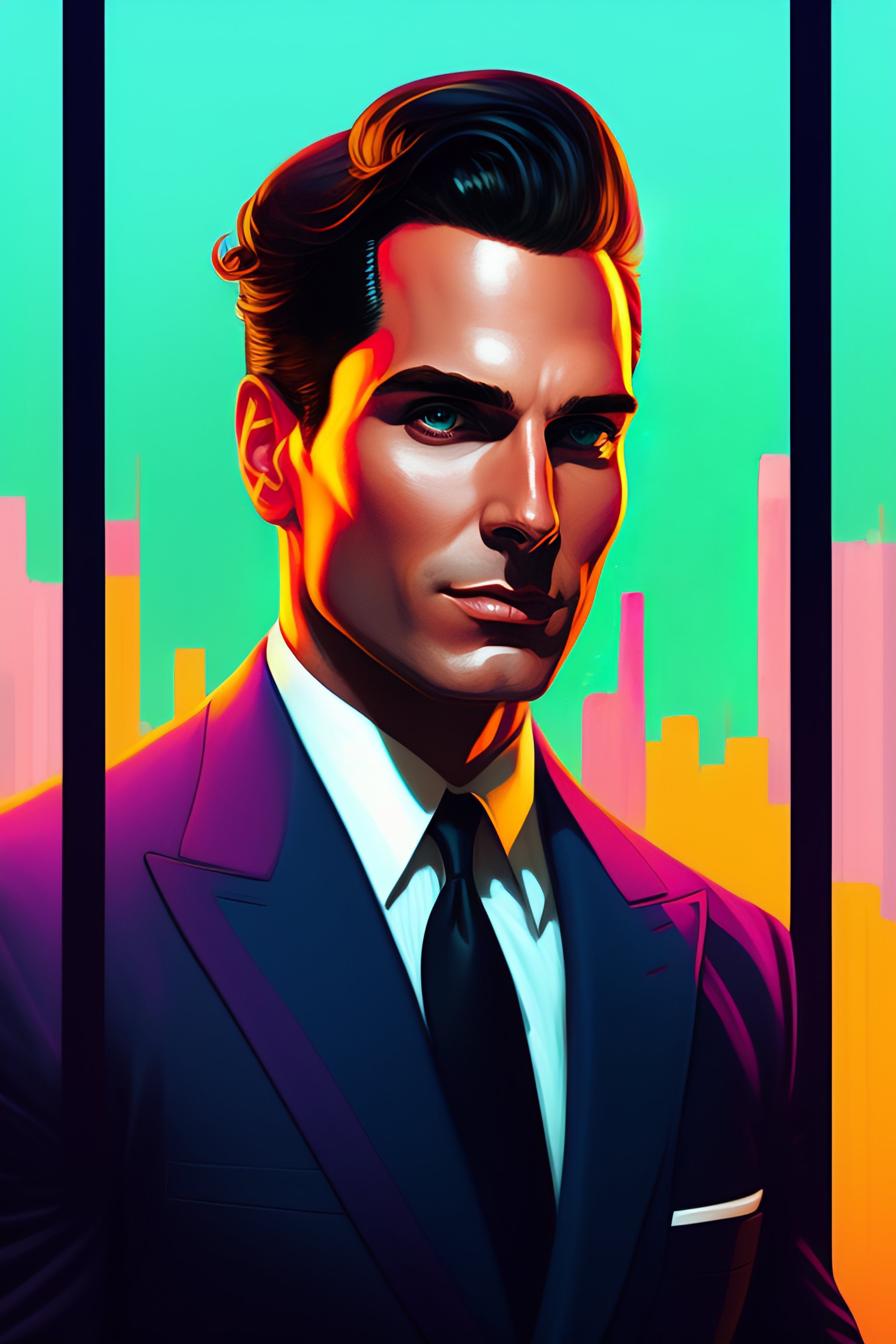 A colorful comic noir illustration painting of patrick bateman by sachin teng and sam yang!! and artgerm!! and alphonse mucha, lois van baarle and ross tran!!. in style of digital art, symmetry, hyper detailed. octane render. trending on artstation