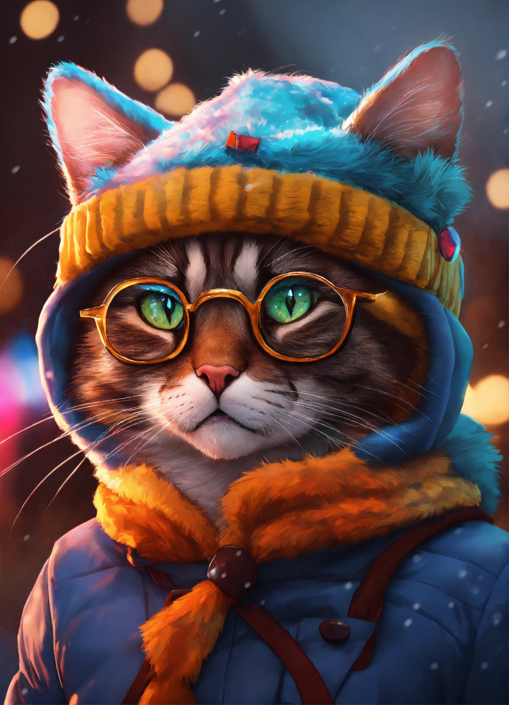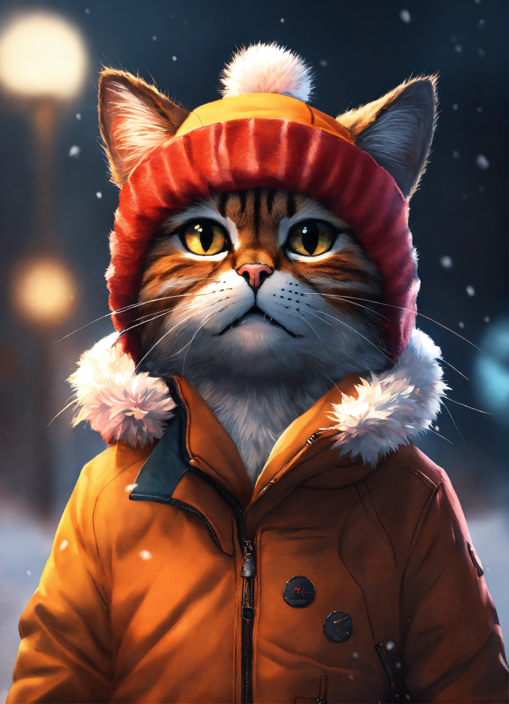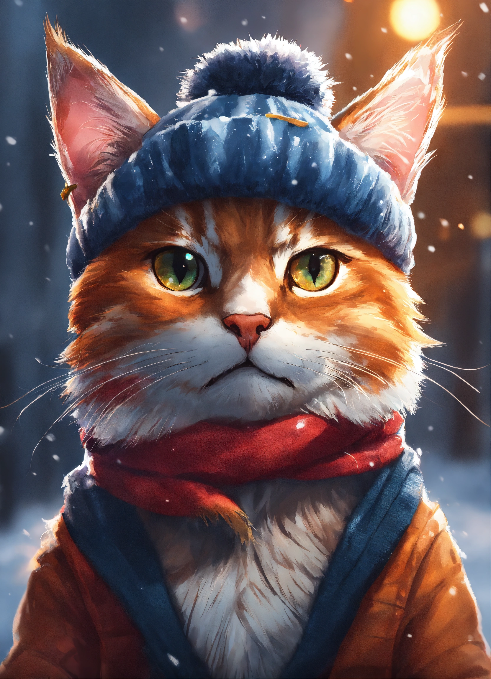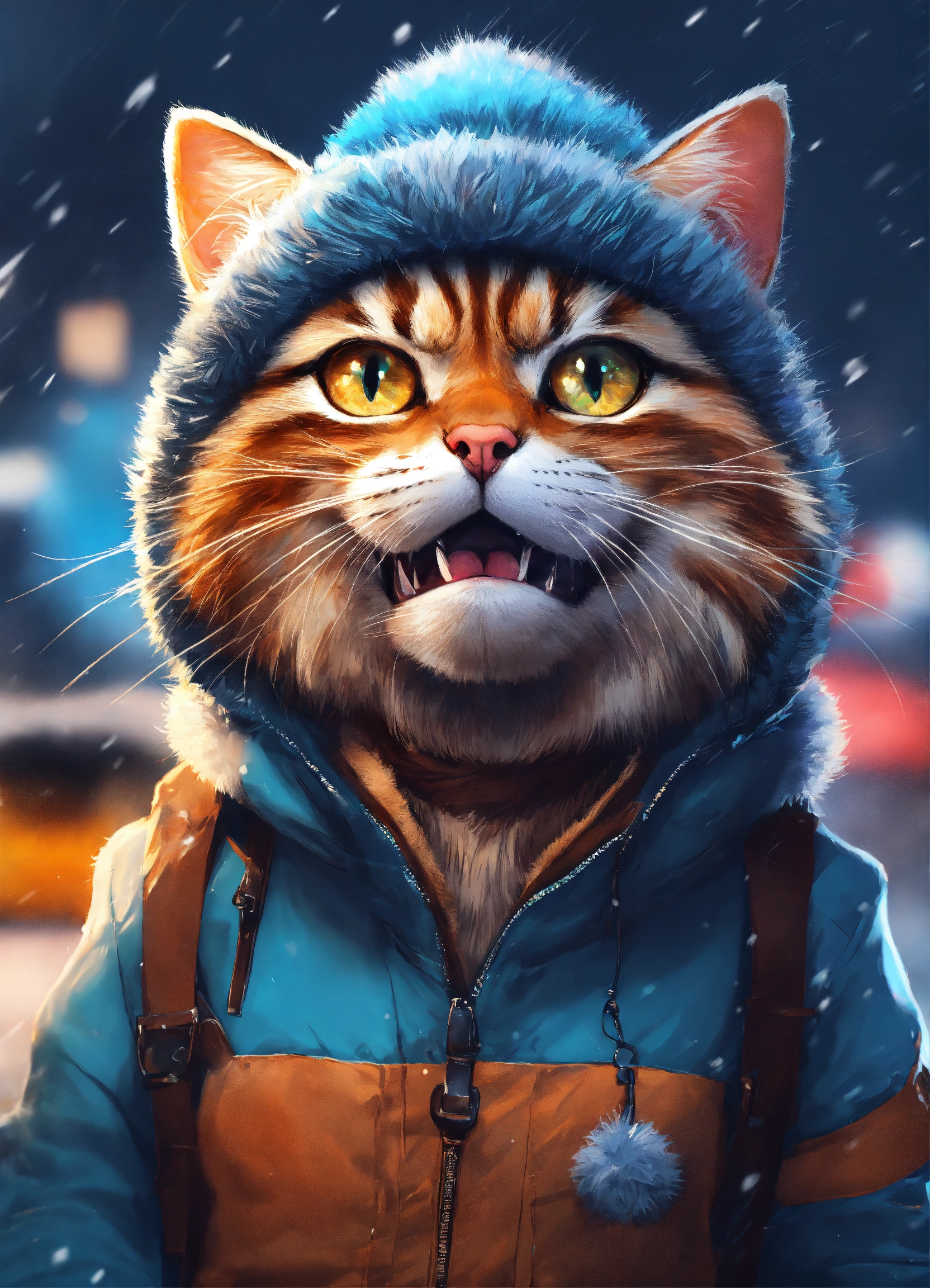 Cool cat growling looking mean with a winter hat on and ear sticking out of hat art style 8k trending on artstation
