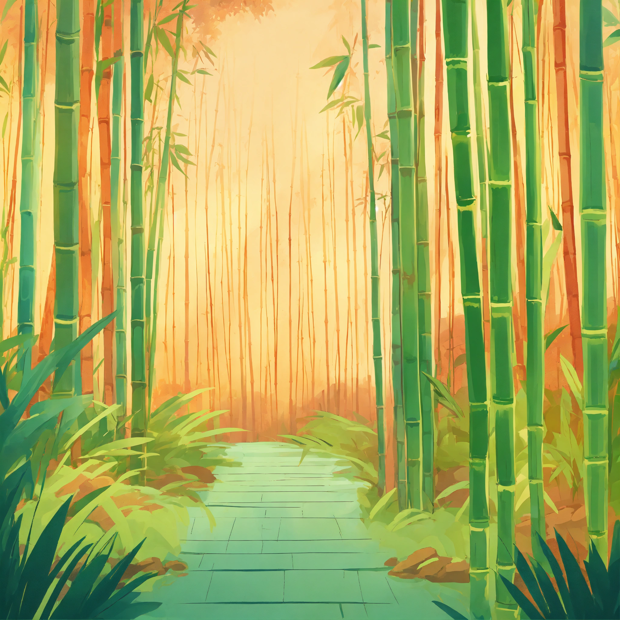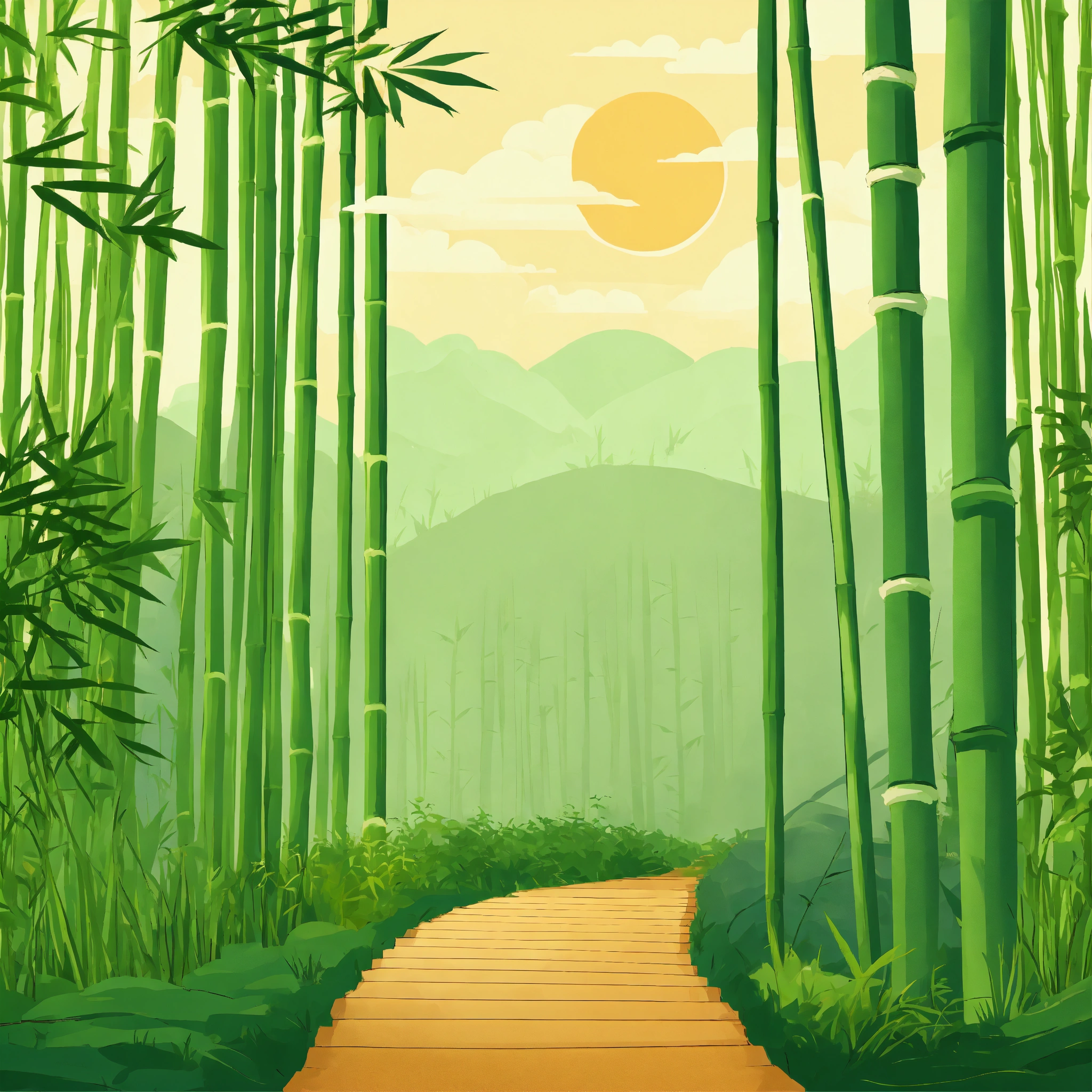 Bamboo forest, cozy webpage background hero image for adorable platform modern minimalist illustration