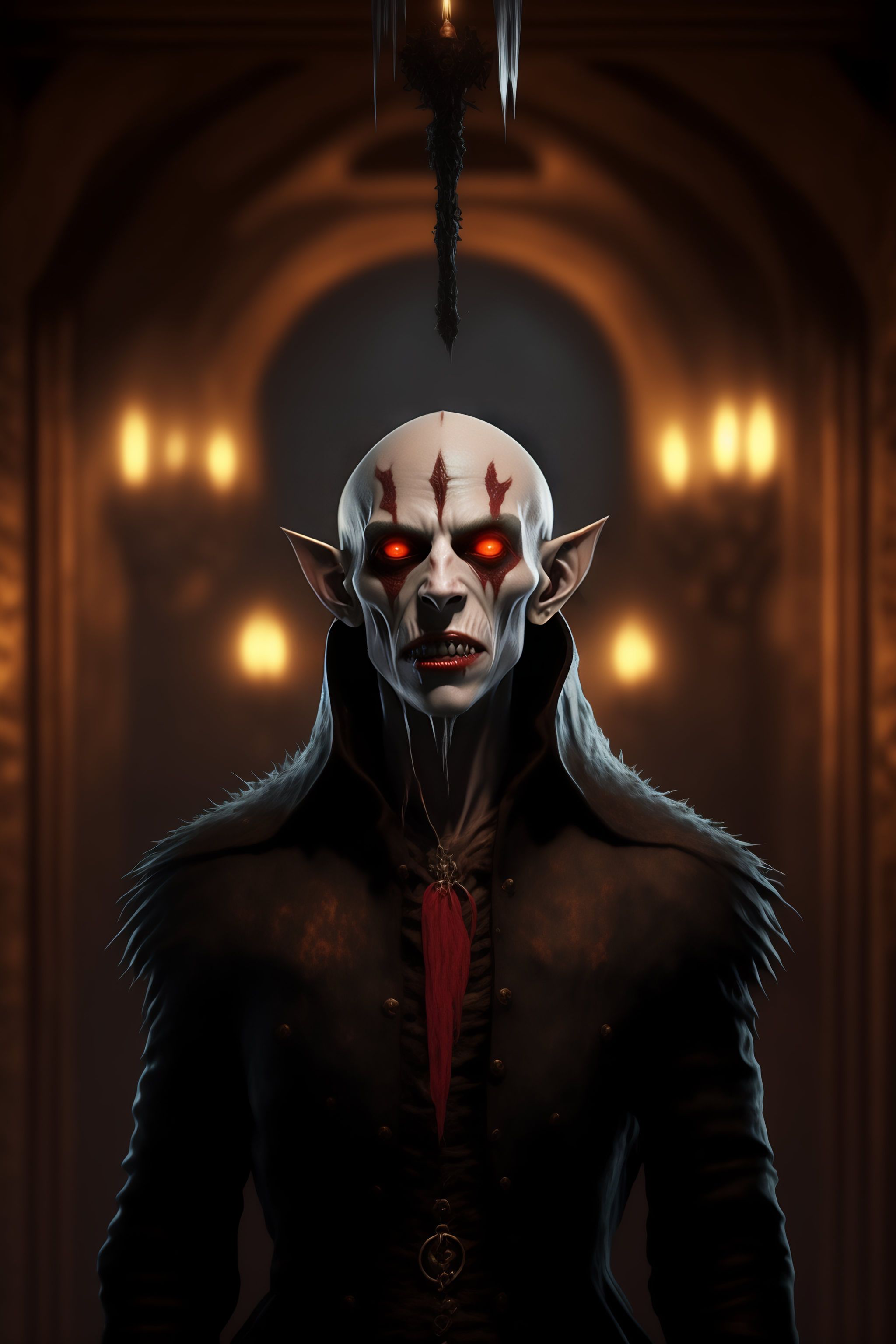 Nosferatu, vampire the masquerade, repulsive, sewer rat, leper, withered, twisted body, caved-in nose, bleeding gums, extended incisors, elongated skull, monstrous, hideous face, deformed, grotesque, hideous, scarred, made of scabs and scars, shedding skin, sores, streaked with grime, all-black eyes, large pointed ears, rodent-like, skin coated in fingernails, pox, tissue growths, skin coated in tiny carapaces