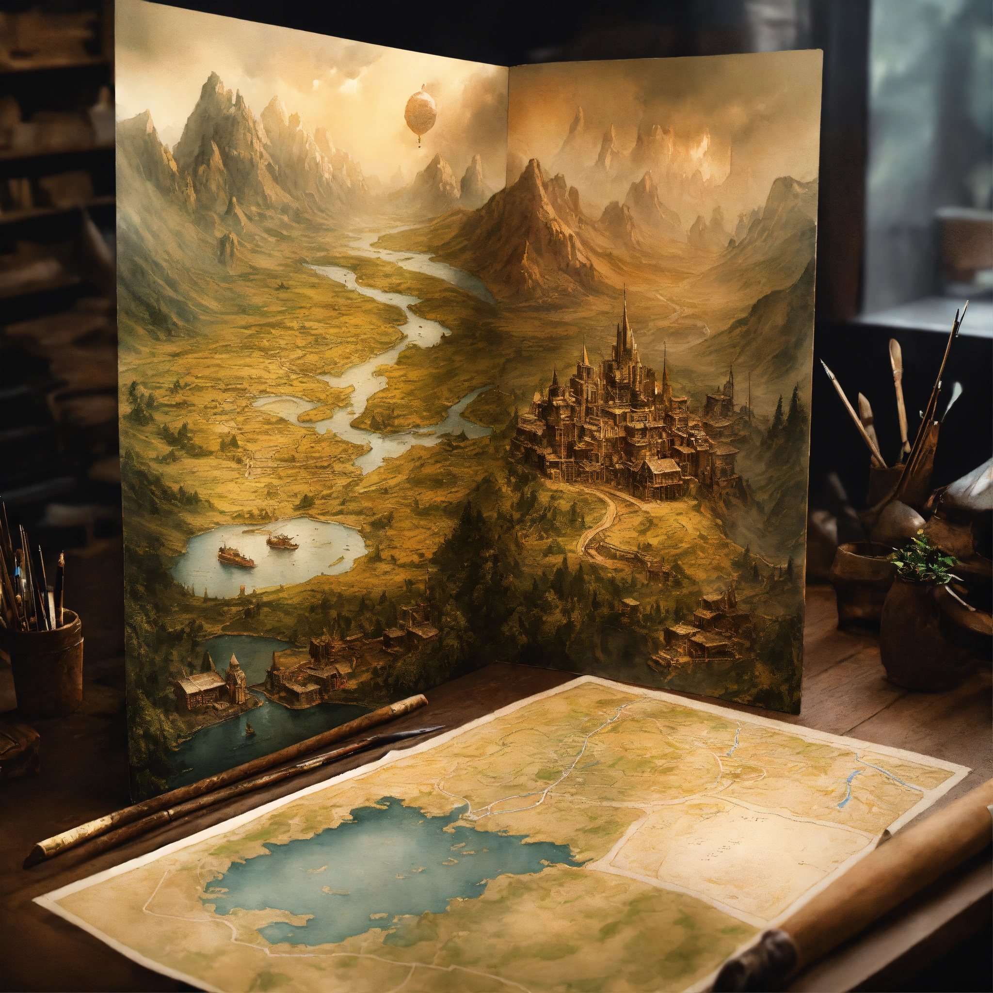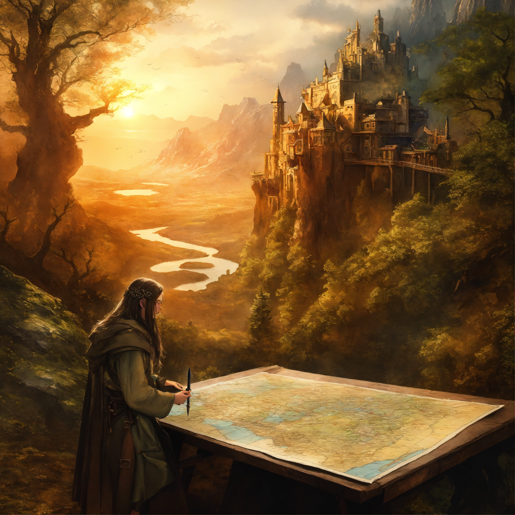 Depict an otherworldly elvish treasure map, the image should evoke a sense of awe and wonder, inviting viewers to embark on an imaginative journey. cinematic, 4k, sharp focus, hyperrealism painting concept art of detailed character design matte painting, 4 k resolution blade runner, watercolour and ink by cicely mary barker