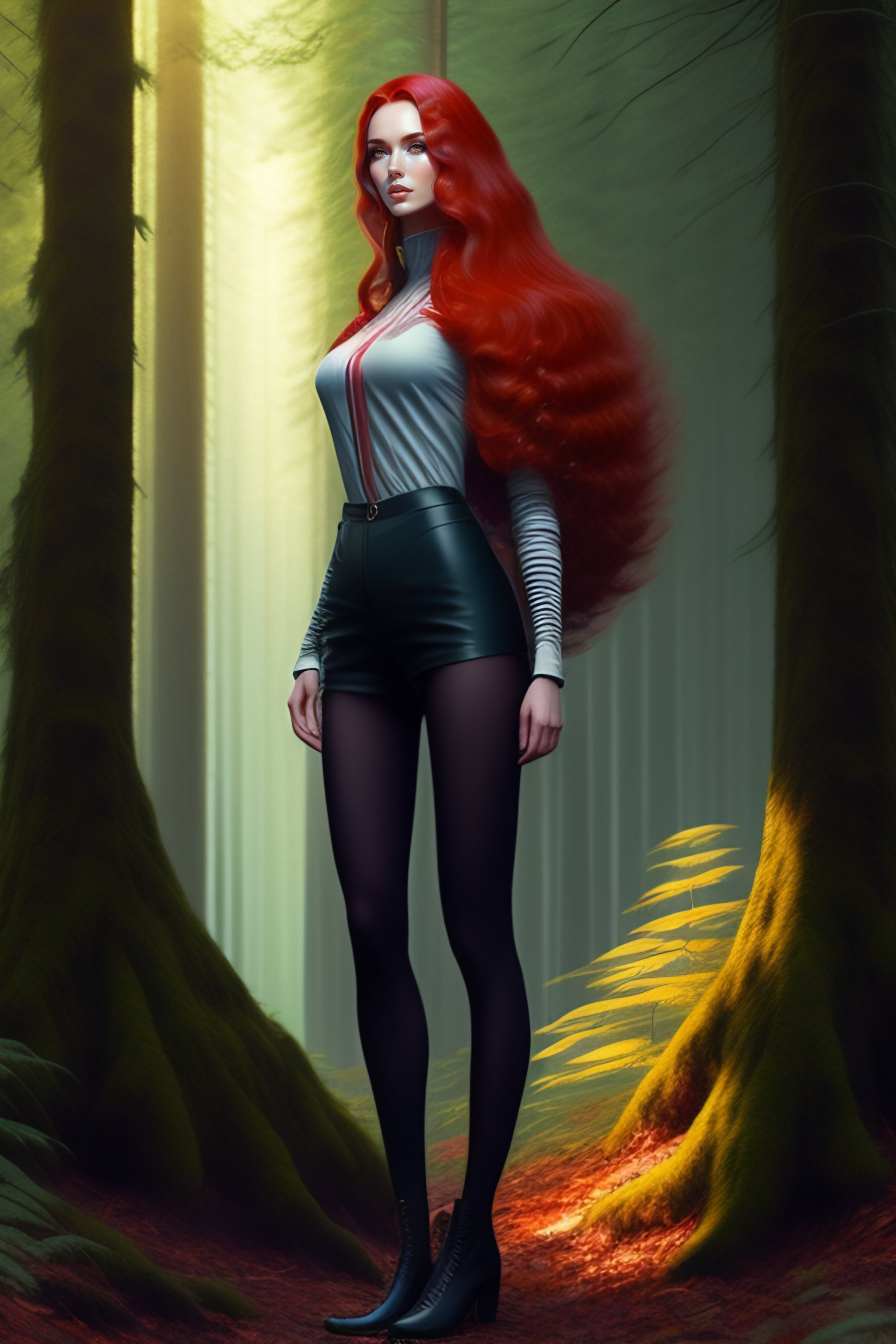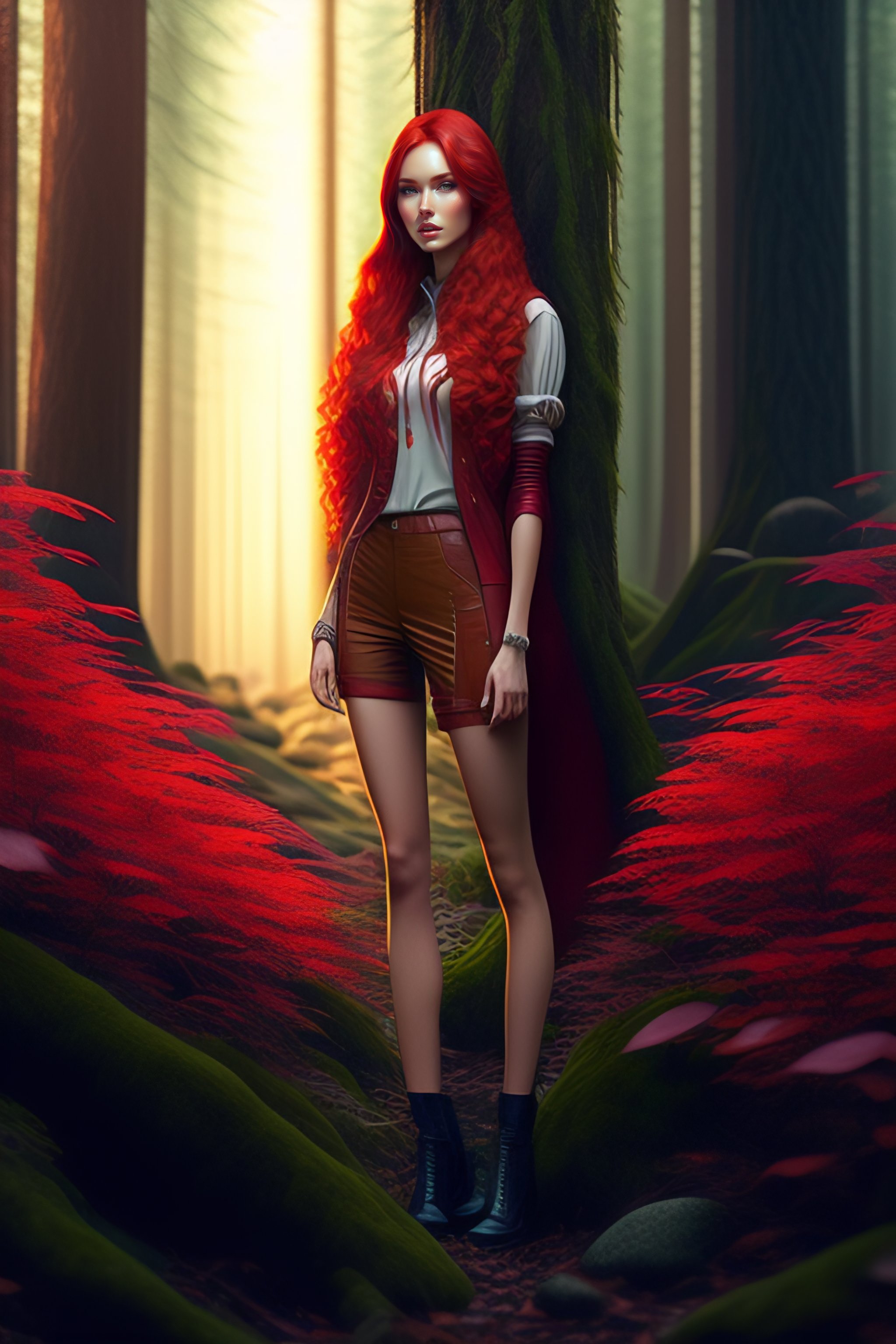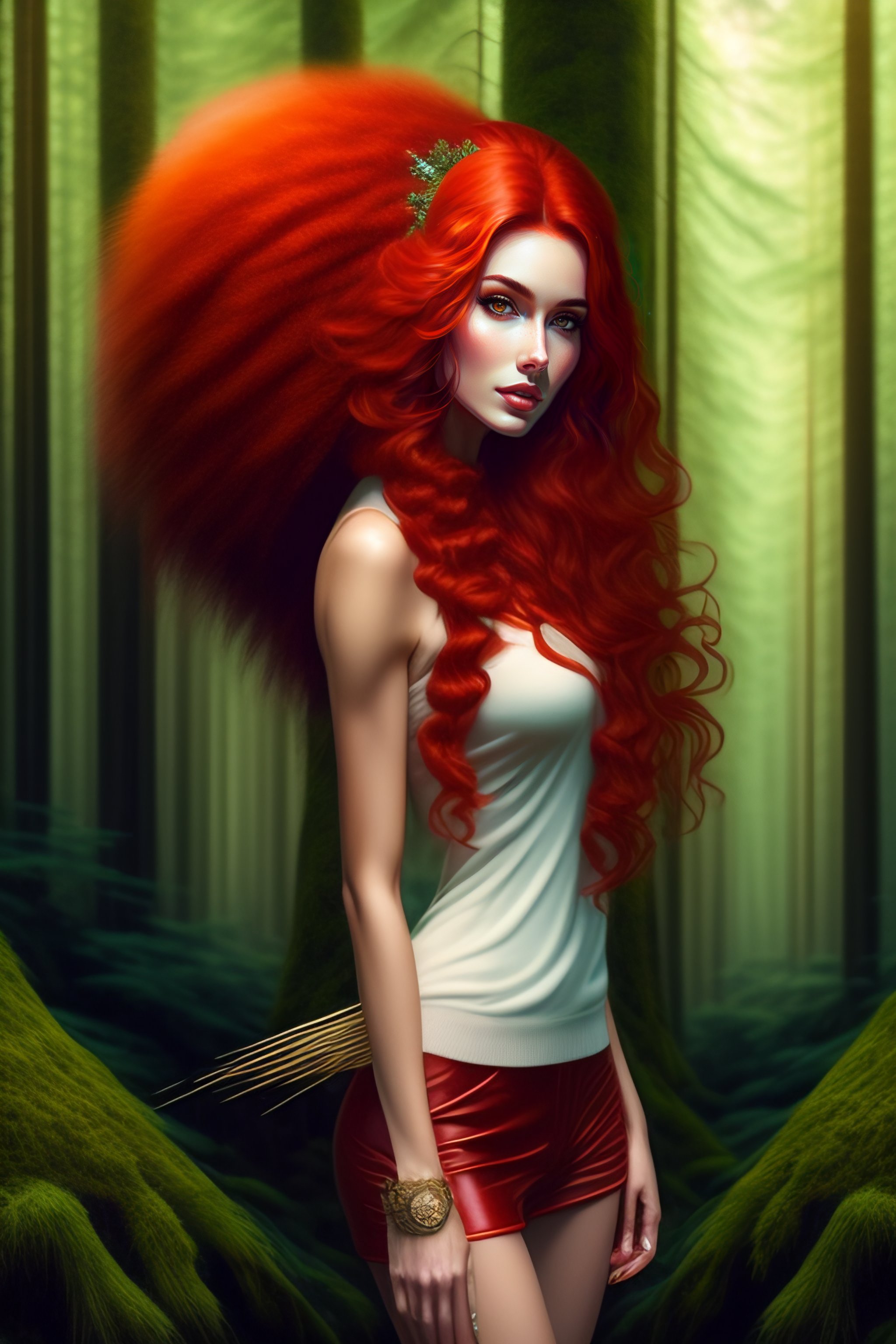 Head woomenhedgehog long-legged redhead in a fabulous forest, art by artgerm and greg rutkowski hedgehog long-legged red-haired girl with hair needles in a fabulous forest