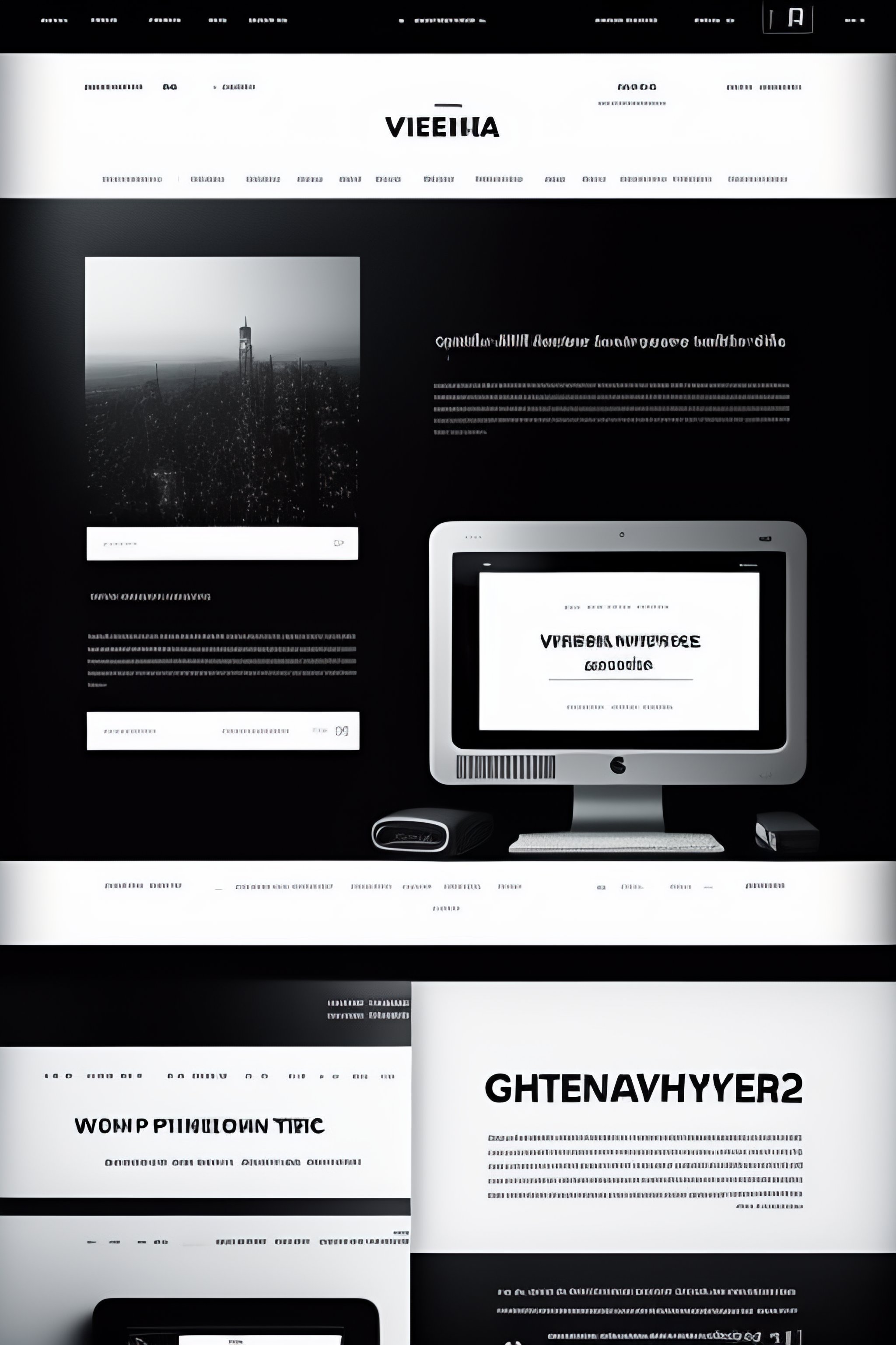 An ad for a trendy software company called vienna hypertext, minimalism, retro computing, clean design, black and white