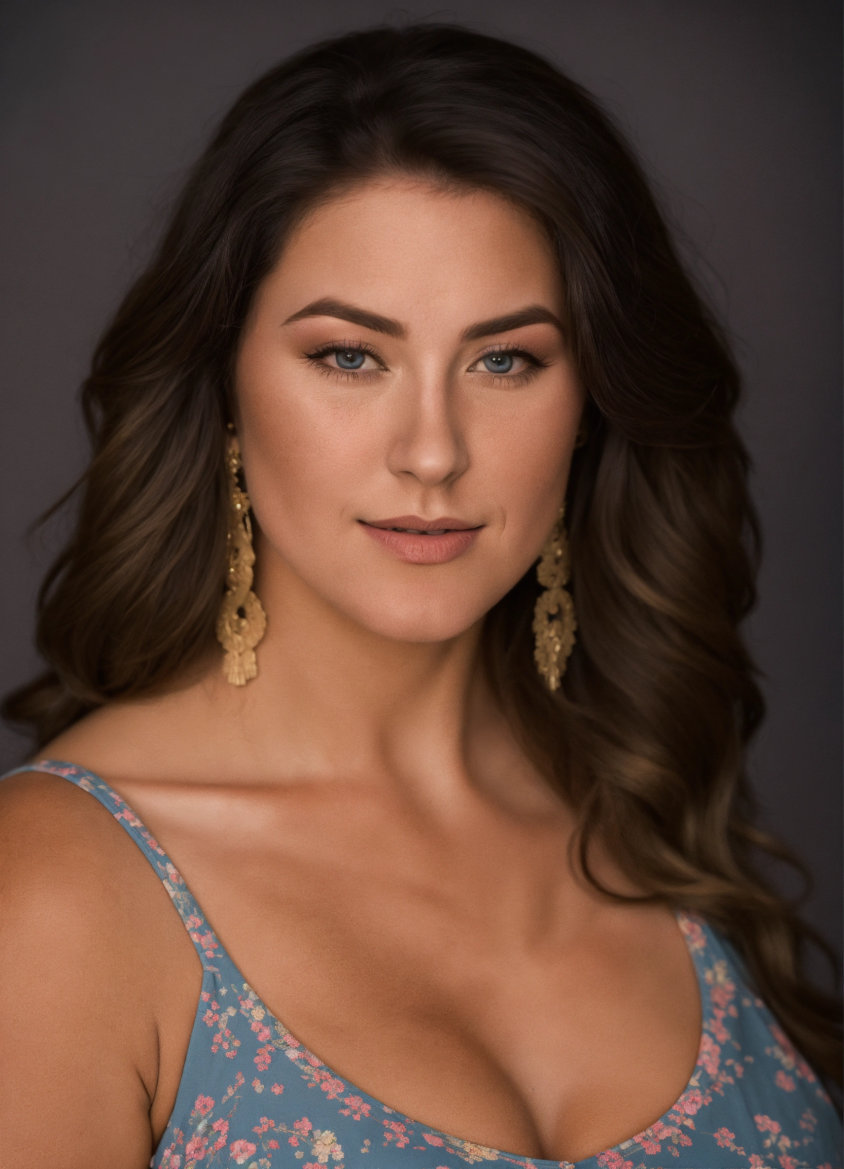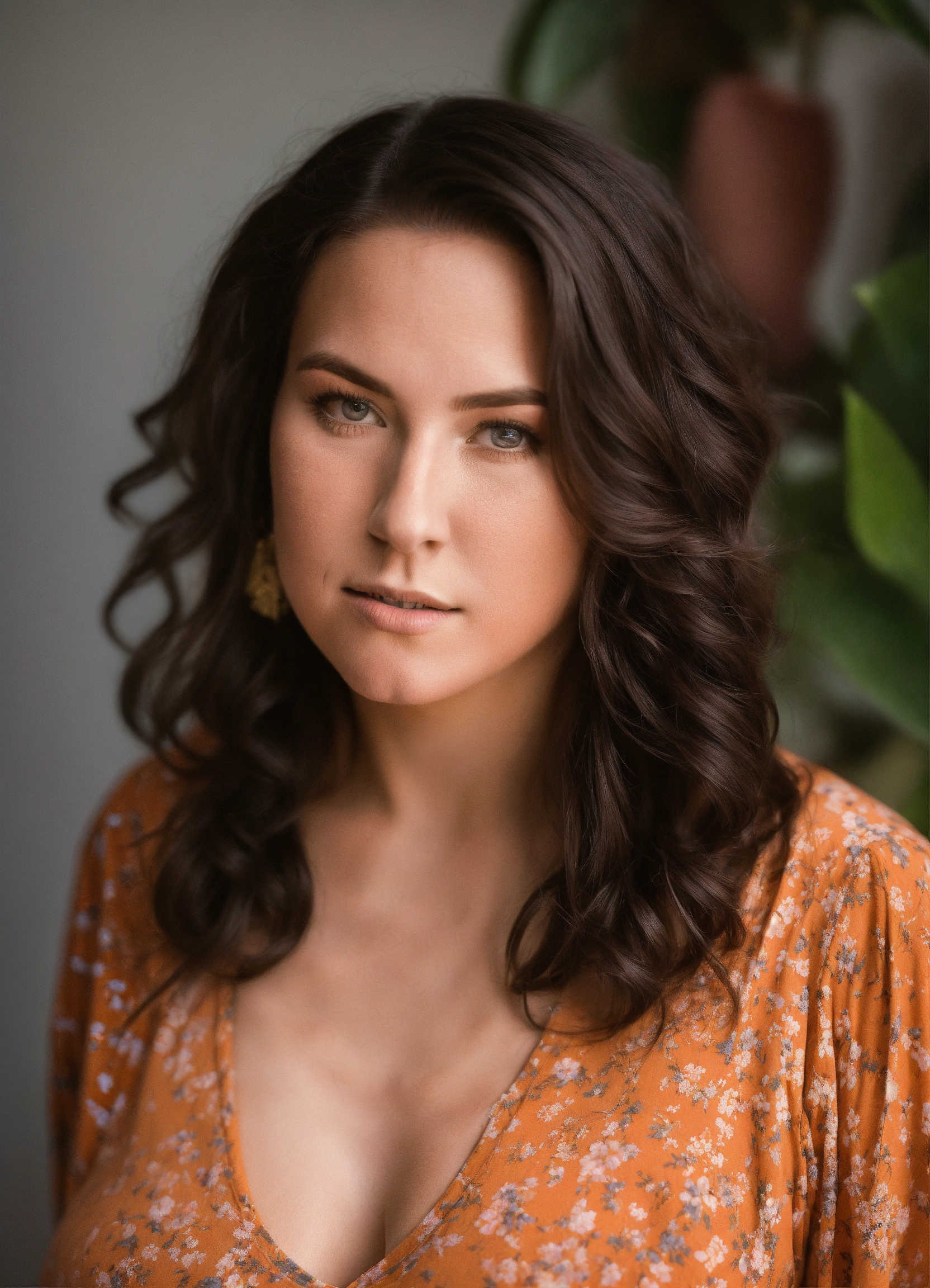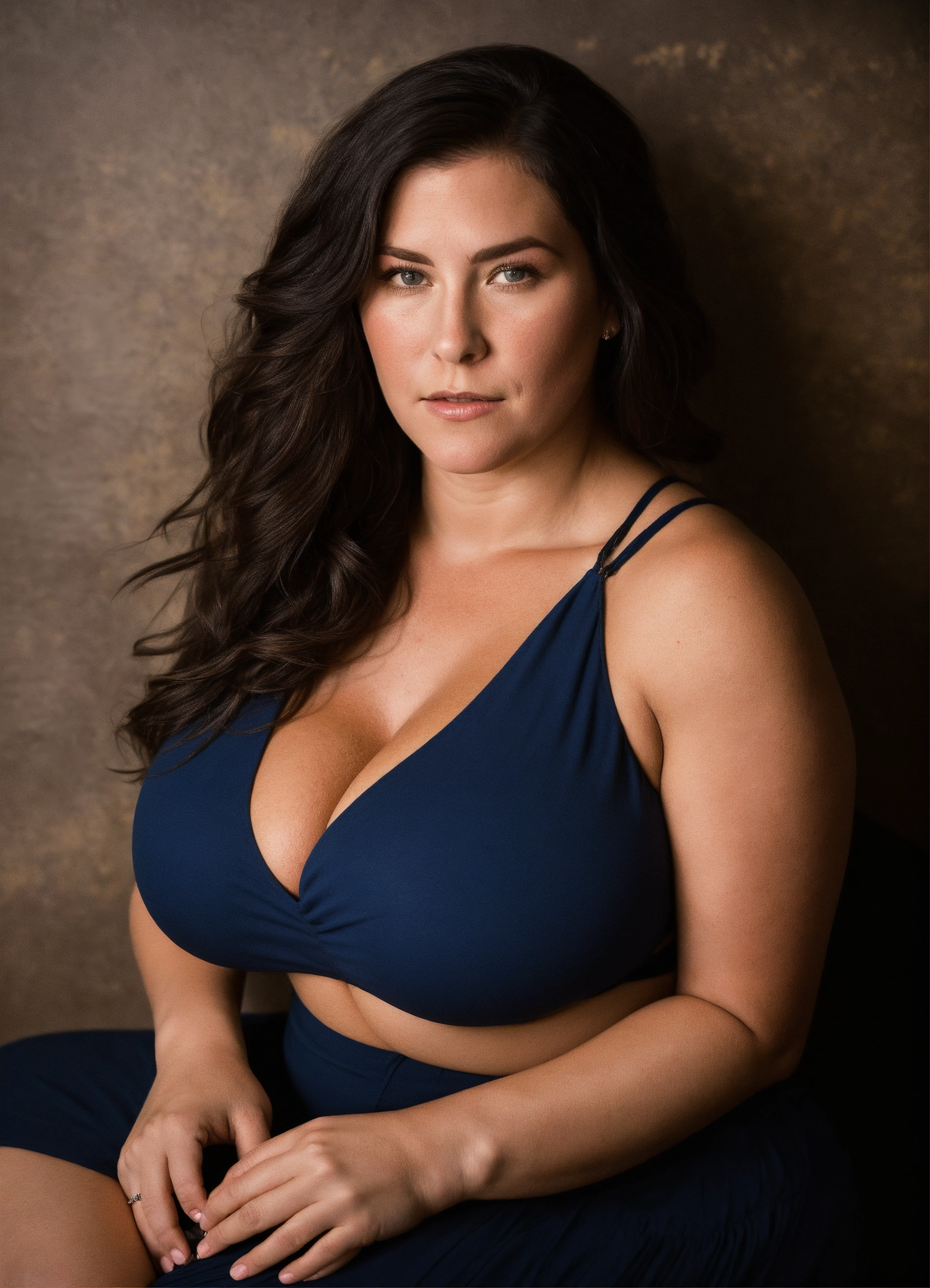 Image of ella schnacky participating in a portrait session she is matriarchal, an attractive bold motherly physique, and very large breasted, and has dark hair. only 20 but behaves like a displined strong mom to her child and is currently expecting.