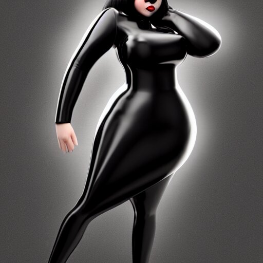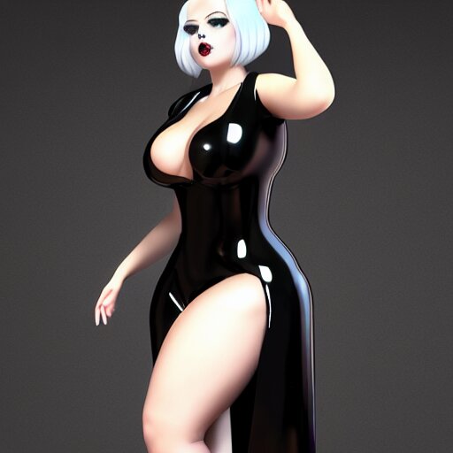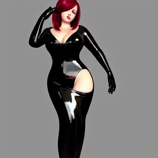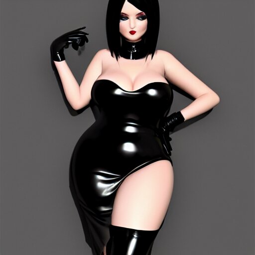 Curvy feminine hot goth cutie with sublime elegant polished black latex neck-high gown and black polished latex stockings, cgsociety, photorealistic, comfy ambience, idealistic, 16k, smooth, sharp focus, trending on artstation, volumetric lighting, fully clothed, worksafe