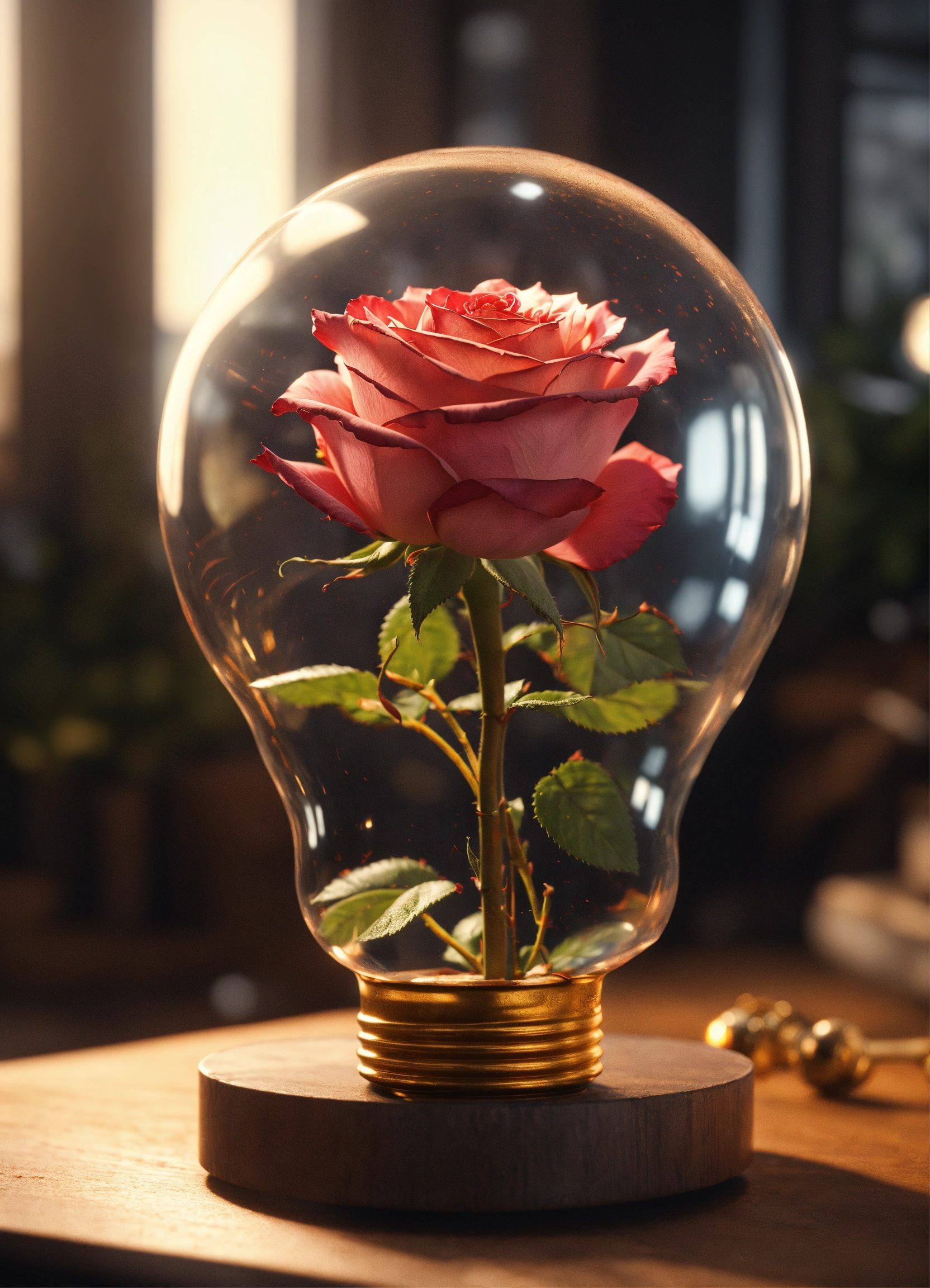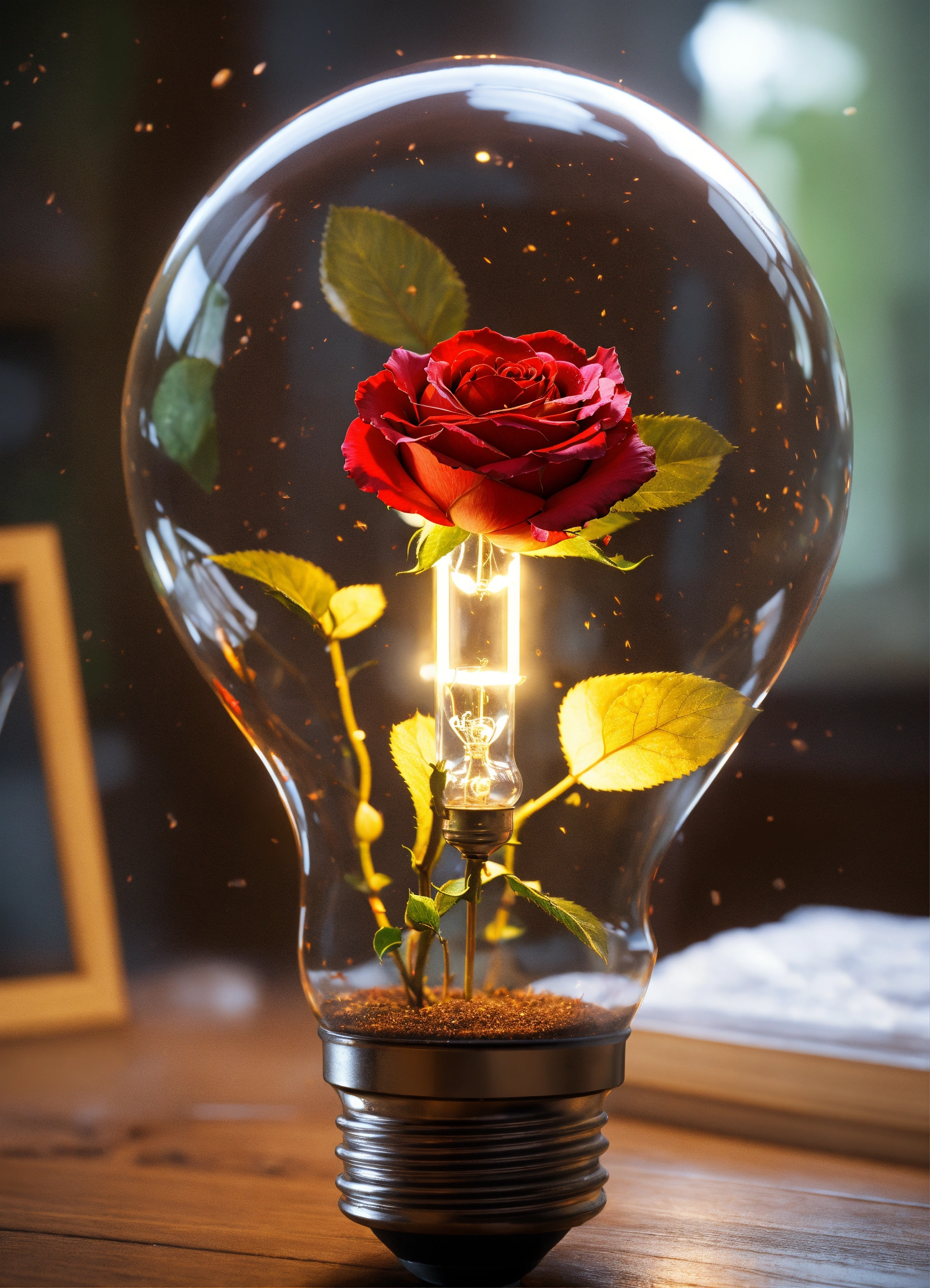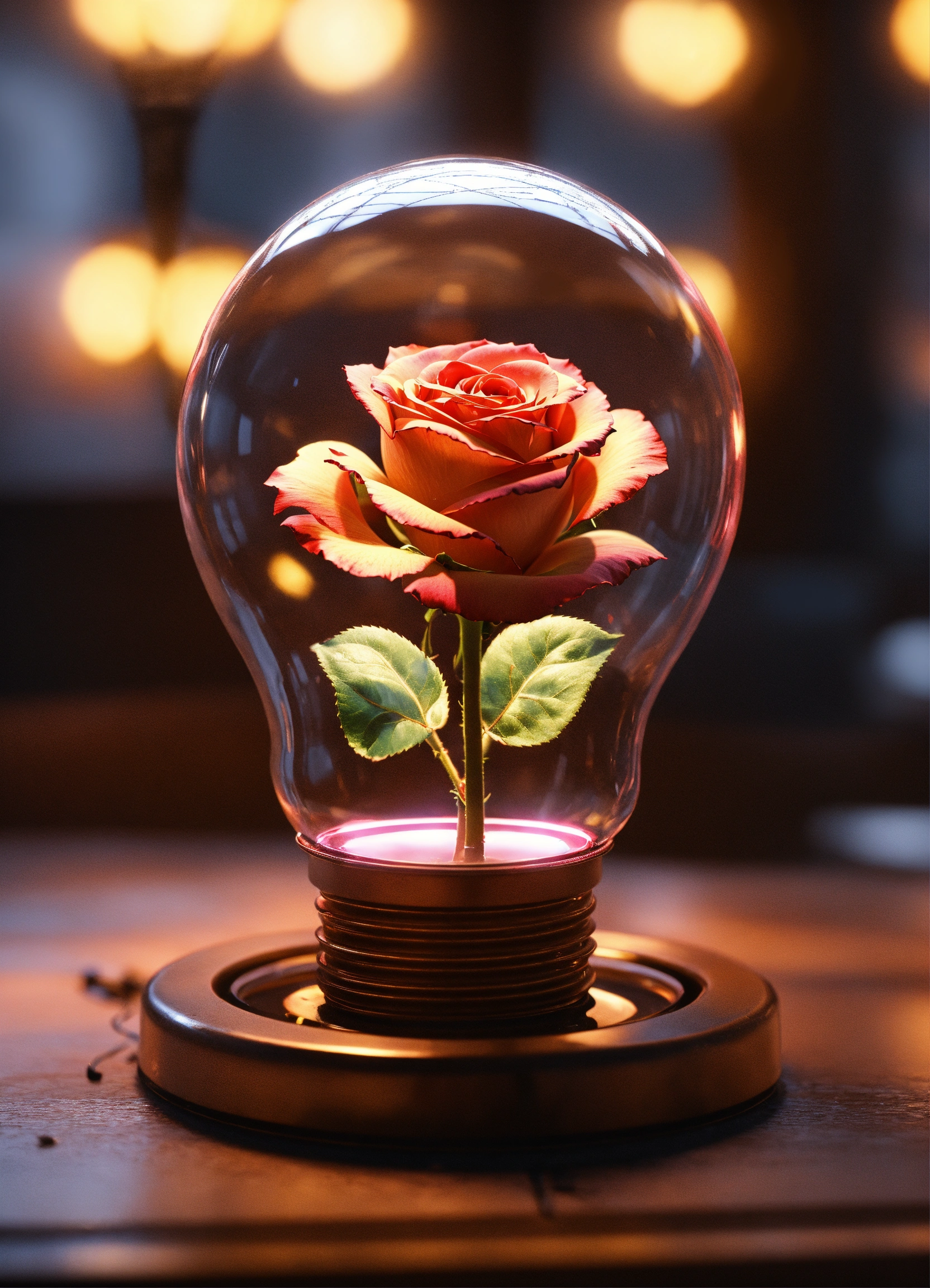 A rose in a light bulb, " intricate details, 8k resolution, dynamic lighting, unreal engine 5, cryengine, trending on artstation, hdr, 3d masterpiece, unity rendering, perfect composition