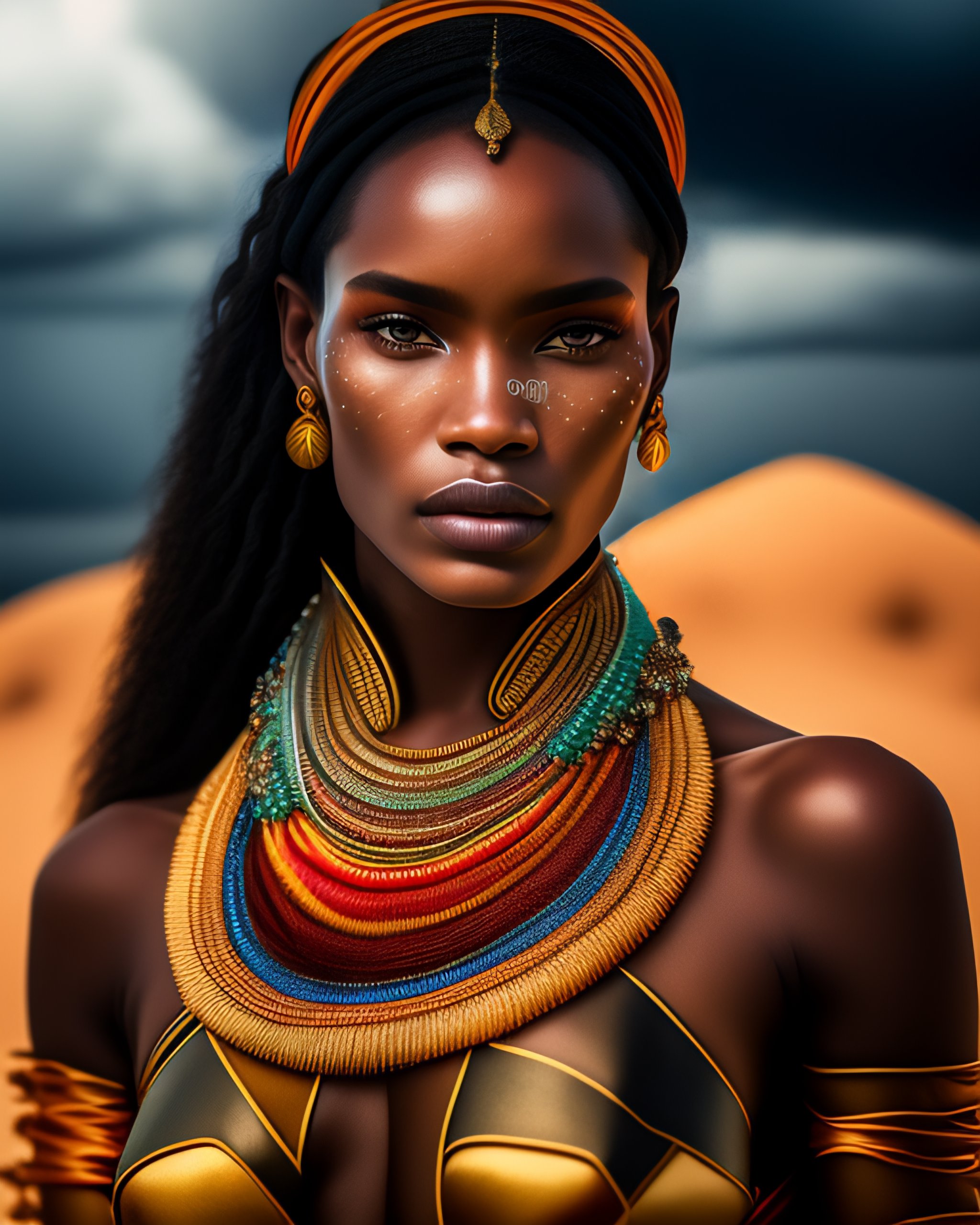 Portrait shot of 3/4 beautiful madagascar woman with alluring pose wearing traditional madagascar - lamba cloth, shot using sony a1, 8k, 85mm 1.2f, soft light, volumetric lighting, highly detailed, fine art portrait photography of in style of paolo roversi, britt marling style 3/4 face merging with stormy clouds in metamorphosis complex 3d render, 150 mm lens, art nouveau fashion embroidered, intricate details, elegant, hyper realistic, ultra detailed, octane render, etheric, out worldly colors, emotionally evoking, head in focus, fantasy, ornamental, intricate, elegant, 8k, soft light, volumetric lighting, highly detailed, refined, soft lighting colors scheme, fine art photography, hyper realistic, photo realistic