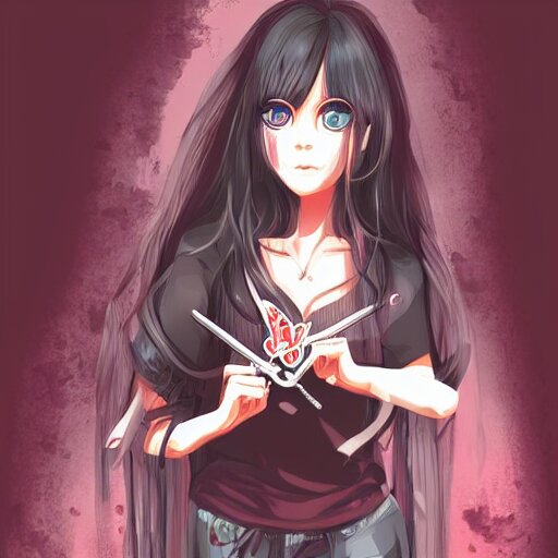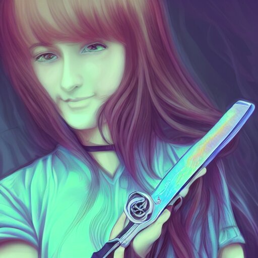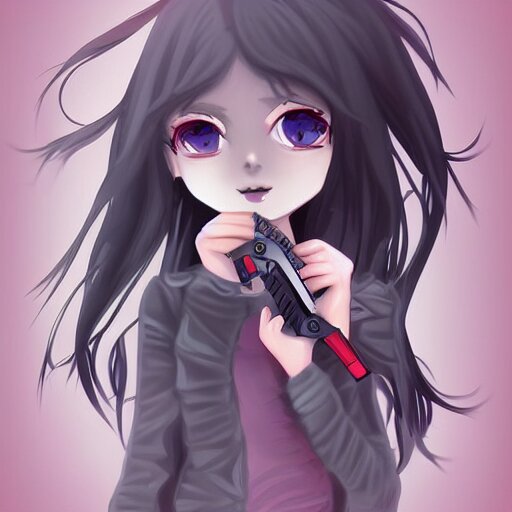Portrait of a cute beautiful girl holding a balisong butterfly knife
