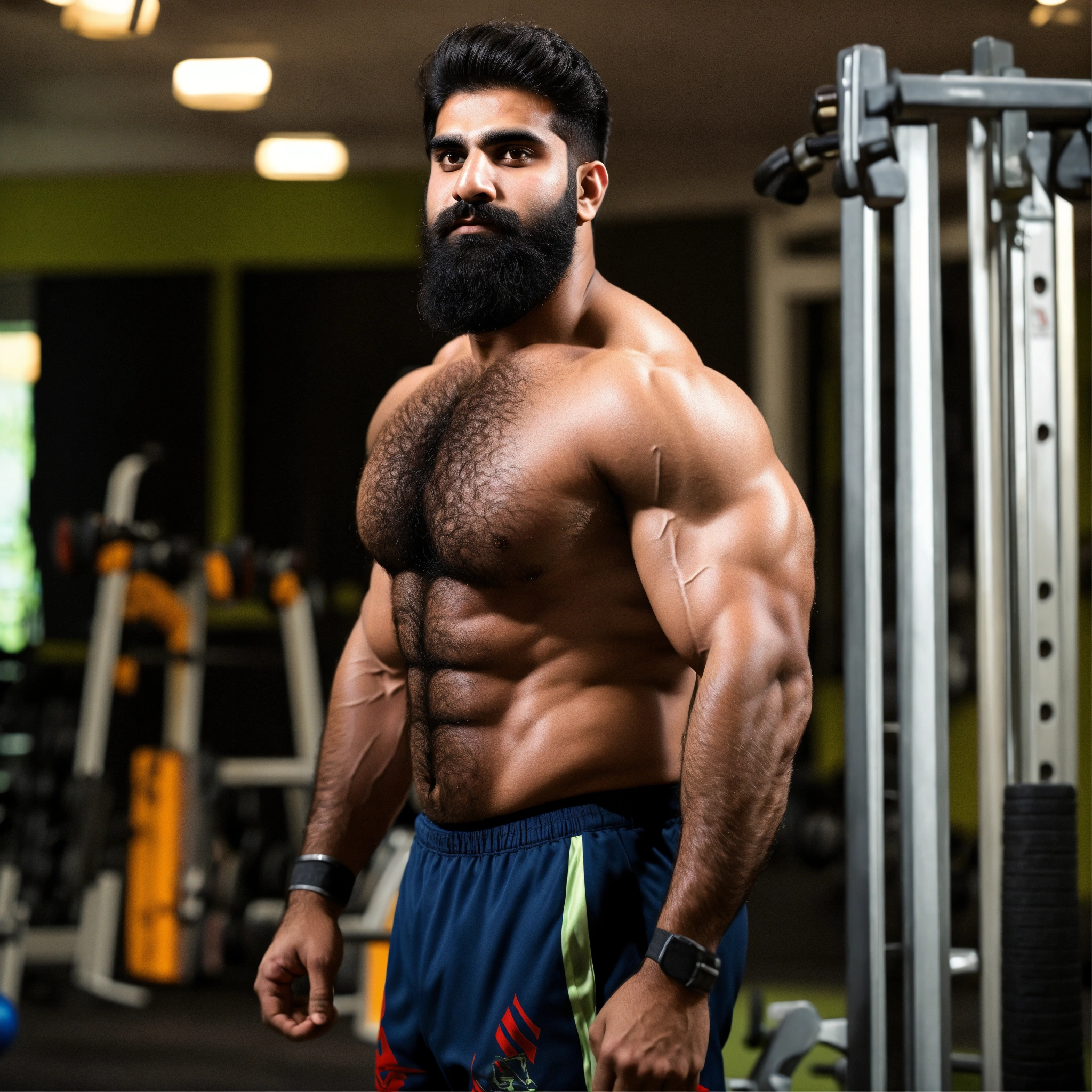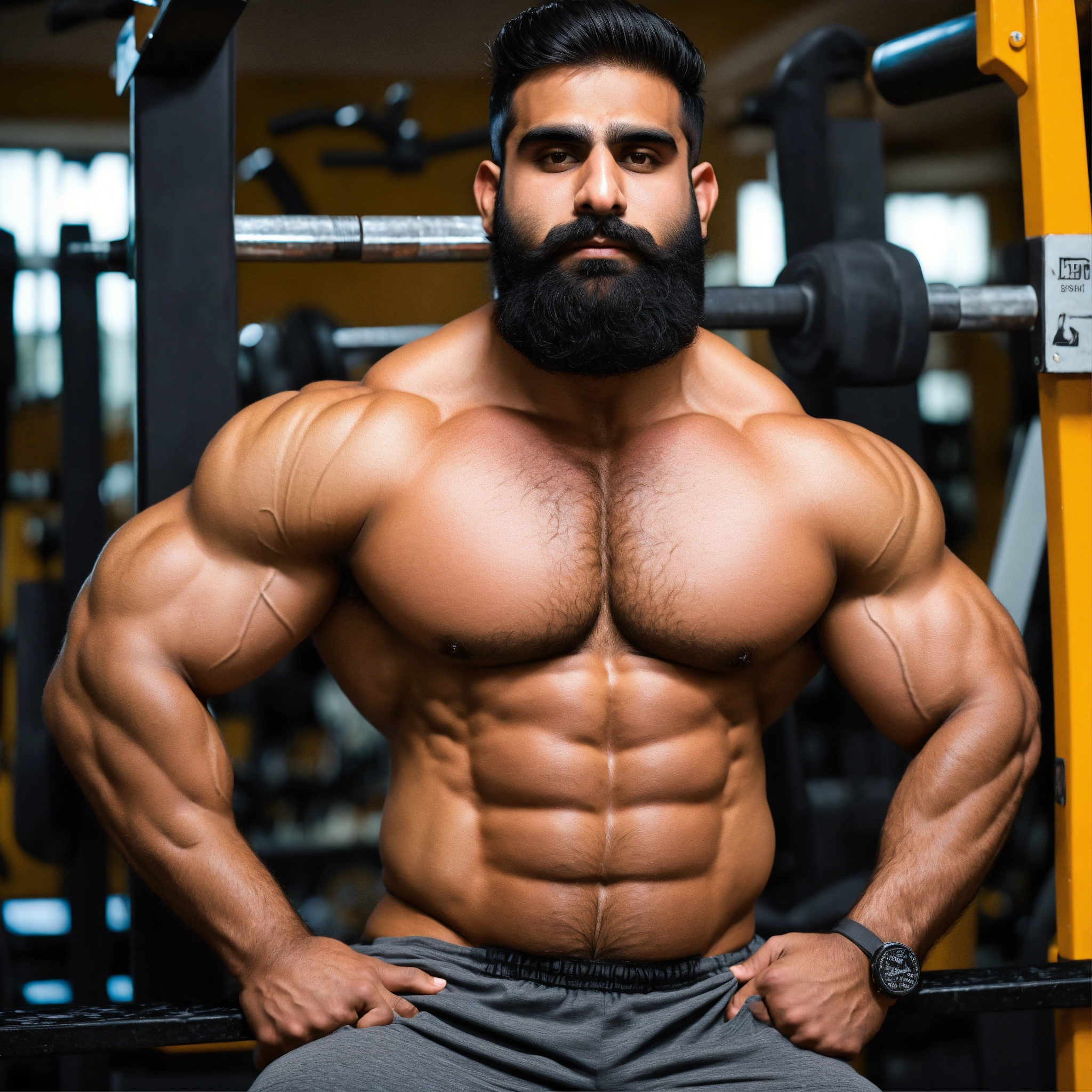 30-year-old hairy pakistani man with big muscles