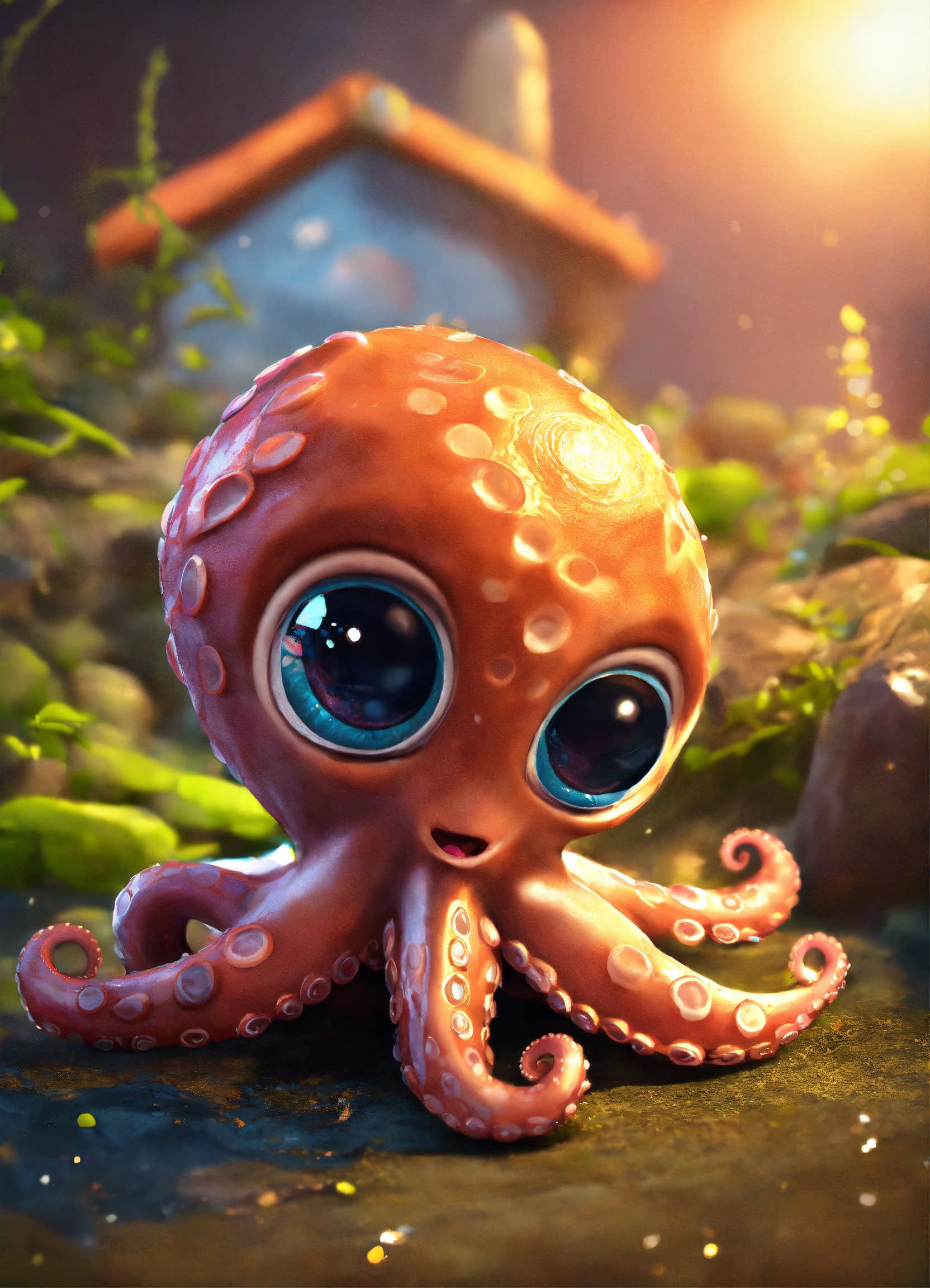 A cute baby octopus with big eyes