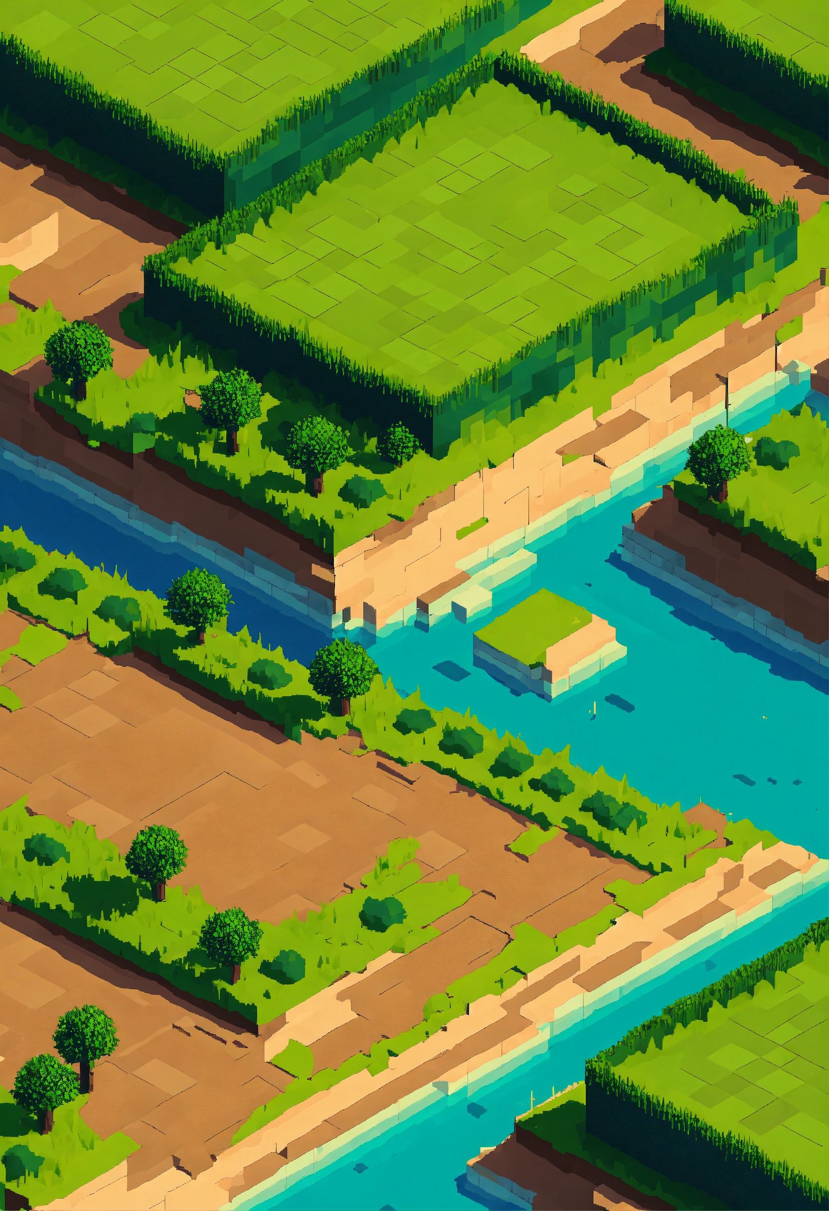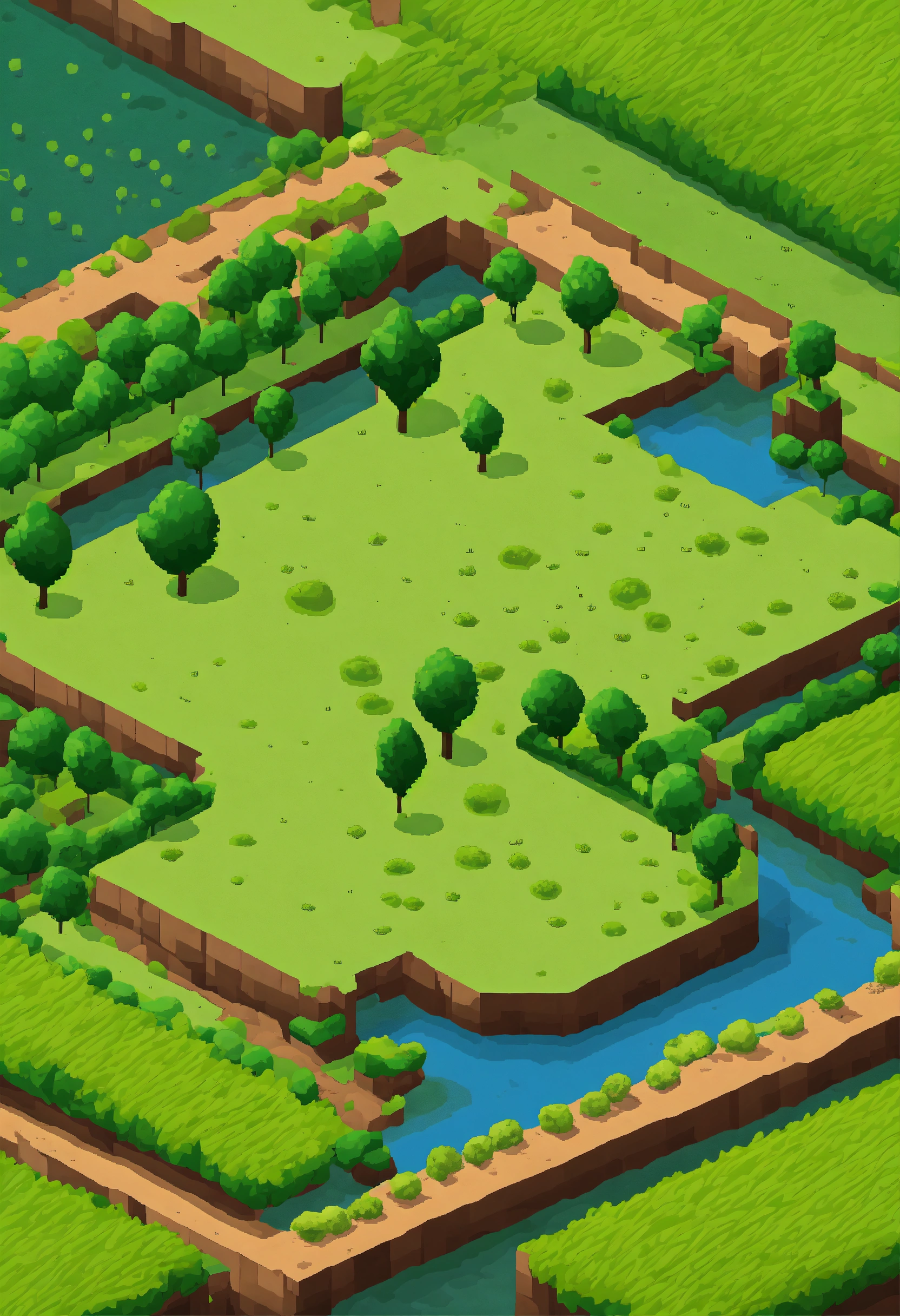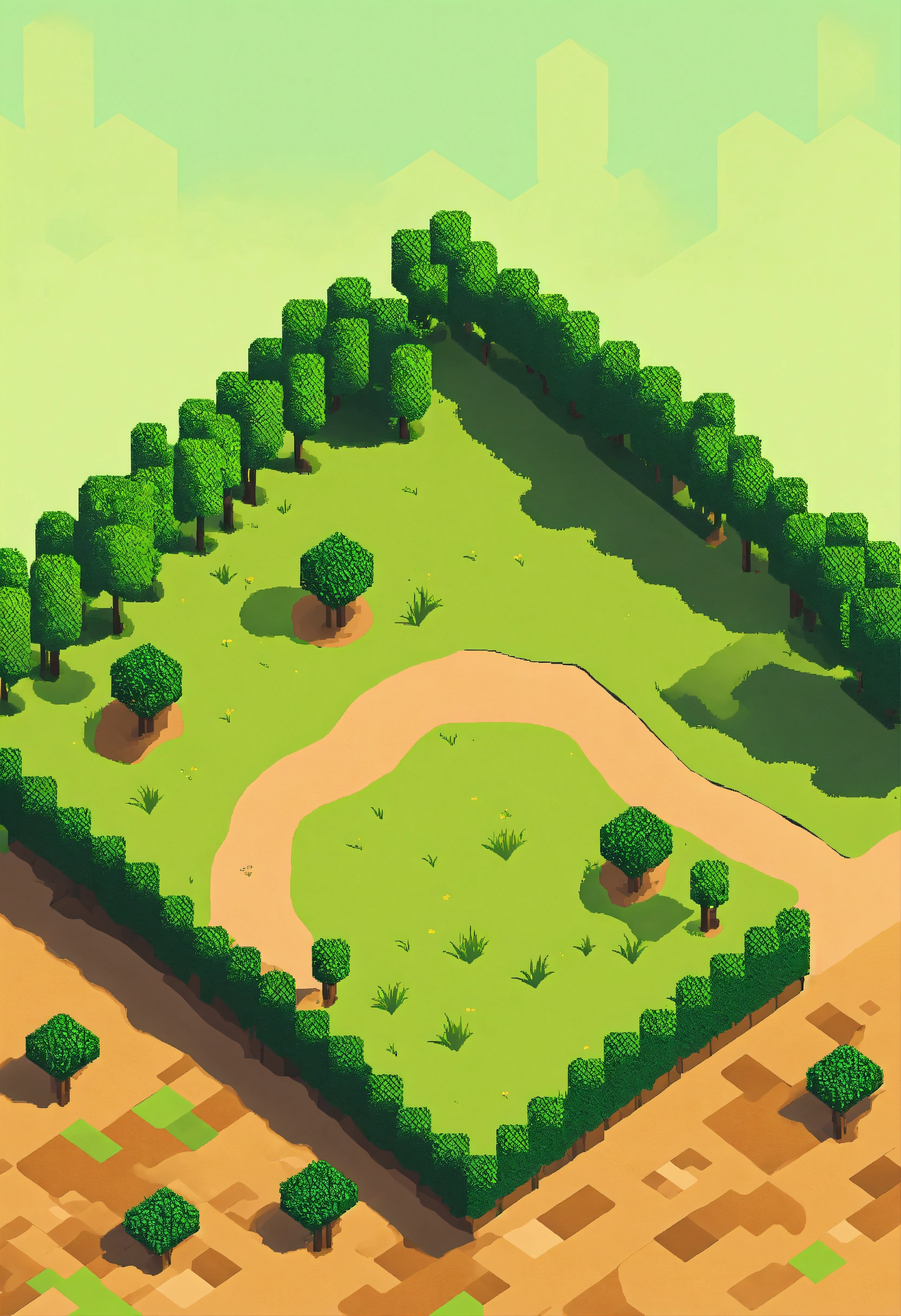 Simple pixel 2d flat empty plain dirt grassy landscape from above isometric