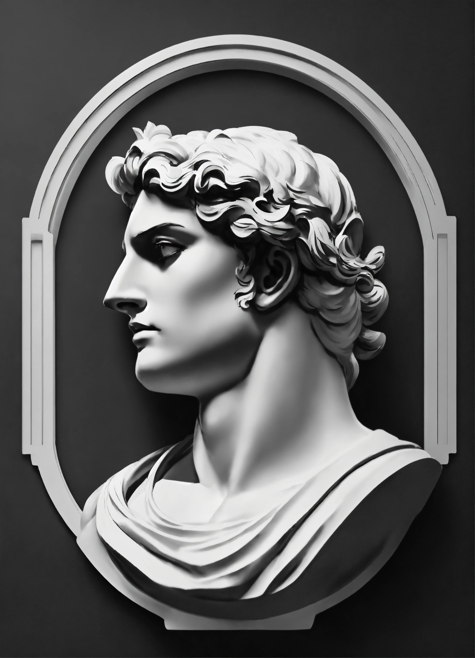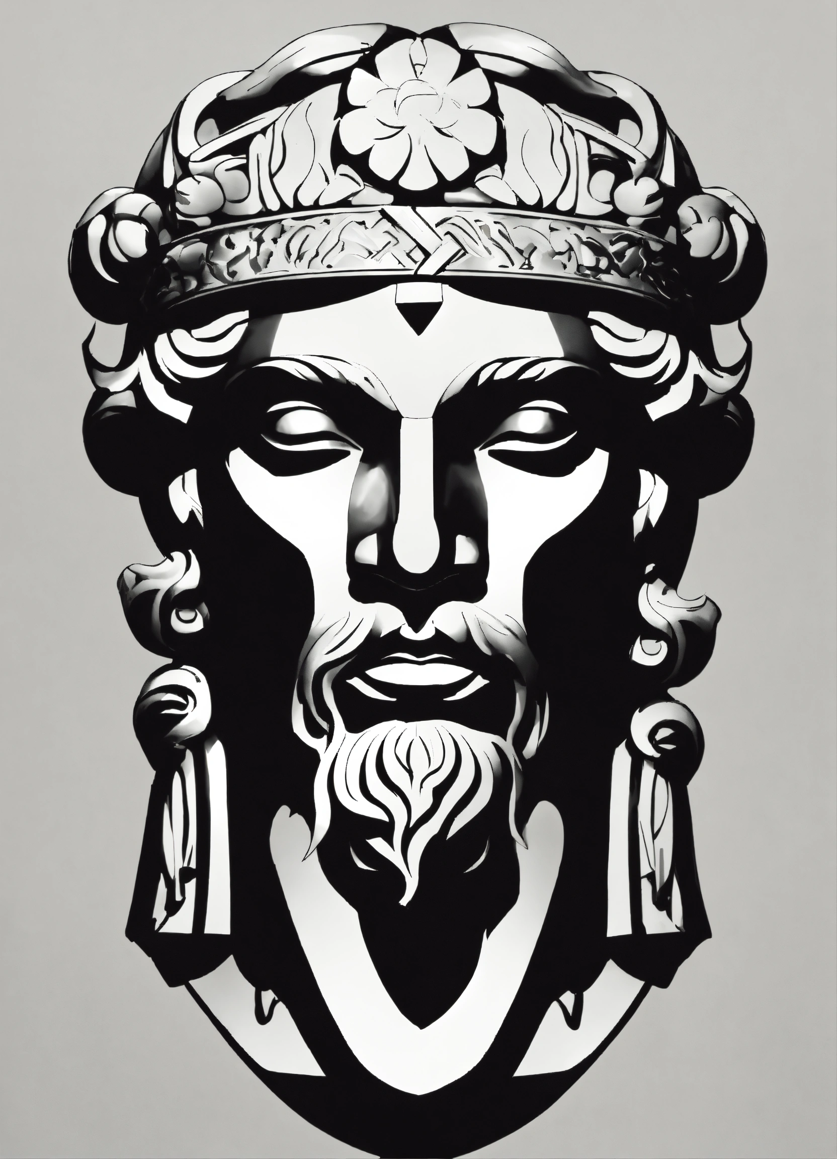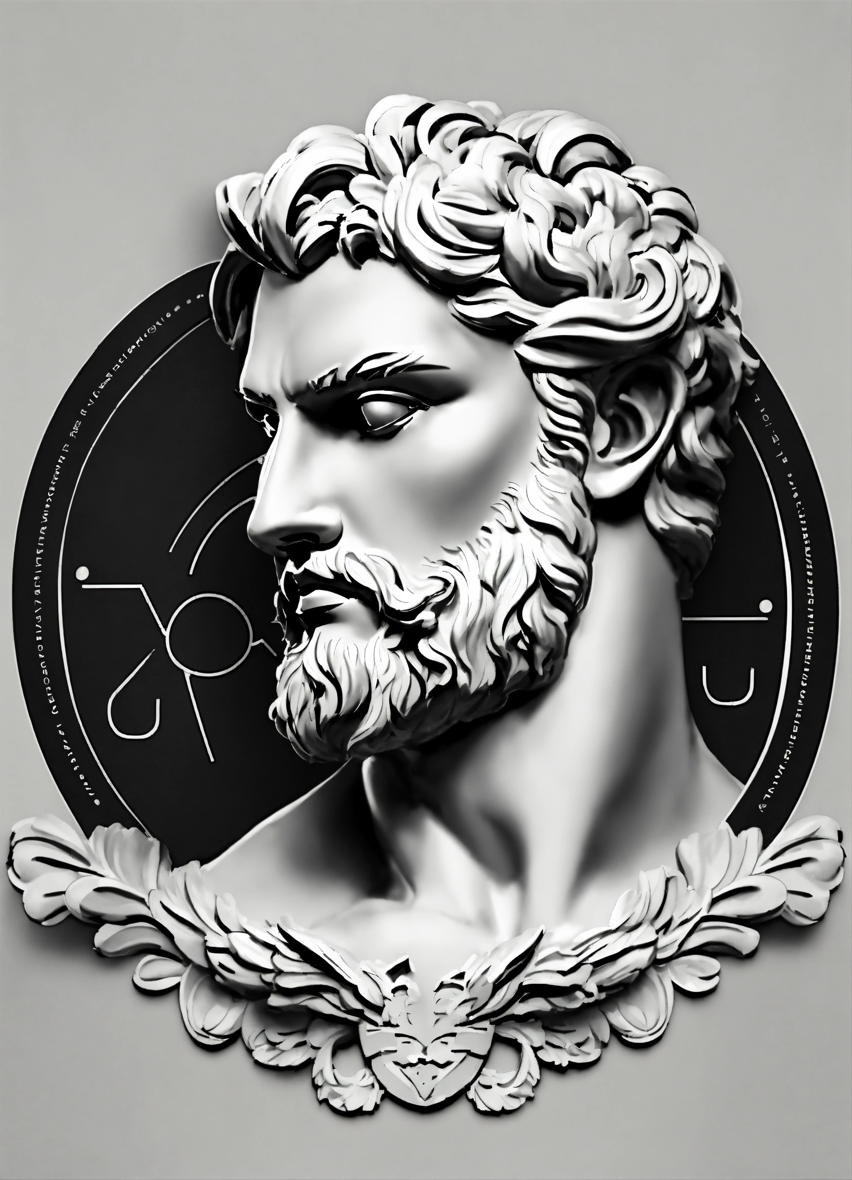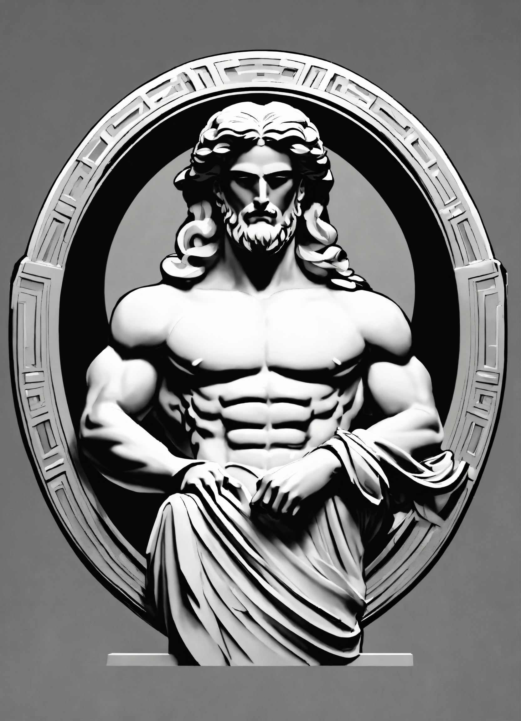 Create a sleek logo for the upscale fashion brand 'myxnt, ' with a greek god on it. black and white symple icon of a statue with muscels and middel parting hair drawn from back emoji style