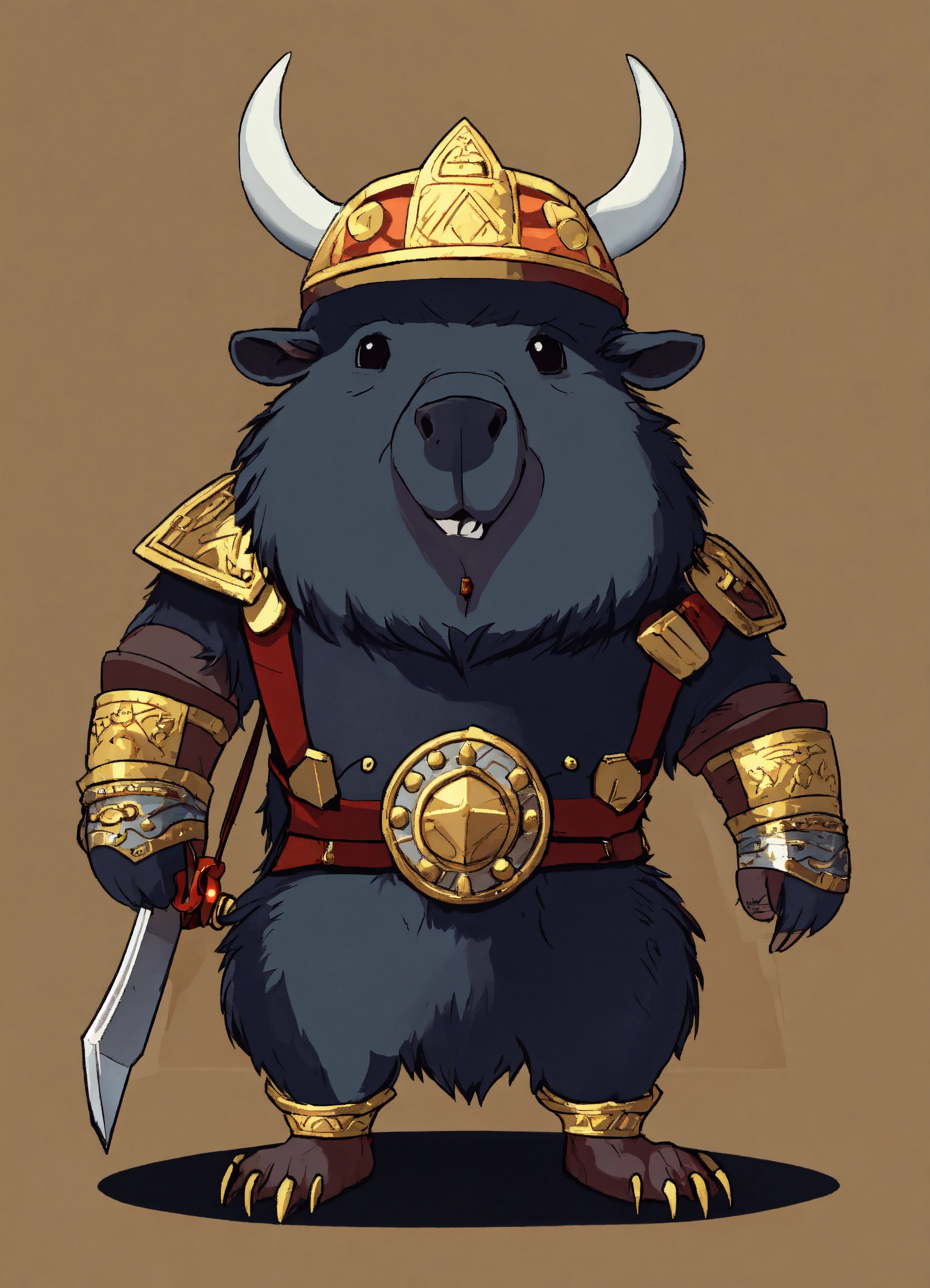 Heavy metal, metal, squarehead, capybara, viking, graphics, funny, 2d, 3d, square, black hair, game character, mobile game