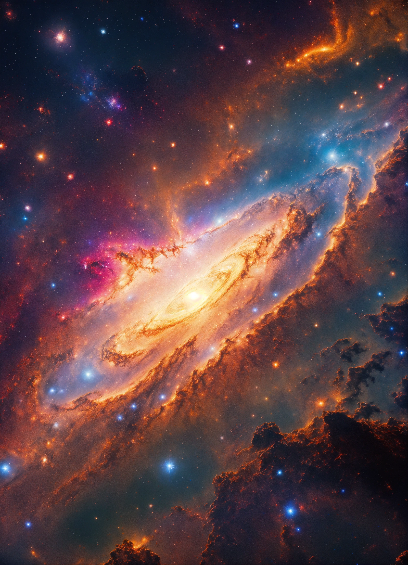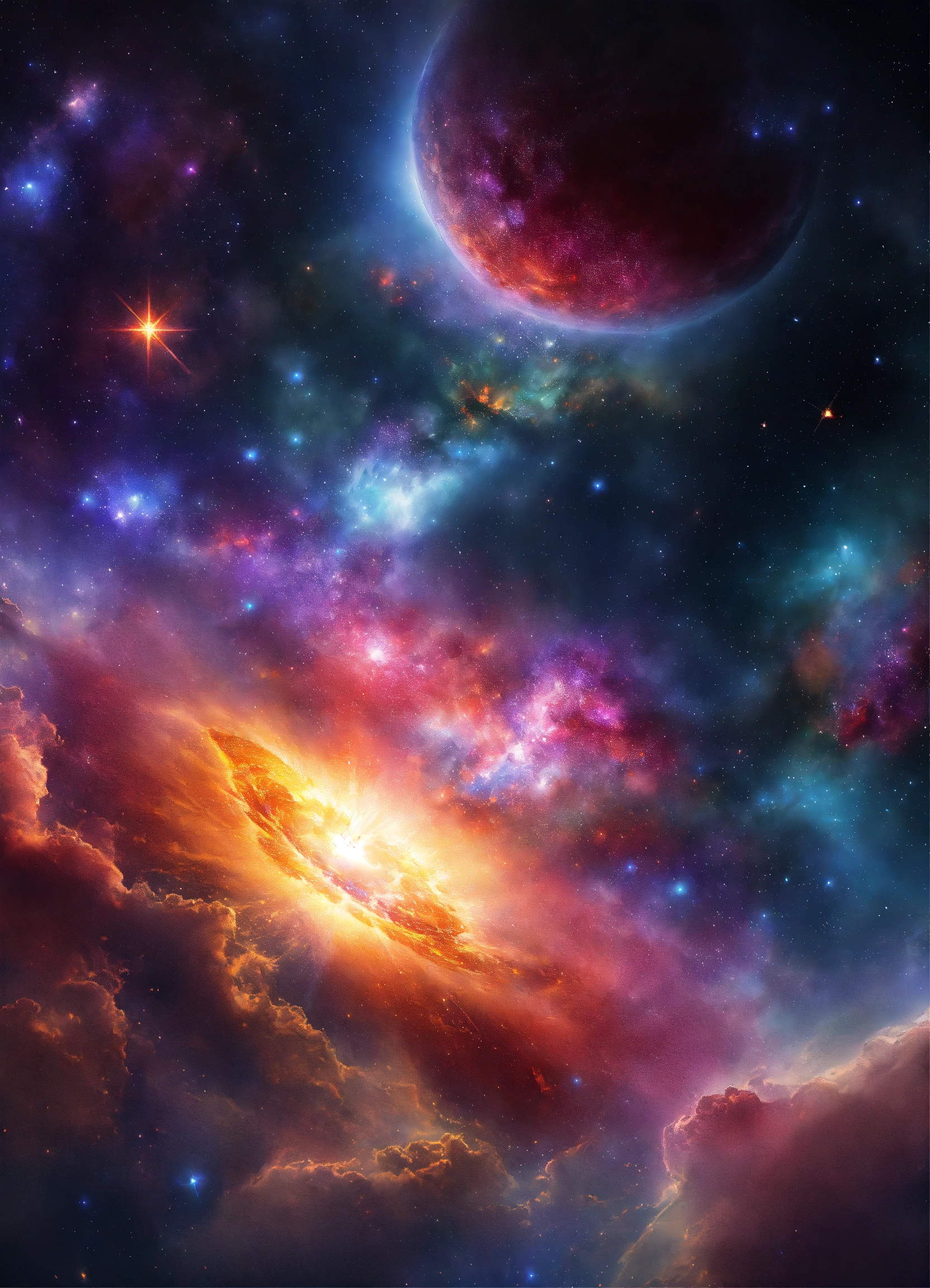 "celestial rhapsody" description "experience the 'celestial rhapsody' in 8k ultra hd as lexica's art takes you on a celestial journey, witness the collision of stars and colors in this cosmic masterpiece, " unique selling point celestial elements and breathtaking starbursts, marketing hook "capture the cosmos in your collection, "