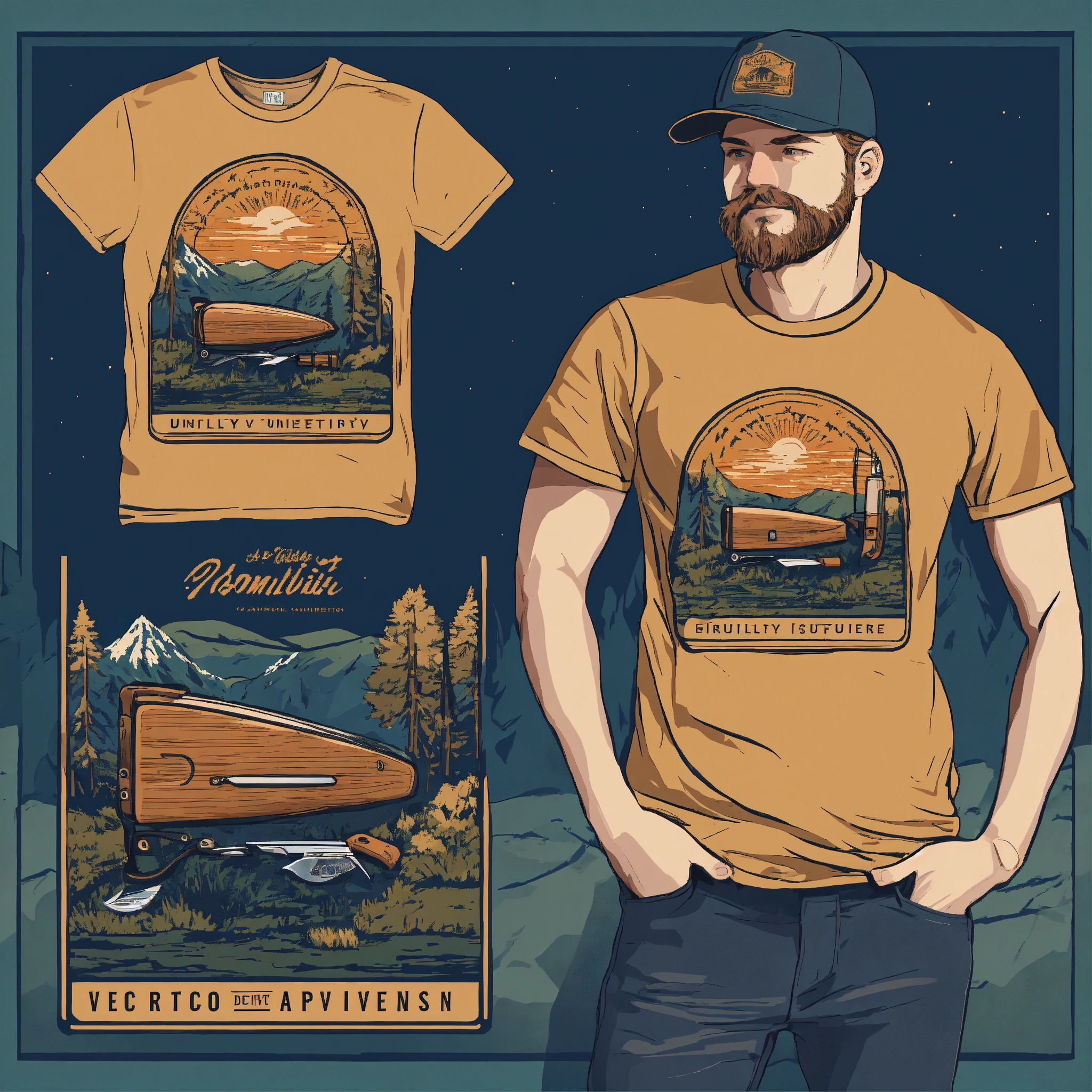 T-shirt vector illustration, centered design of a minimalist, yet intricately detailed, pocket knife, showcasing the blend of utility and craftsmanship. this design captures the essence of outdoor adventures and preparedness. simplistic, centered vector illustration, solid background color.