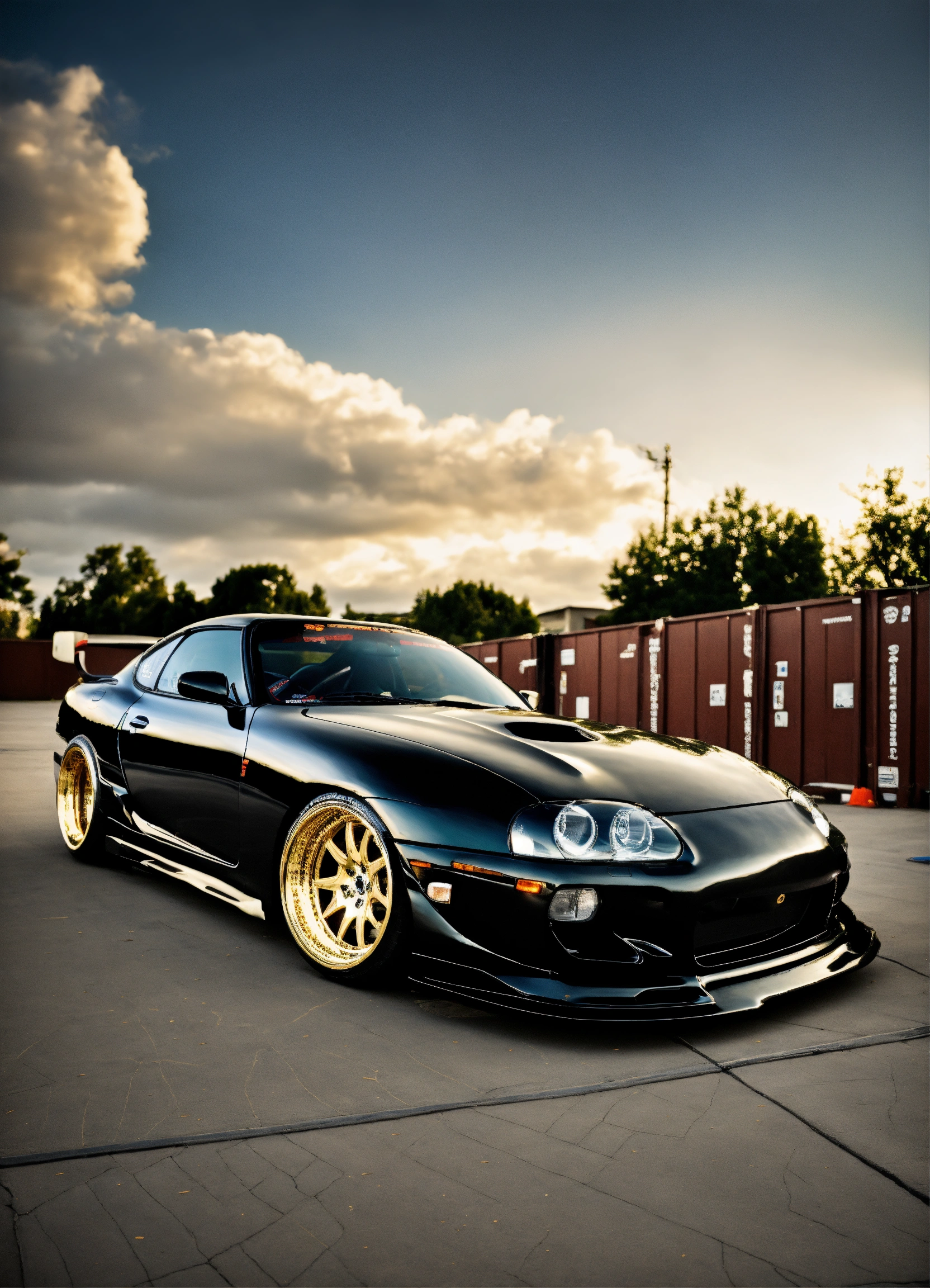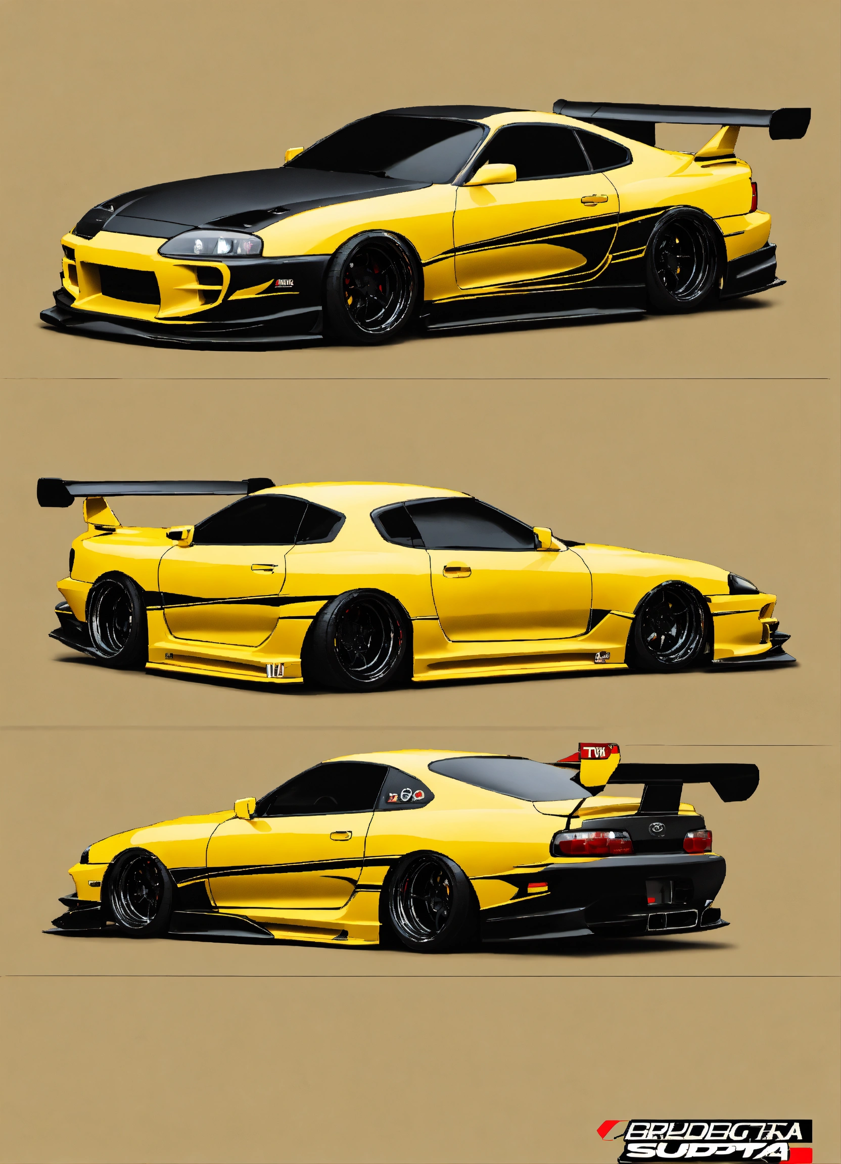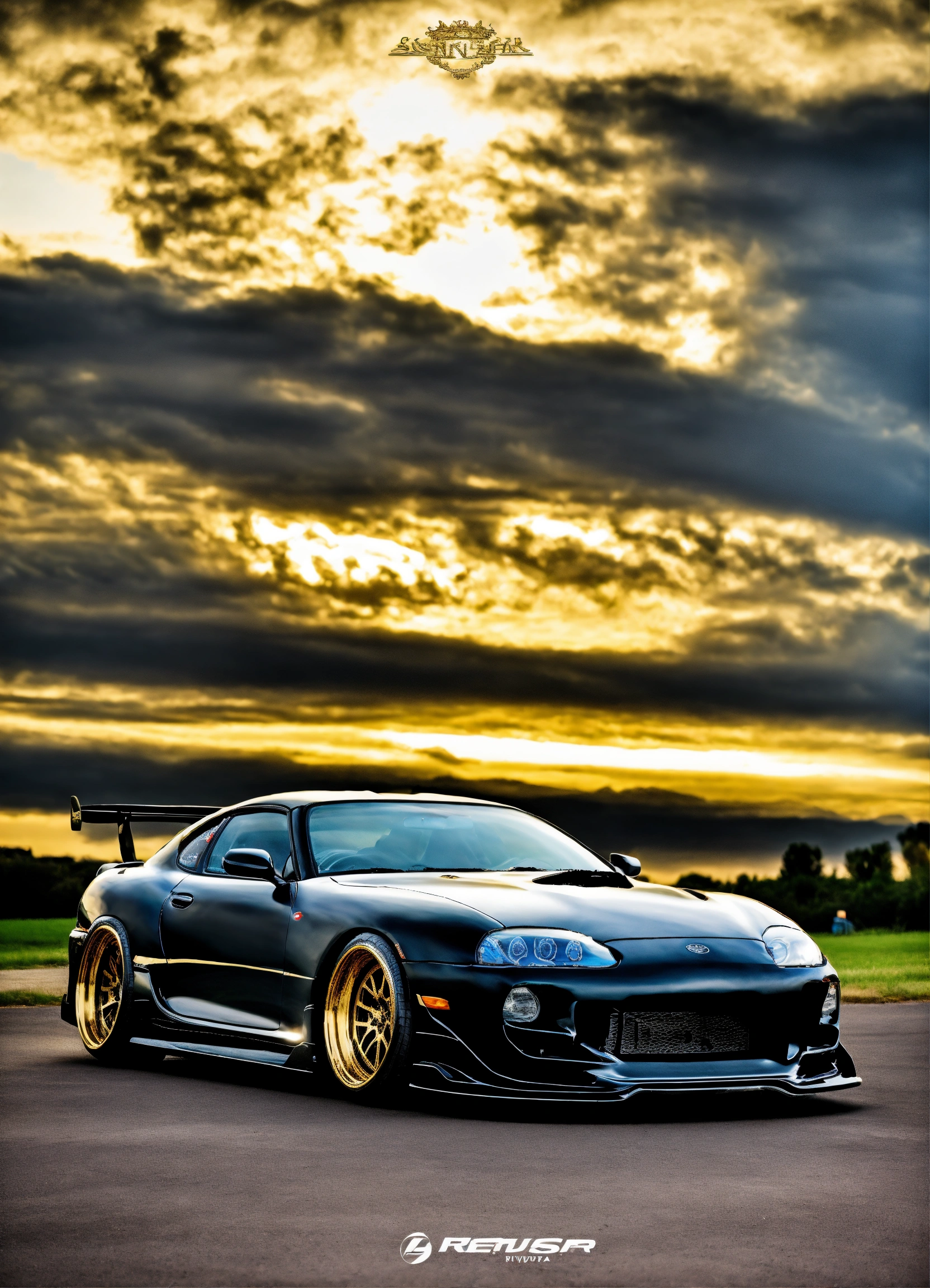 Toyota supra mk4 bodykit, black, gold, custom parts, supra, redesign, toyota supra monster truck, rims