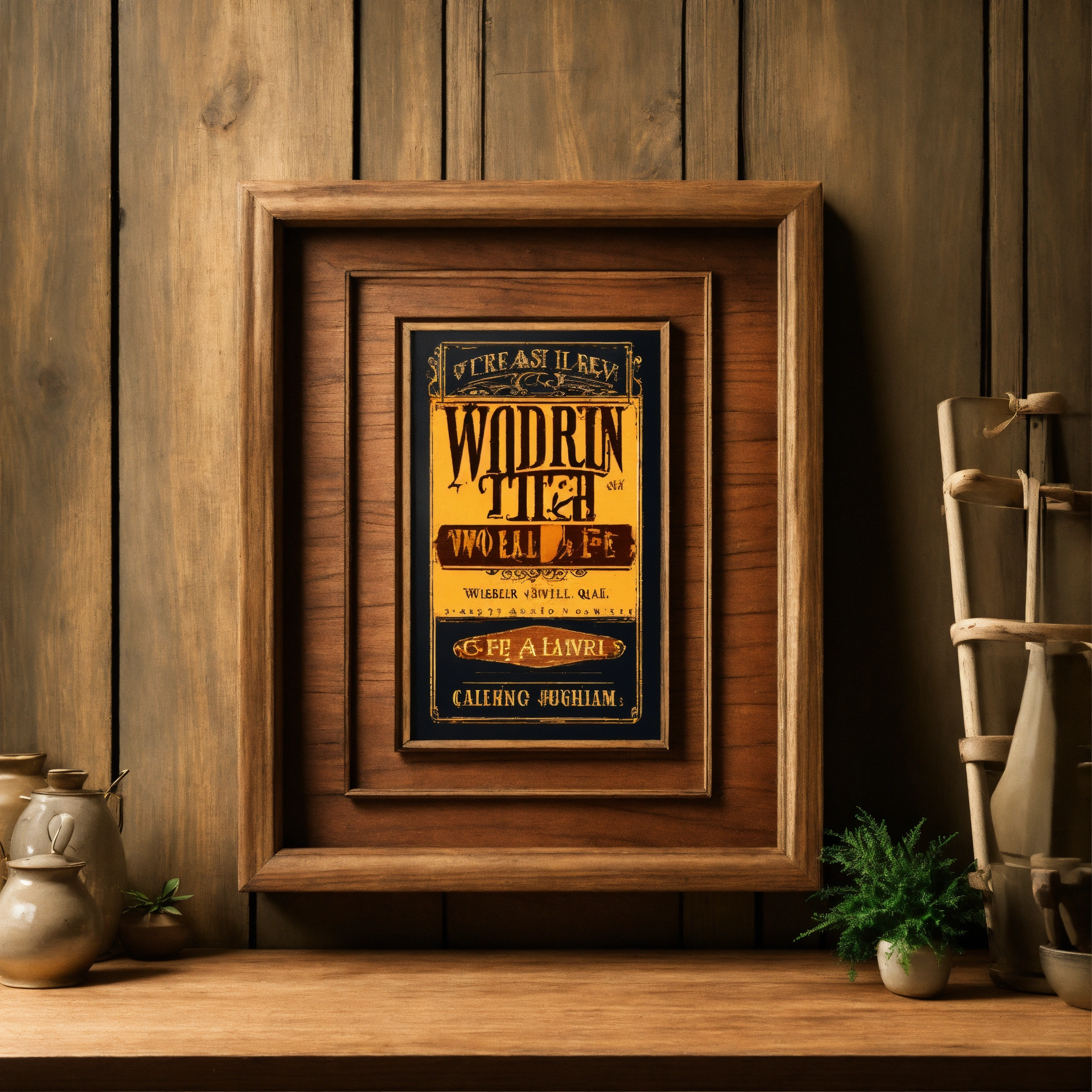 Realistic framed wooden sign