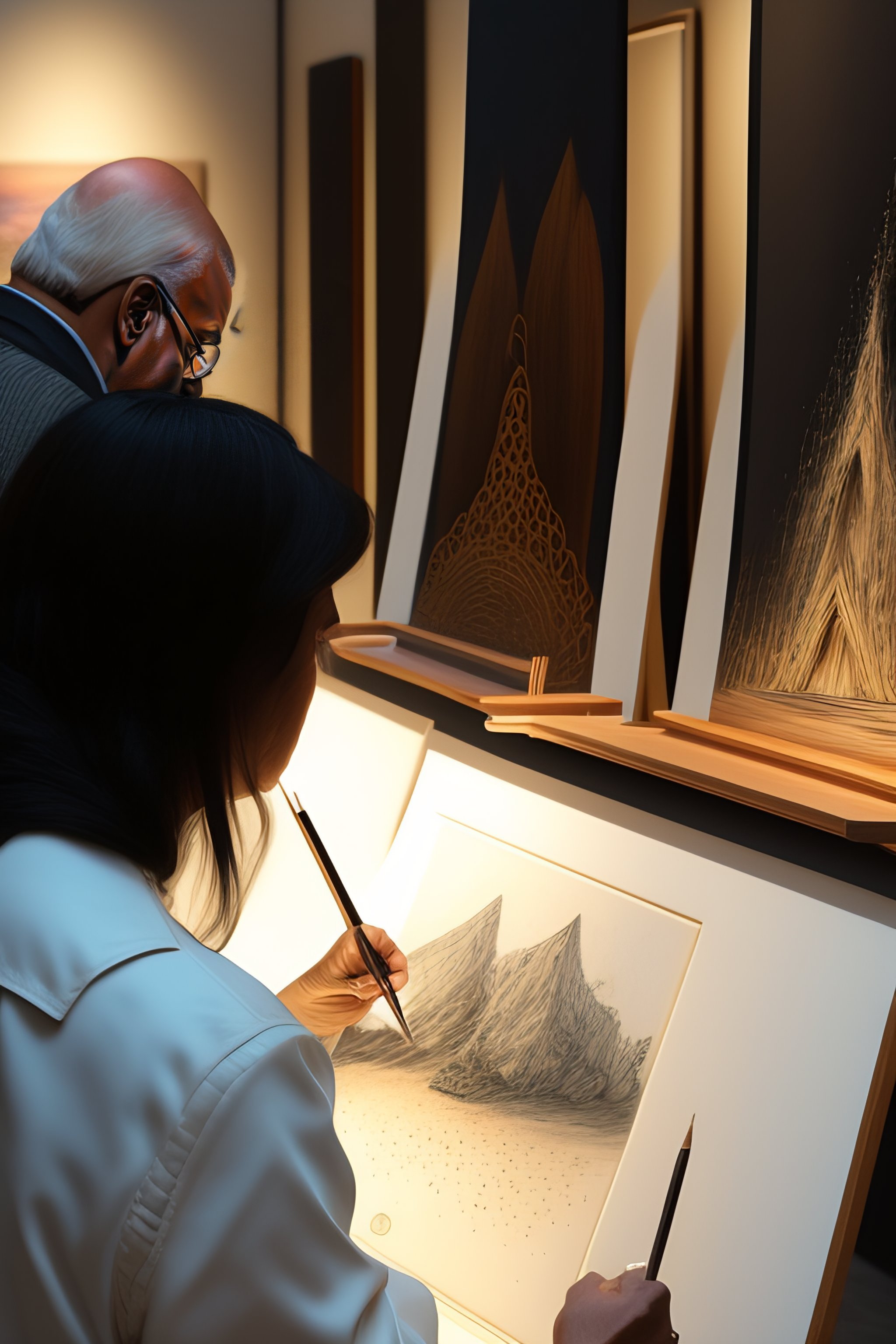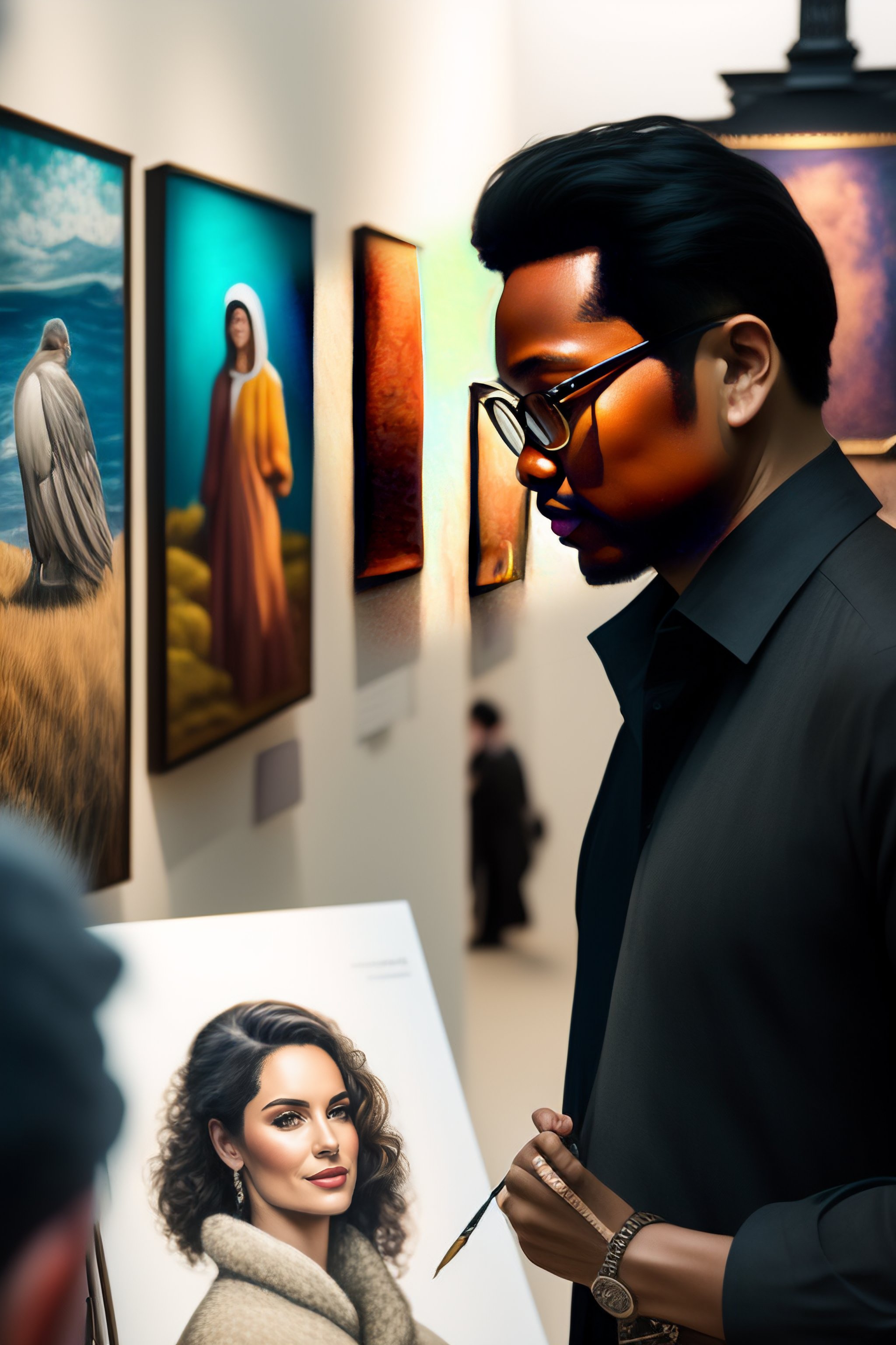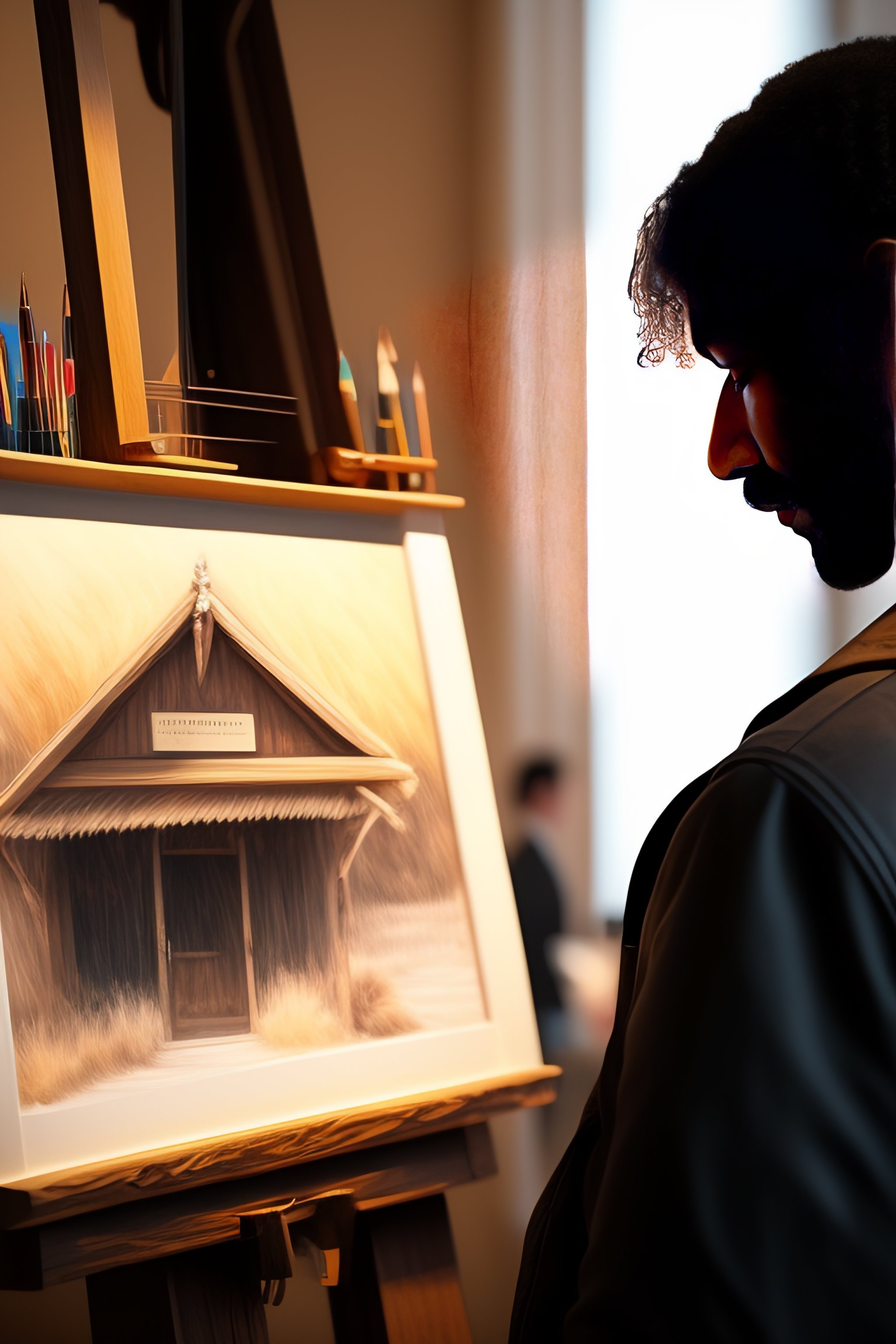 Artist in front of a gallery drwaing sketches