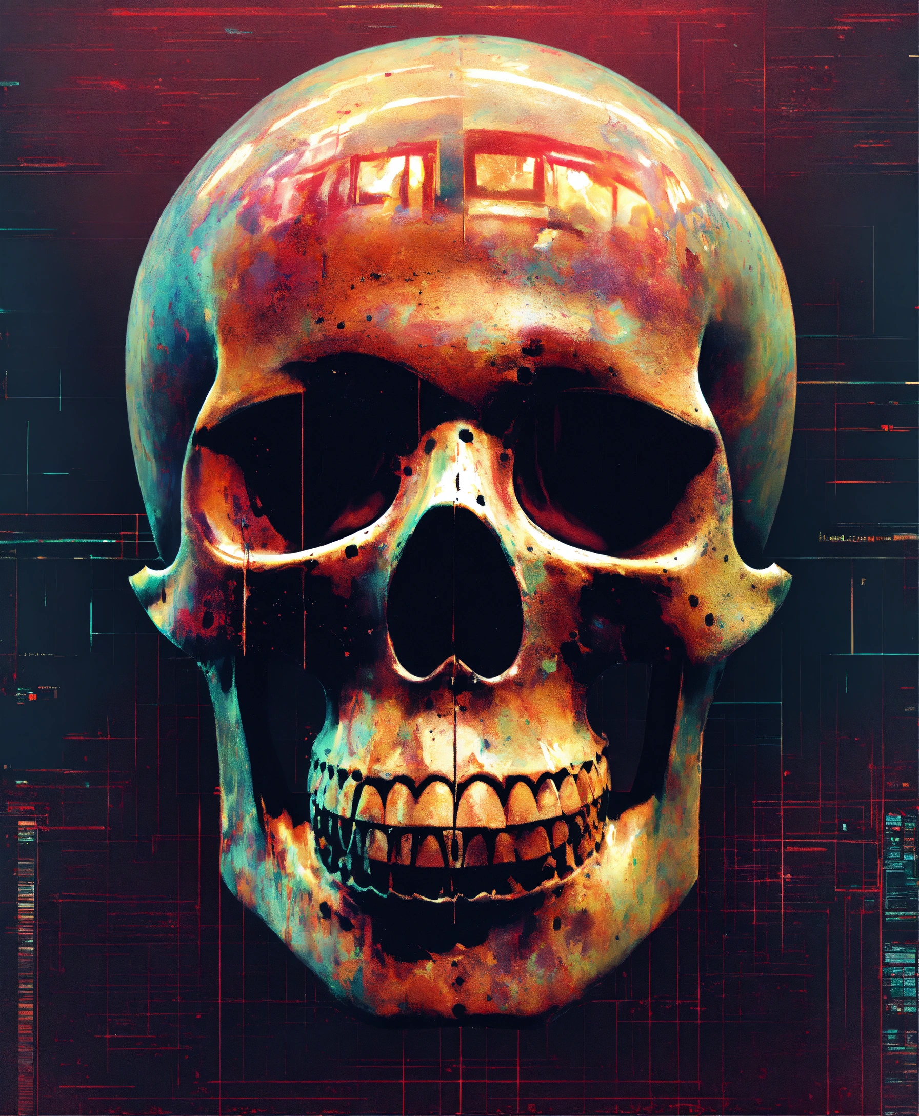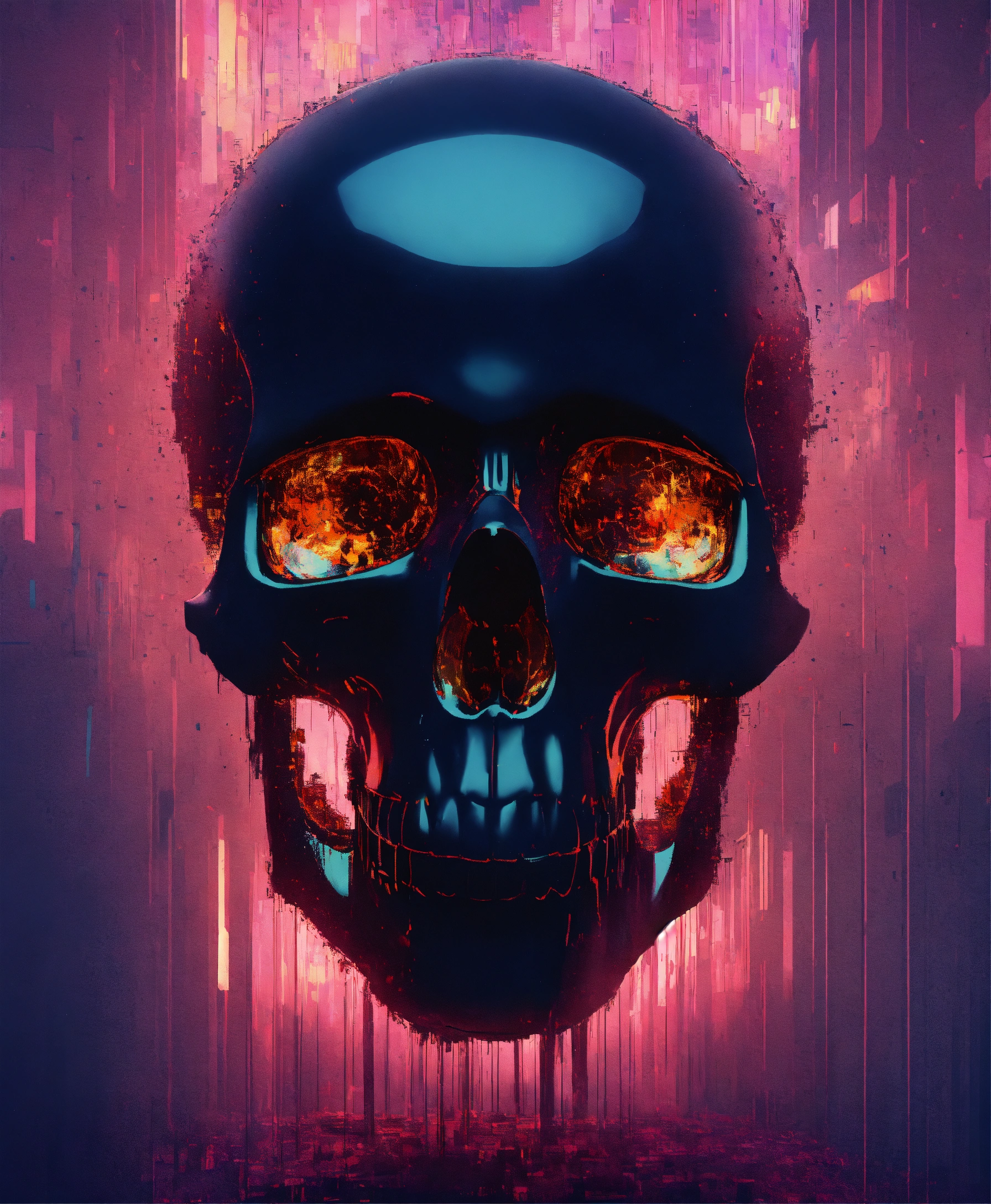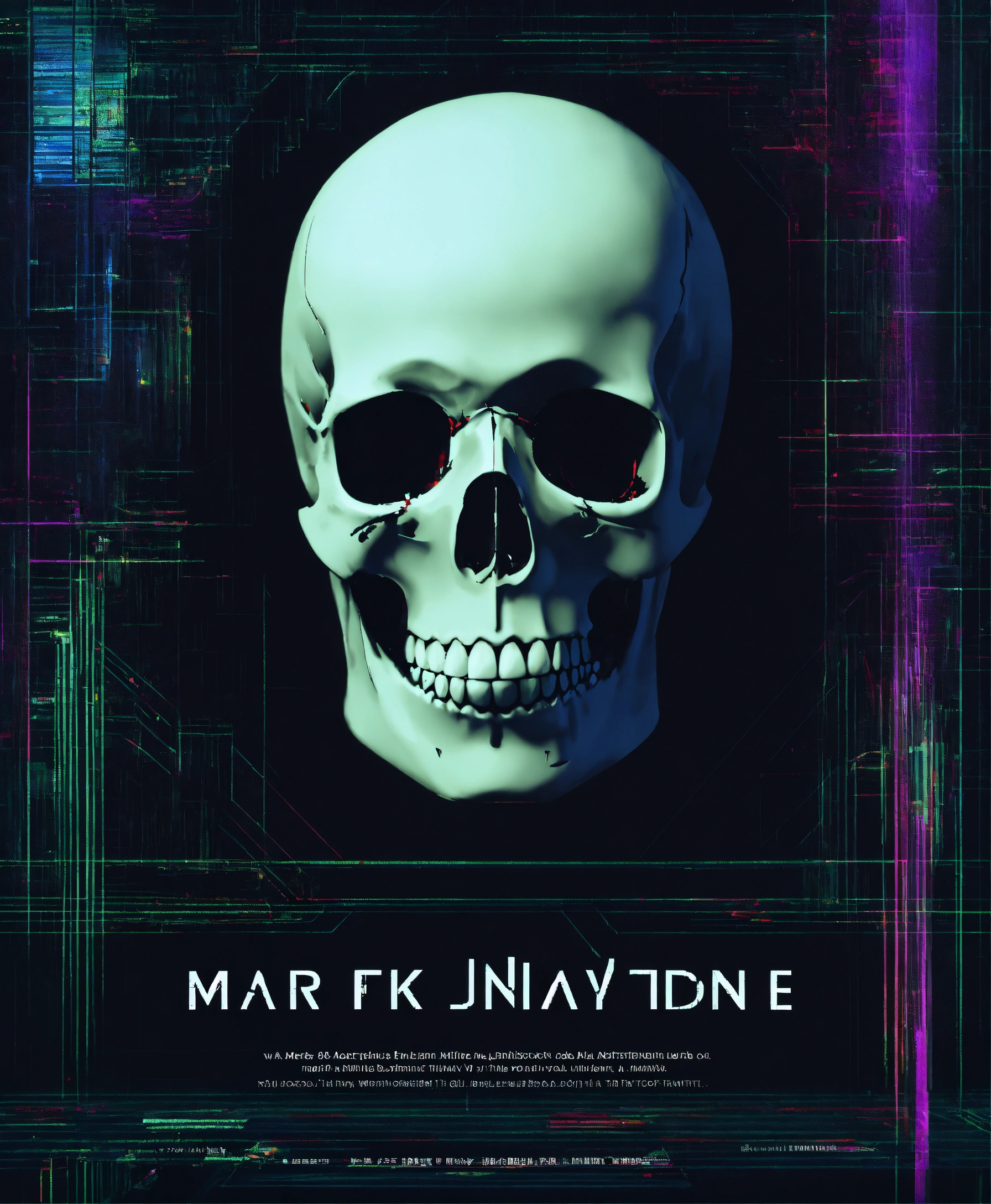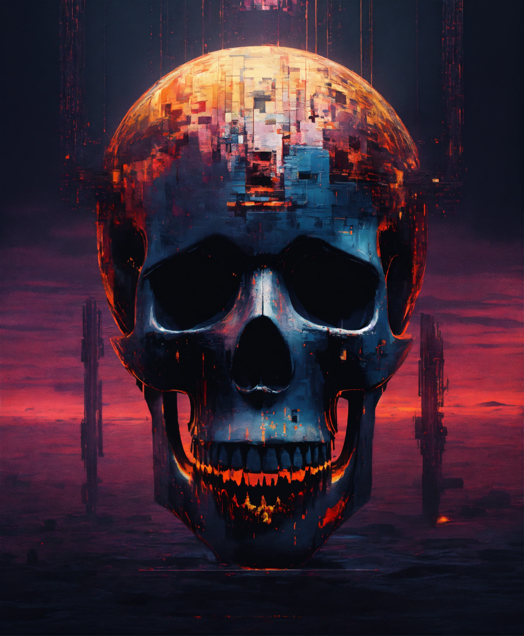 It represents absolute darkness, glitchy distortion at the edges, add memento mori text to the image as a title, use 8k