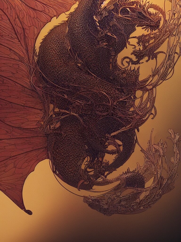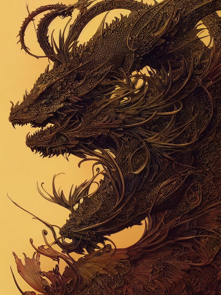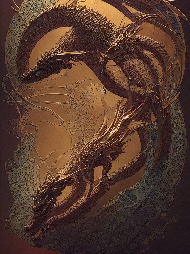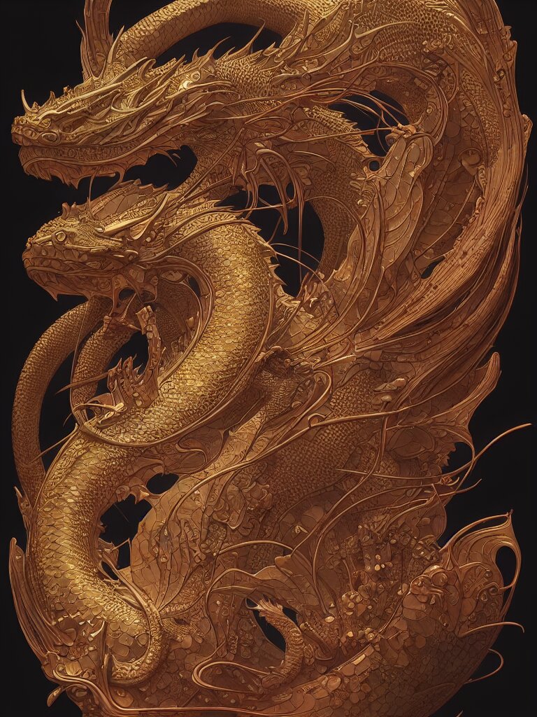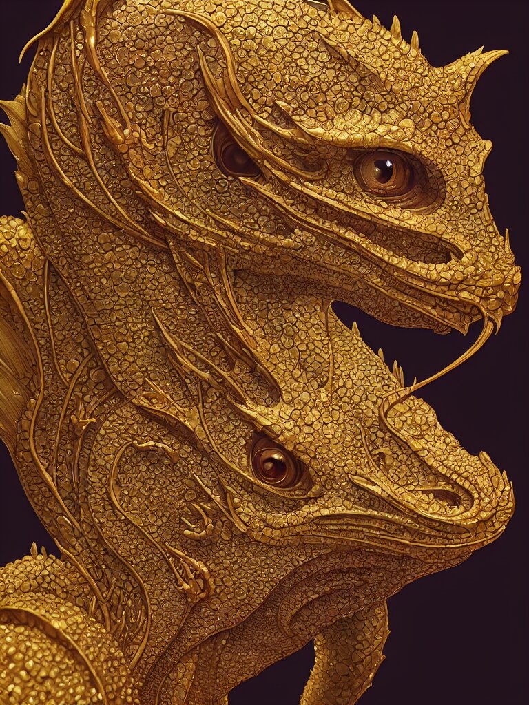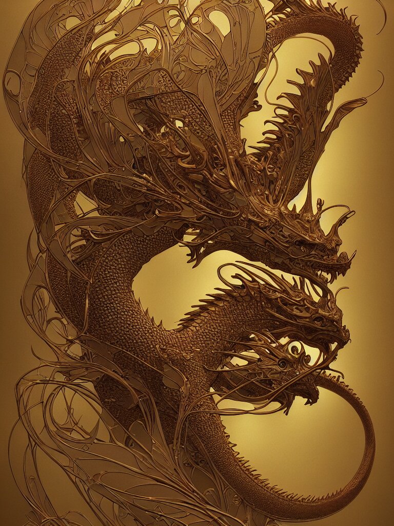 Close-up portrait dragon 3d composition, mucha, moebius, new art nouveau, gold betta fish, bioluminescent, intricate artwork by tooth wu and wlop and beeple. octane render, trending on artstation, greg rutkowski very coherent symmetrical artwork. cinematic, hyper realism, high detail, octane render, black studio background, 8k