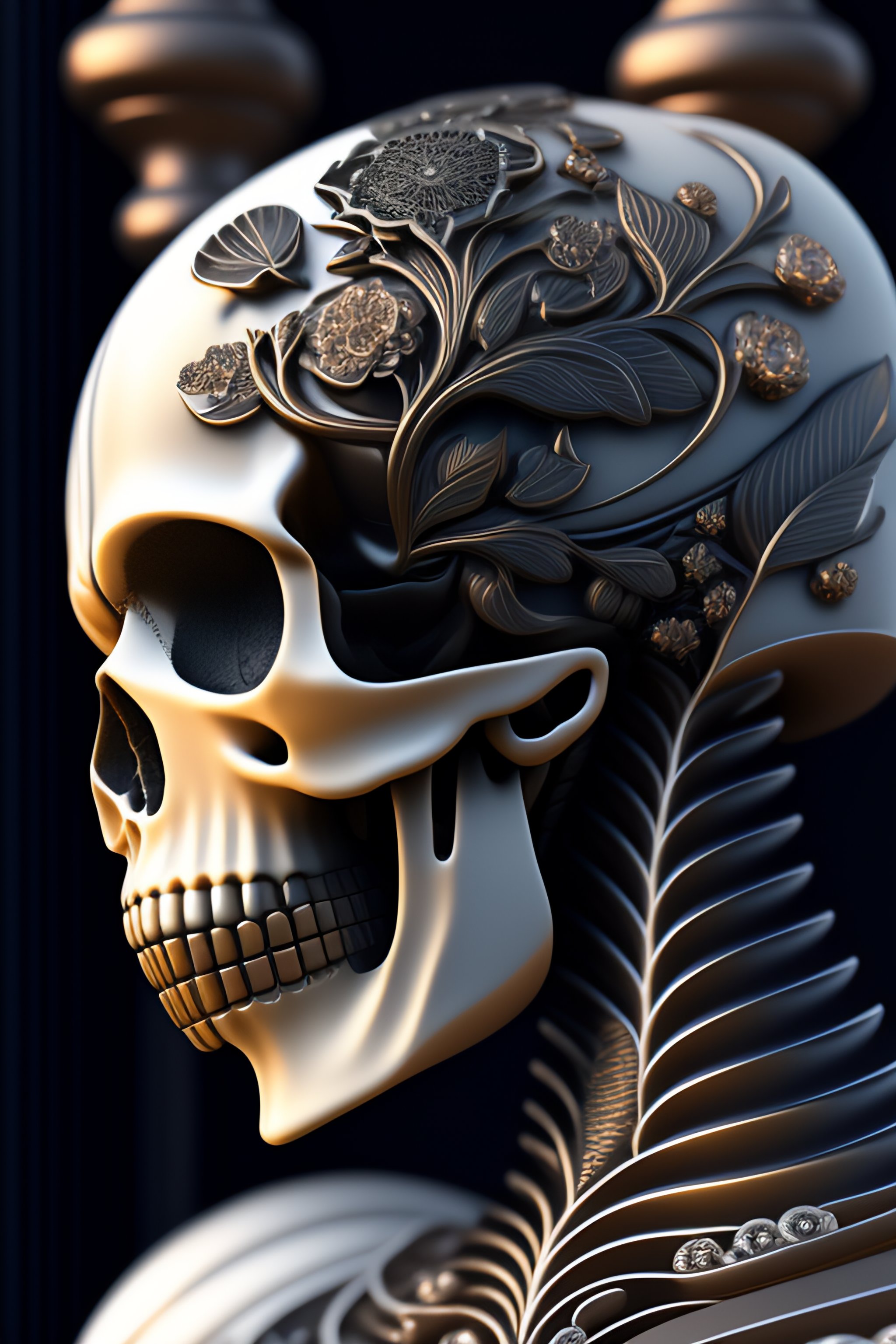 Mythical dreamy black and white organic bio - mechanical spinal ribbed profile face portrait of skull praying, detail of translucent steampunk beautiful intricate monochrome angelic - human - king - vegetal - roses - gothic - cyborg, highly detailed, intricate translucent ivy jelly ornate, poetic, translucent microchip ornate, 3d render, digital art, octane render, 8k artistic lithography, cirlcle, gateway, wide shot