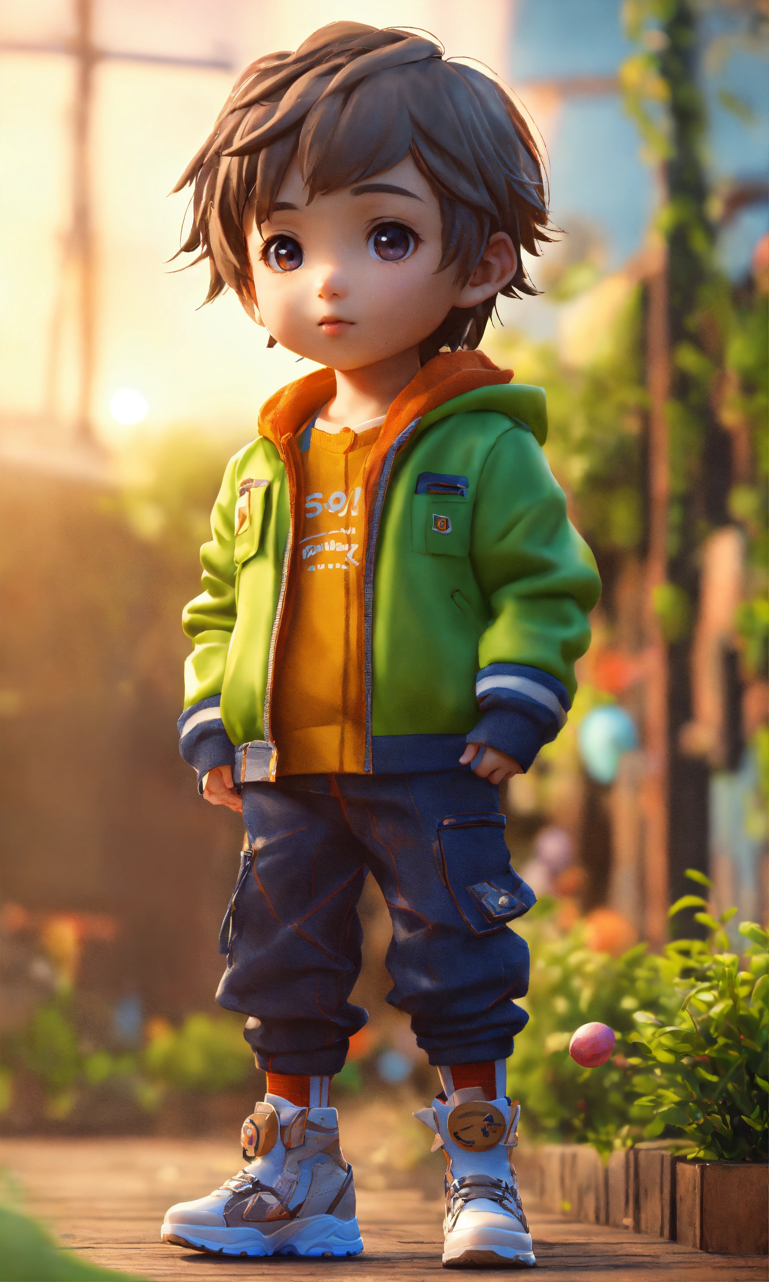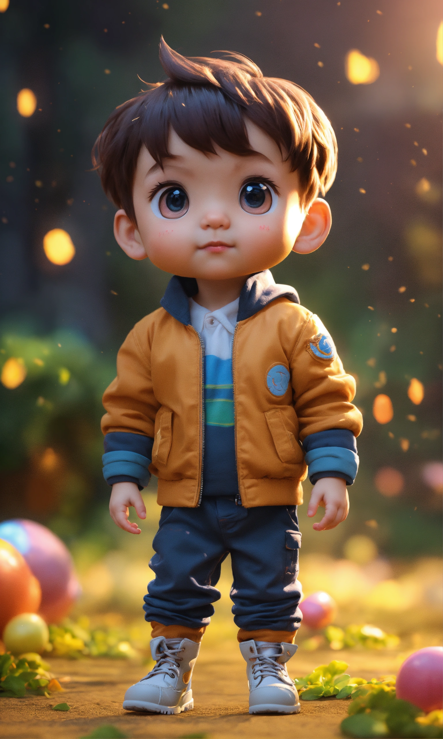 4d photographic image of full body image of a cute little chibi boy realistic, vivid colors octane render trending on artstation, artistic photography, photorealistic concept art, soft natural volumetric cinematic perfect light, uhd no background