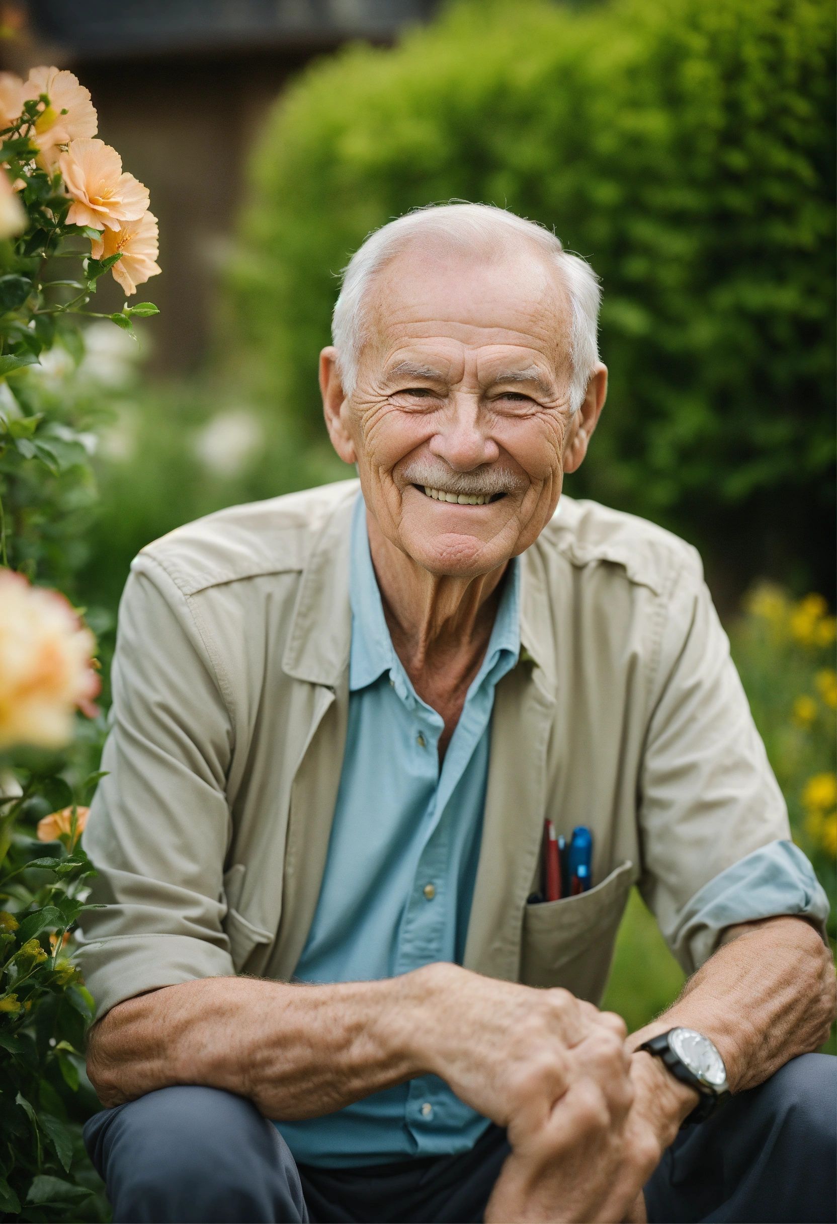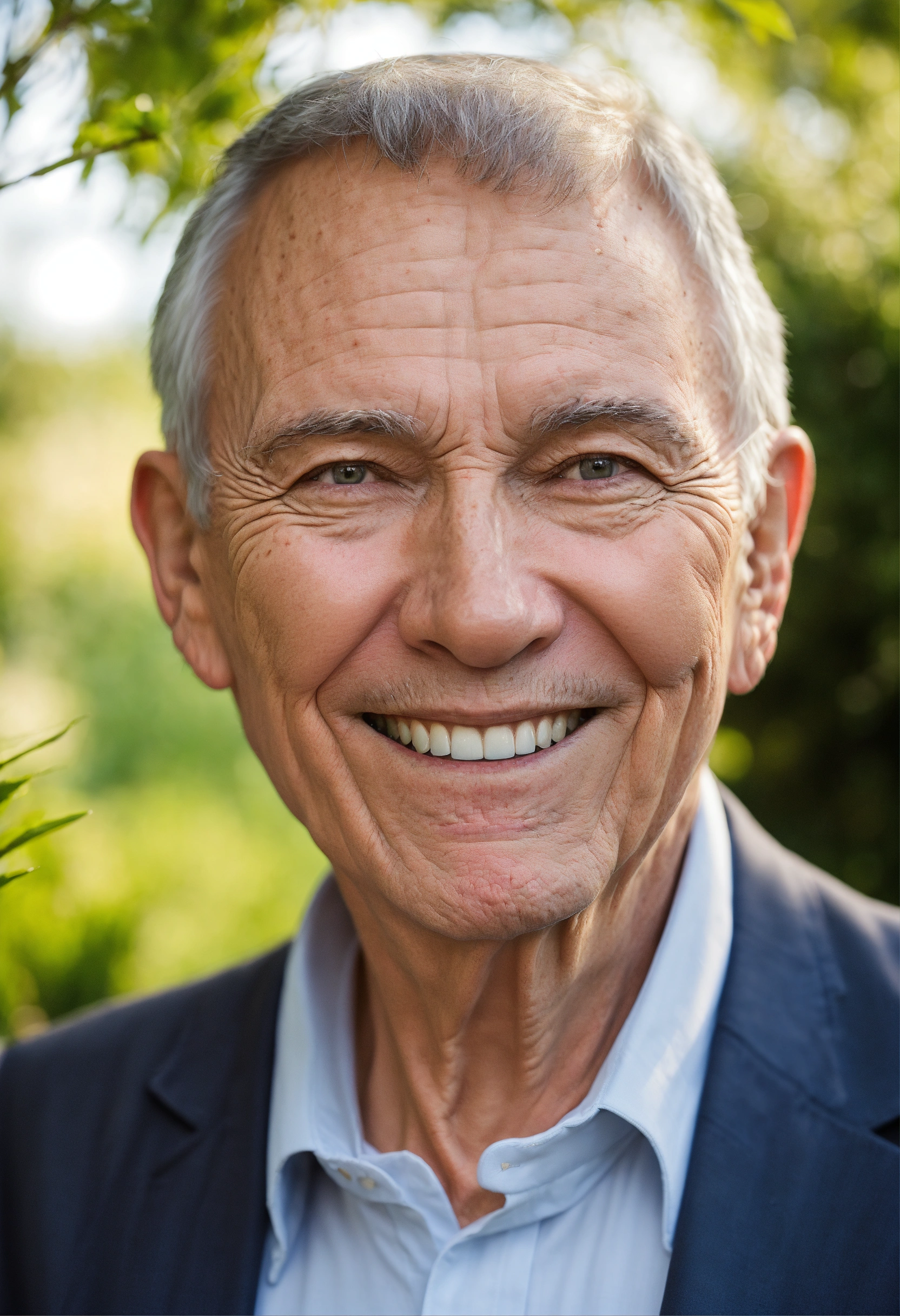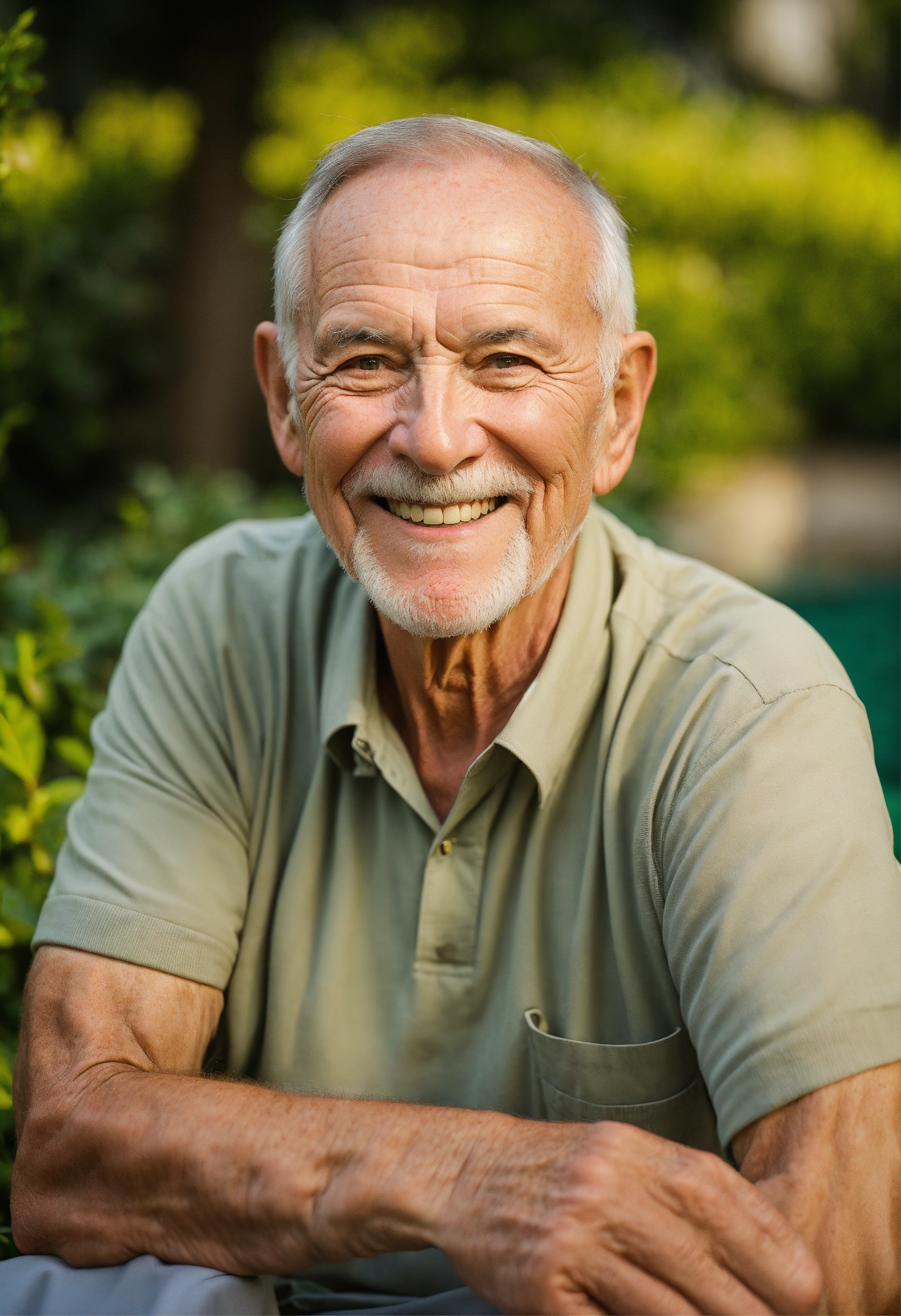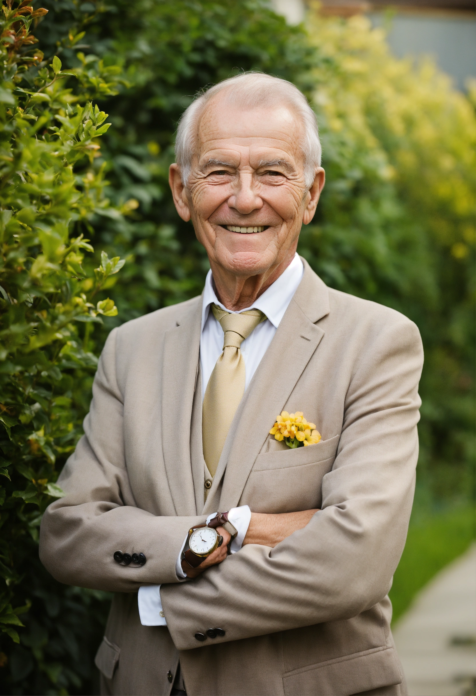 Smiling well-groomed rich elderly gentleman over 50 years old on the garden