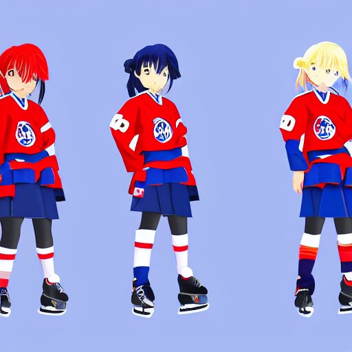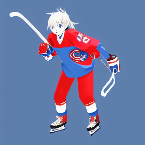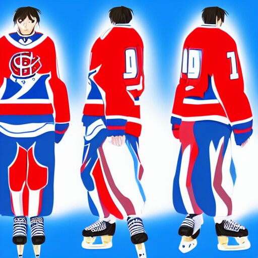 Cute anime girl ice hockey player, habs jersey, blue white and red color blocking, character concept exploration, ghost in the shell, outfit designs, trending on artstation, 8k