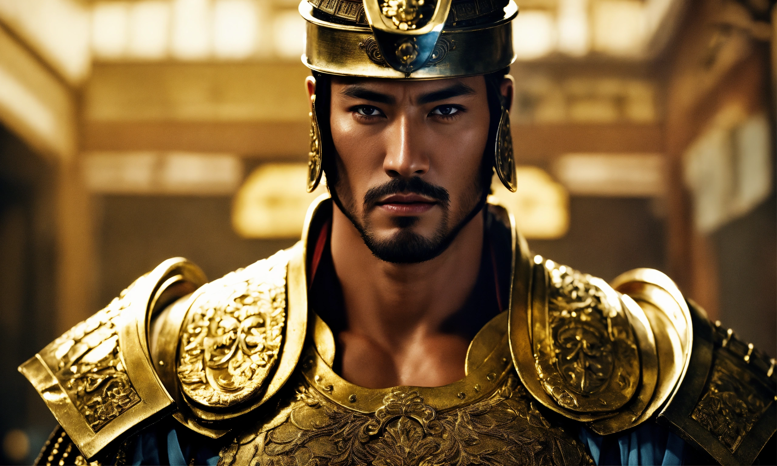Portrait of a stunningly beautiful samurai with, mister olympia anatomy, broad muscular legs, big delts, ripped, intricate, elegant, depth of field, zeiss lens, detailed, symmetrical, centered, fashion photo shoot, by annie leibovitz and steve mccurry, david lazar, jimmy nelsson, breathtaking, 8 k resolution, extremely detailed, beautiful, establishing shot, artistic, hyper-realistic, beautiful face, octane render, full shot