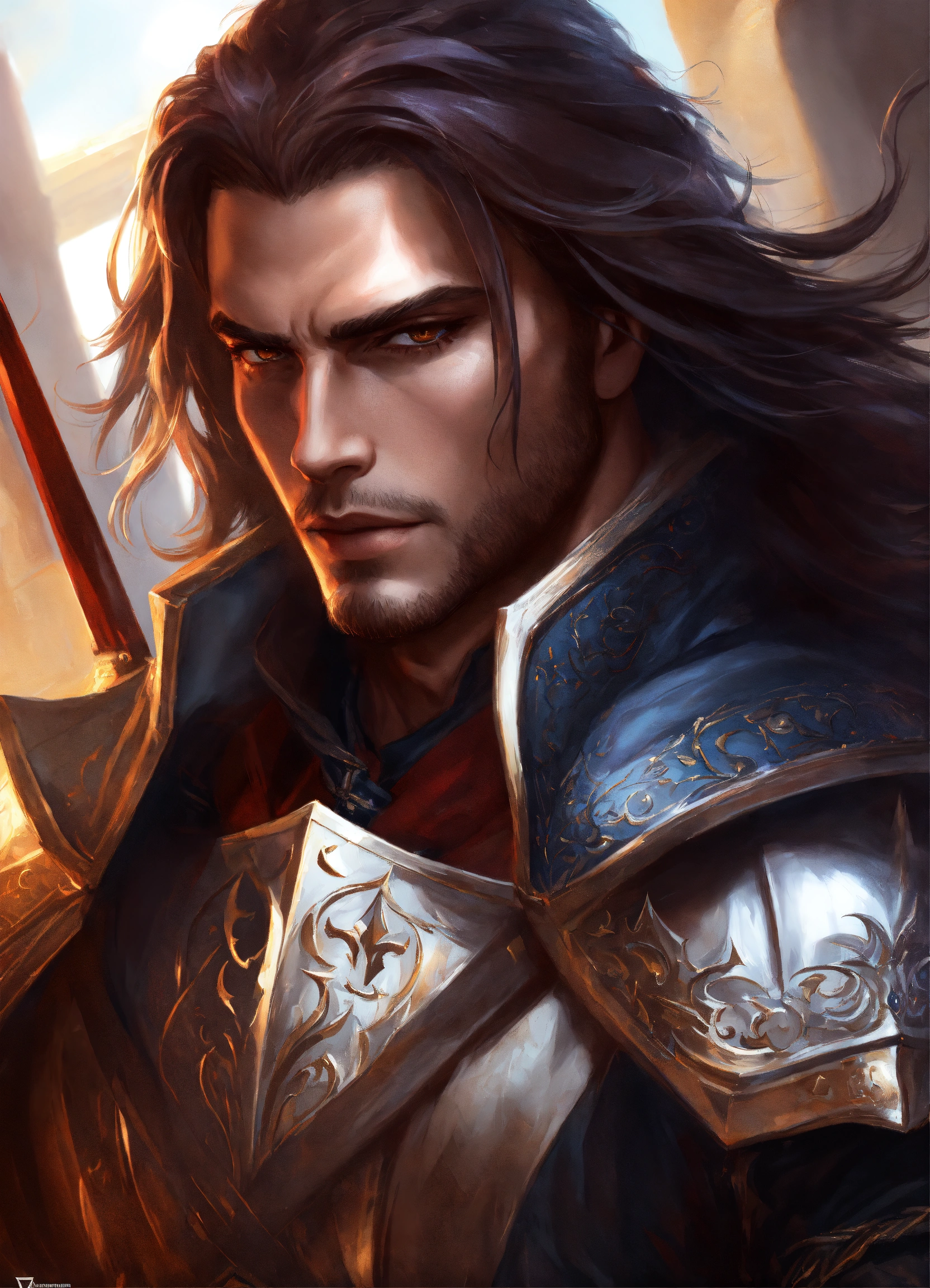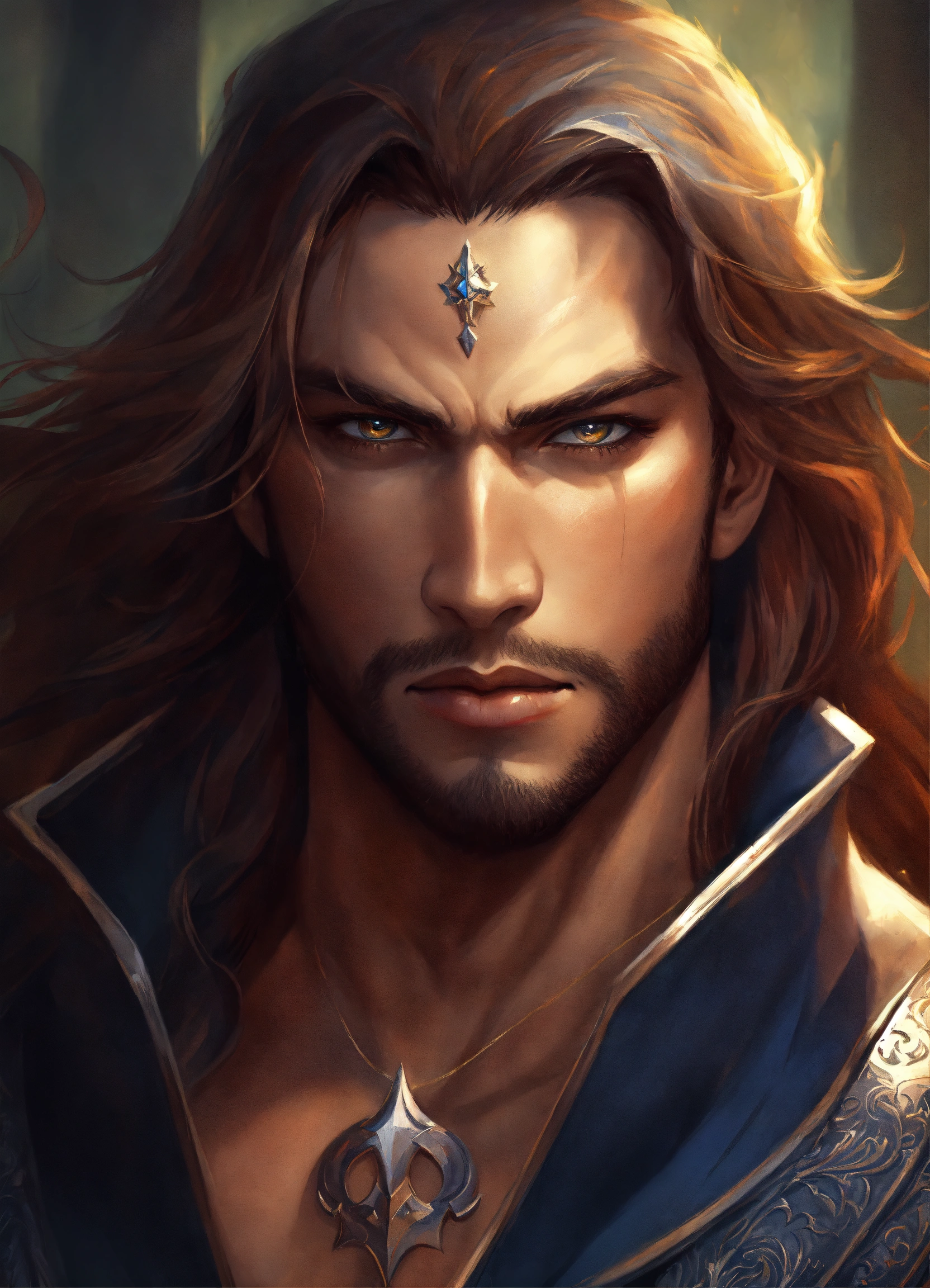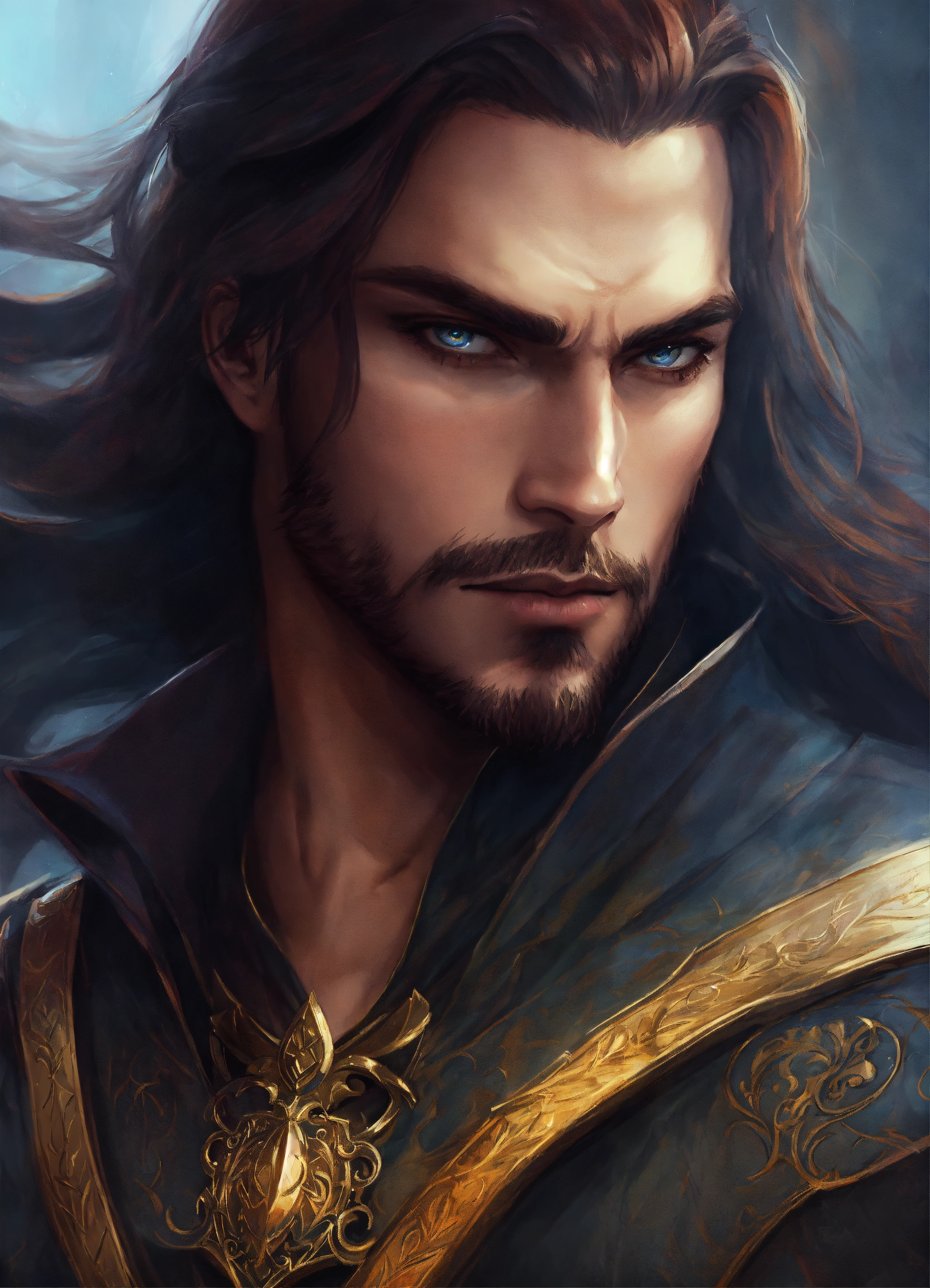 Medieval fantasy, fierce, digital art, art by artgerm, prince, male, rugged, prince, evil, handsome man, long hair.