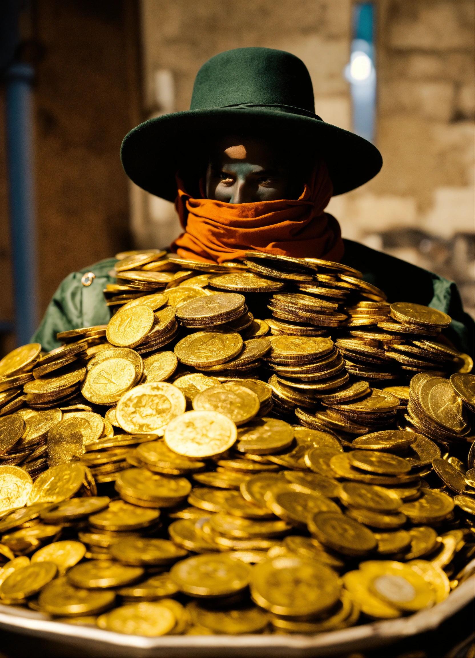 Vermummter verbrecher mit bündel bargeld