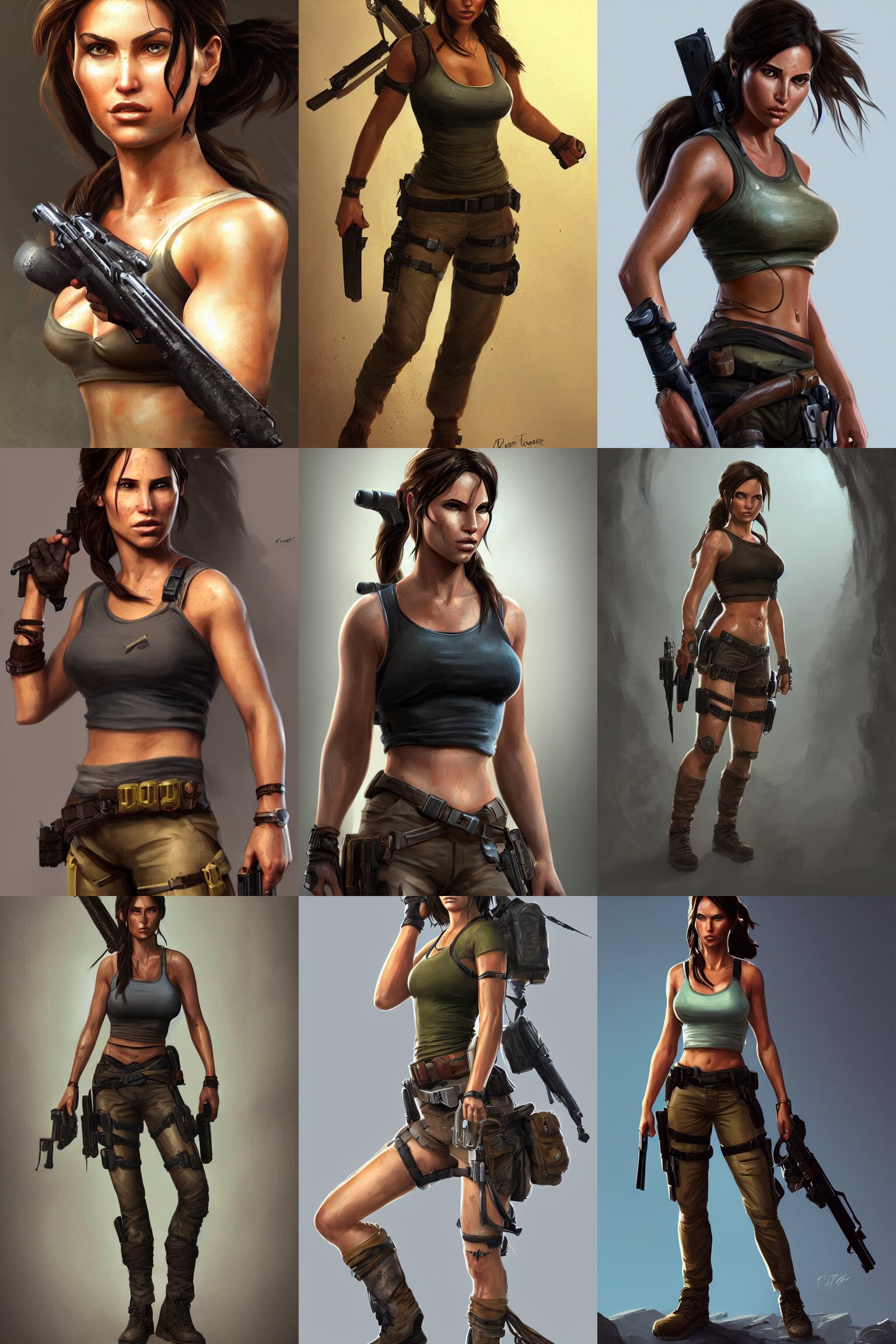 Full length portrait of lara croft, by tom cross, highly detailed, portrait, scifi, digital painting, artstation, concept art, smooth, sharp focc