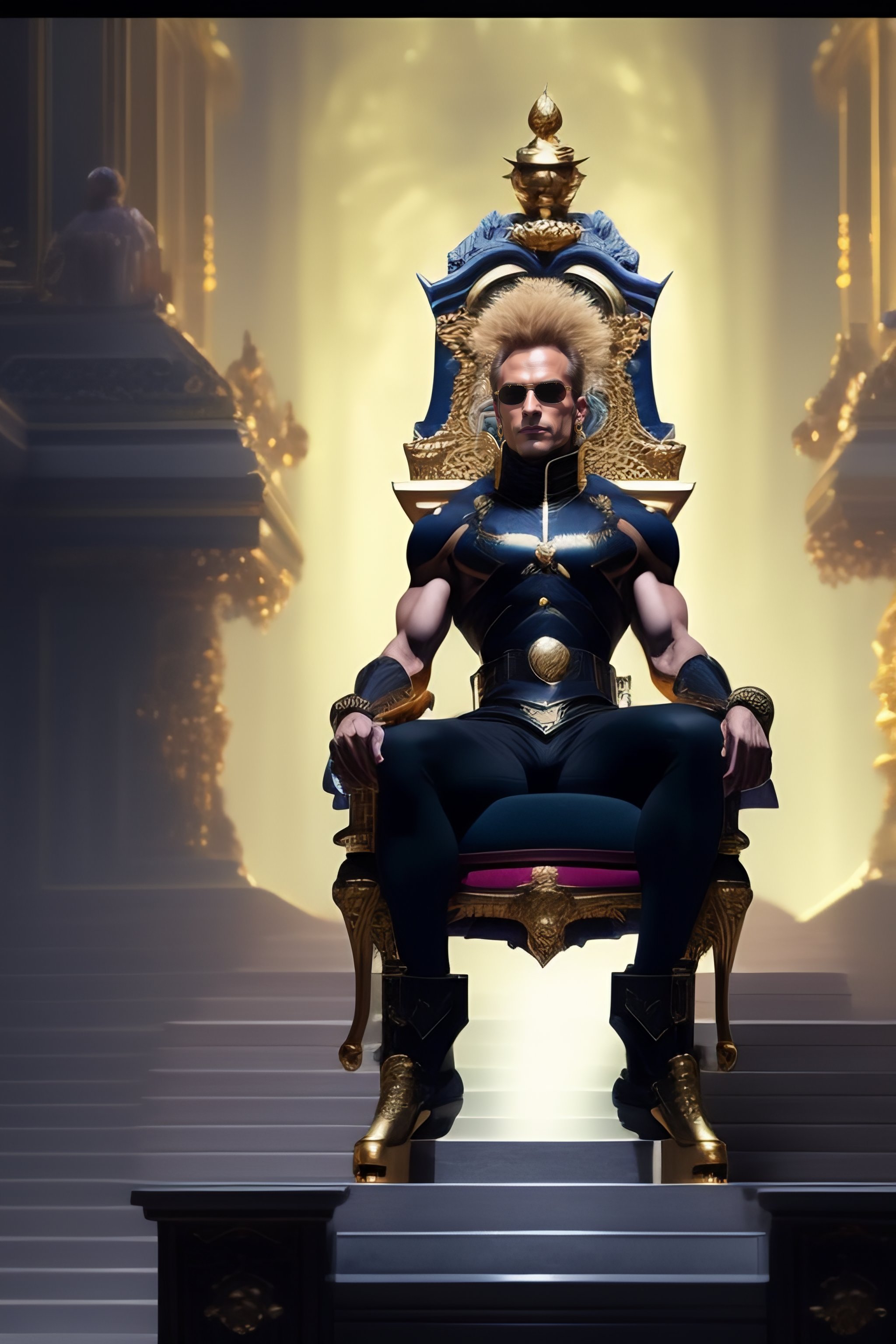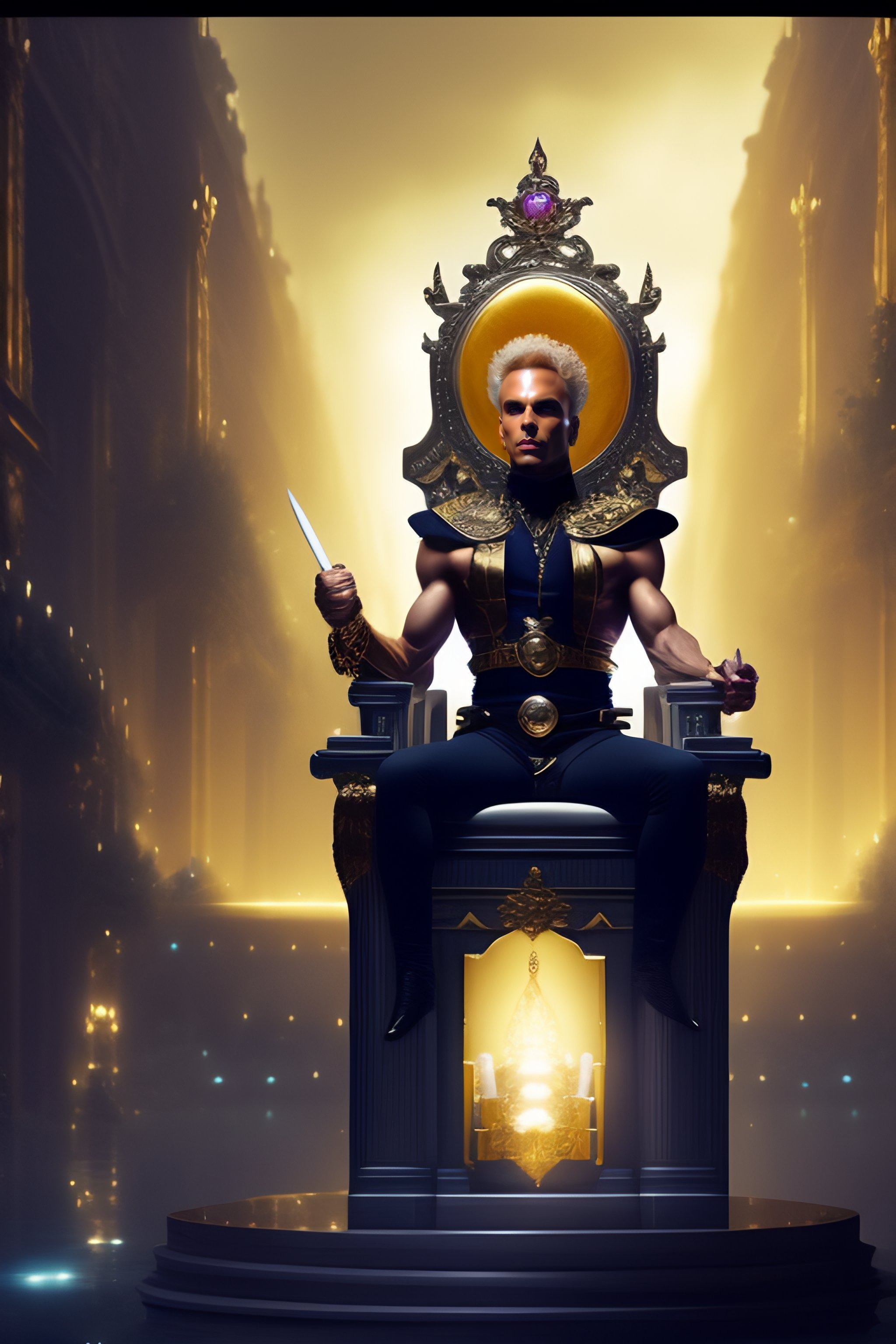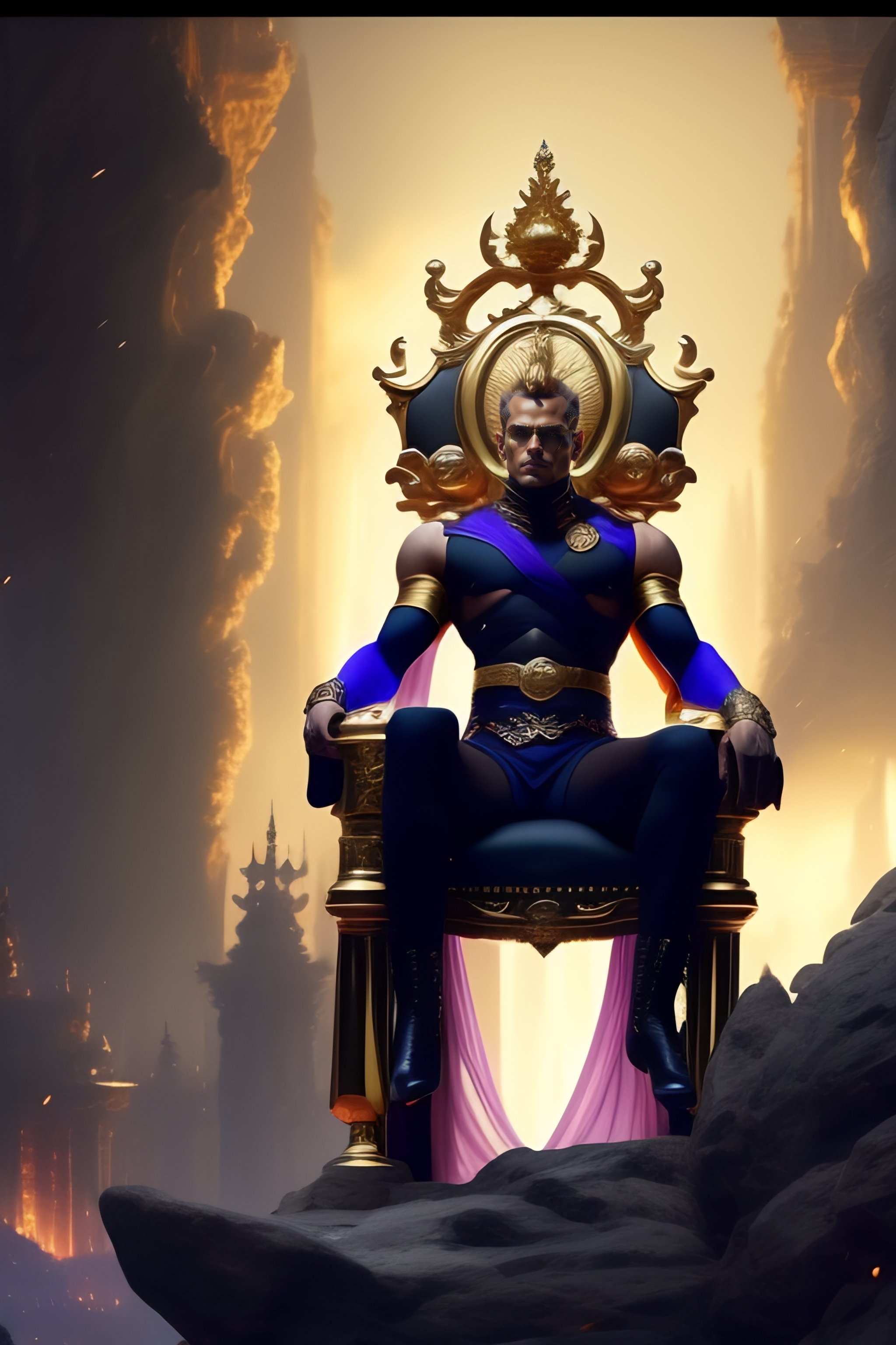 Dio from jojo's bizarre adventure sitting on a throne, matte painting by greg rutkowski, dim lighting https://pin.it/6hl9olp