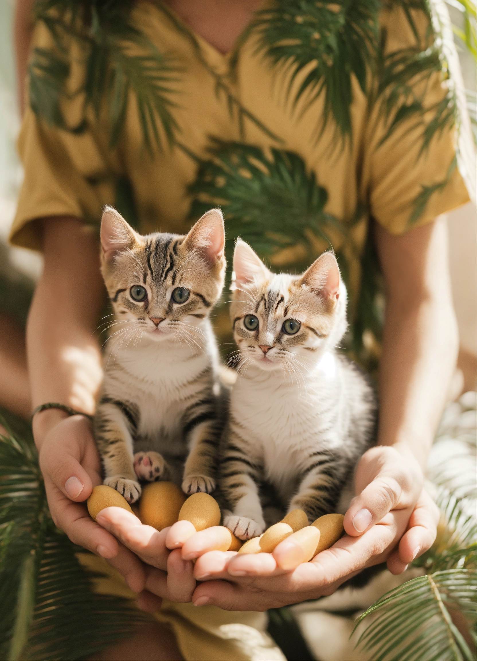 In palm sit 3 kitttens