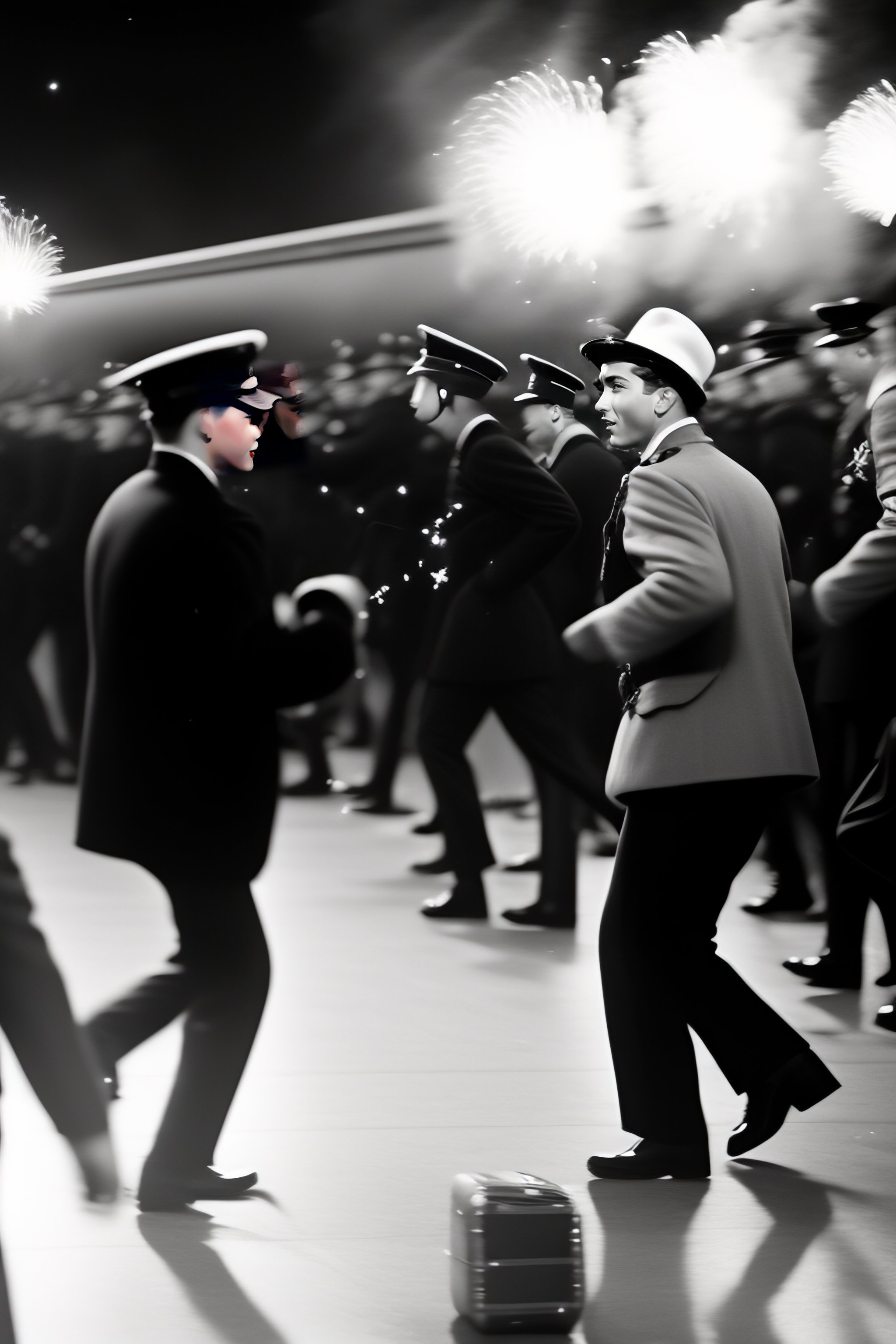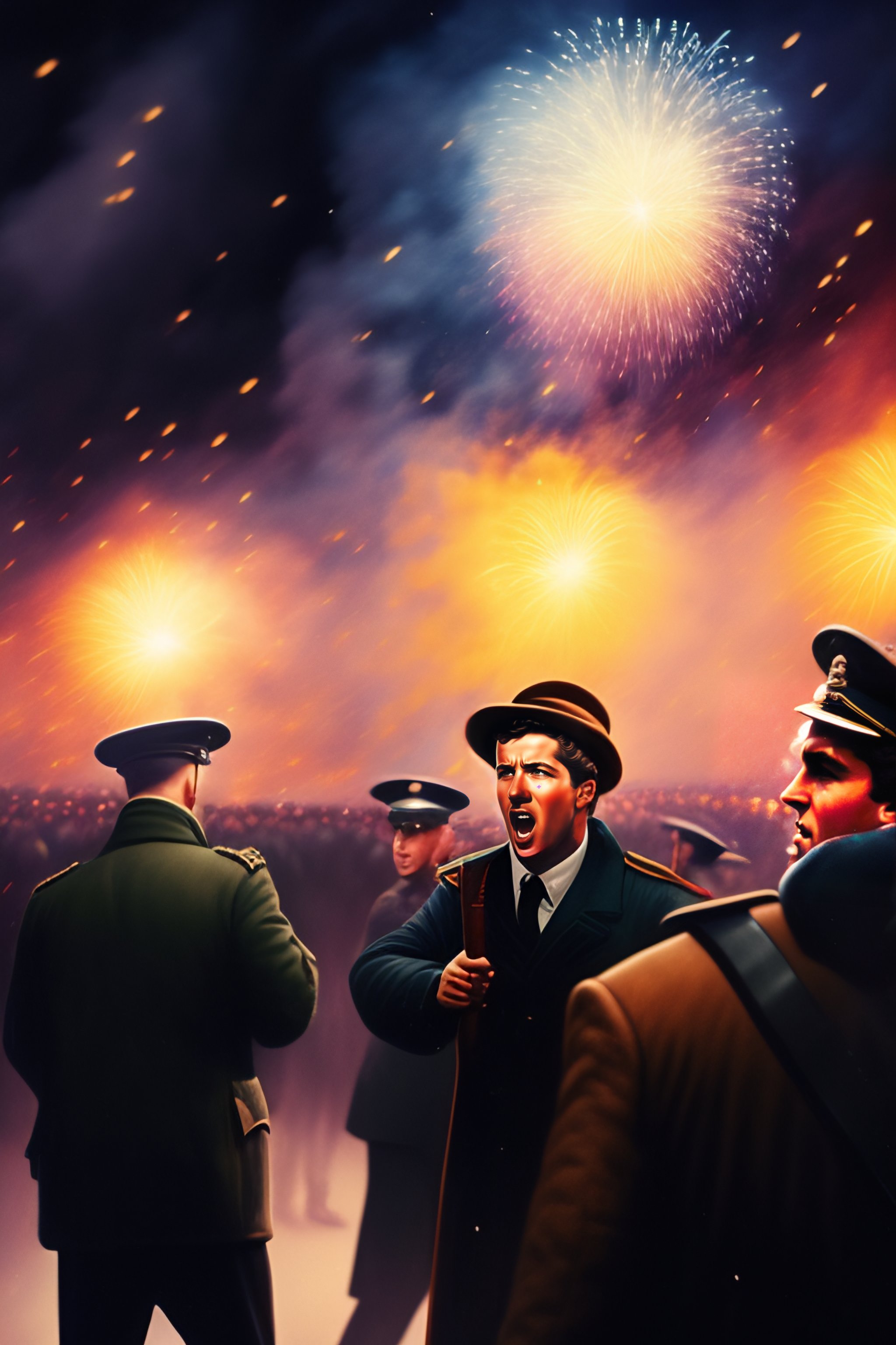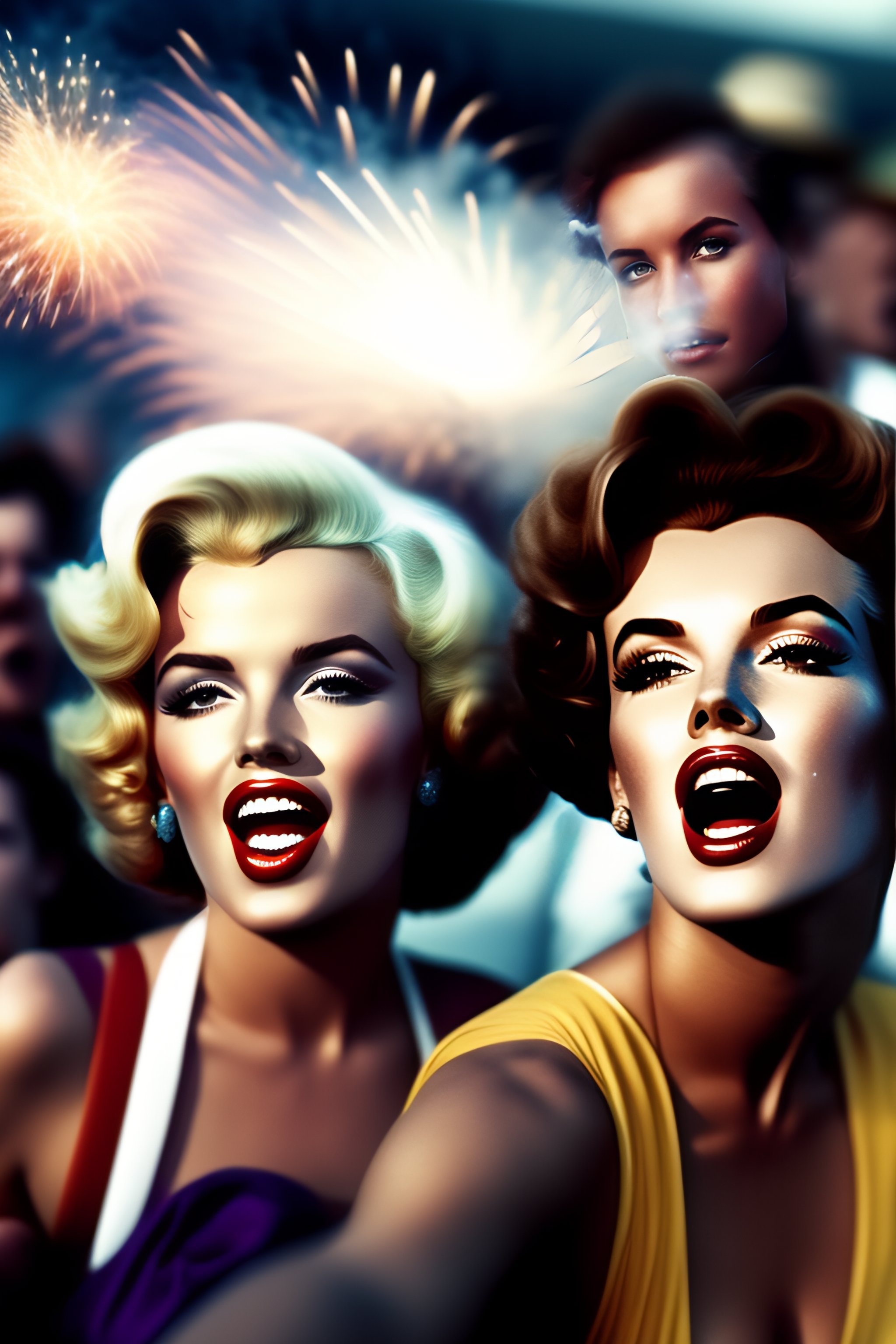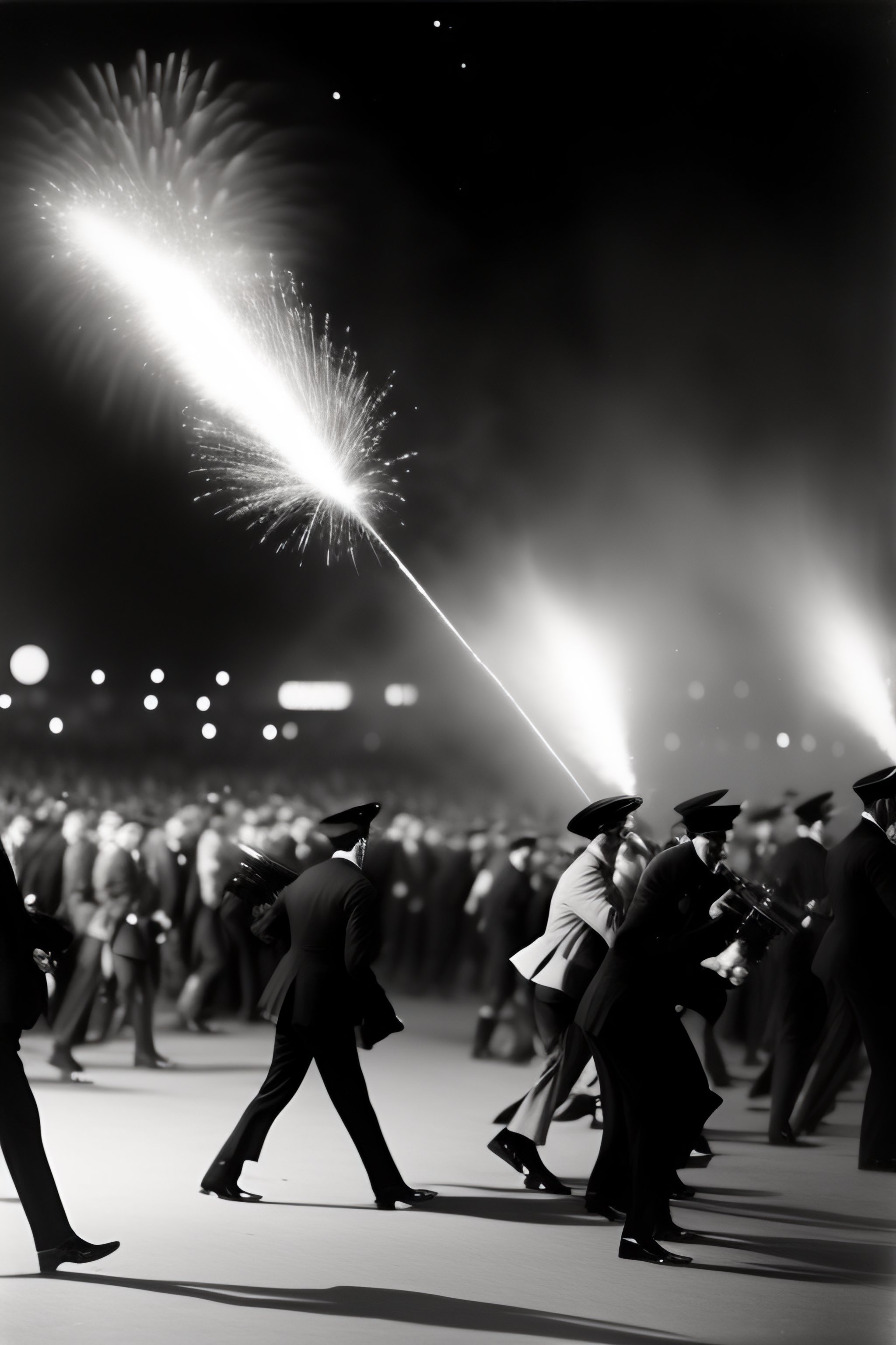 A group of young angry migrants firing fireworks at jfk and marilyn monroe