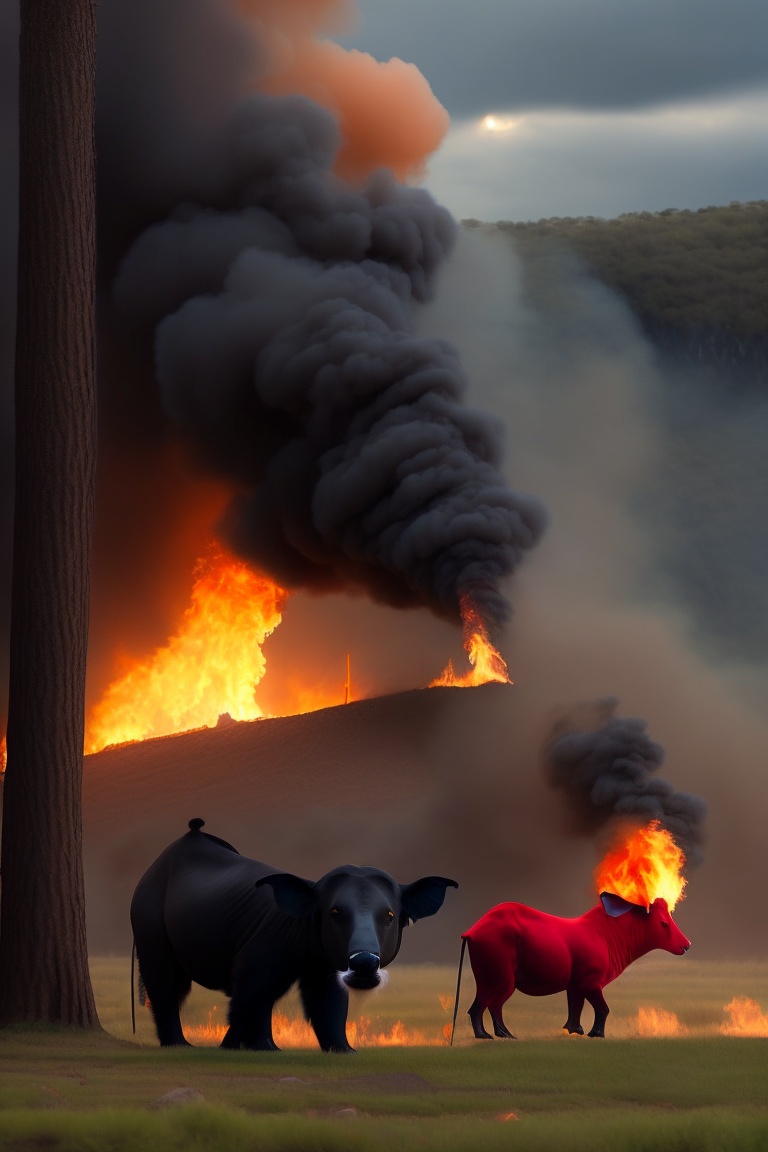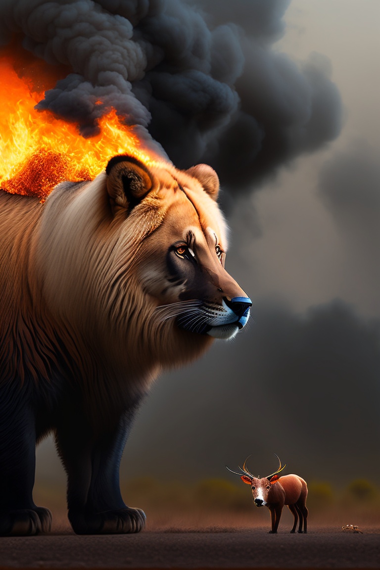 Animals gathering in concern: illustrate animals gathering around, their worried expressions directed at the spreading fire.