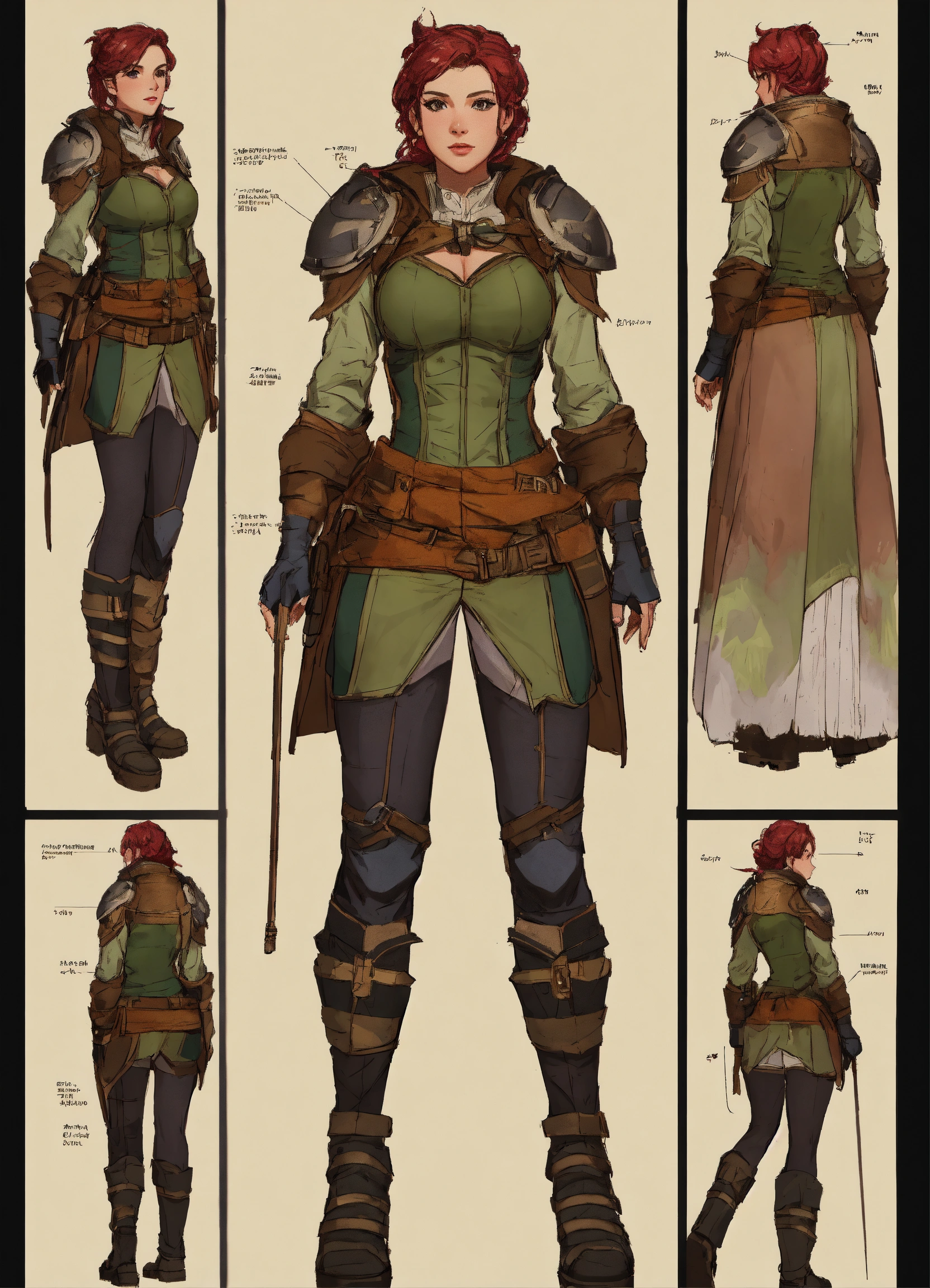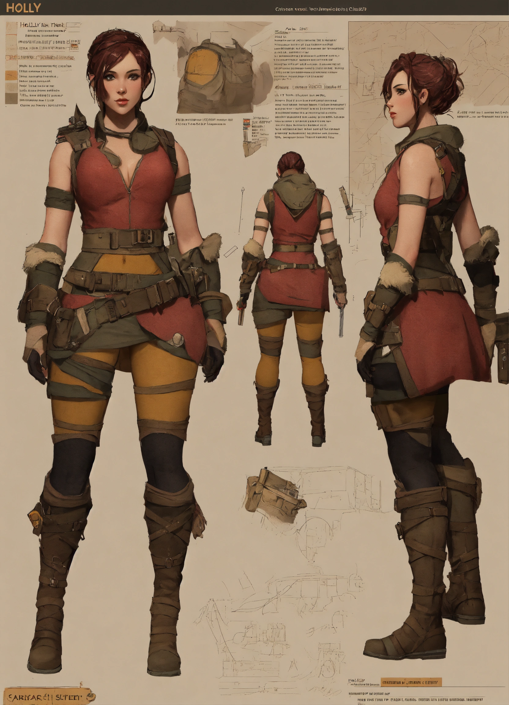 Holly, character sheet, character design, chart, reference sheet, multiple views, high detail, fine details, concept art