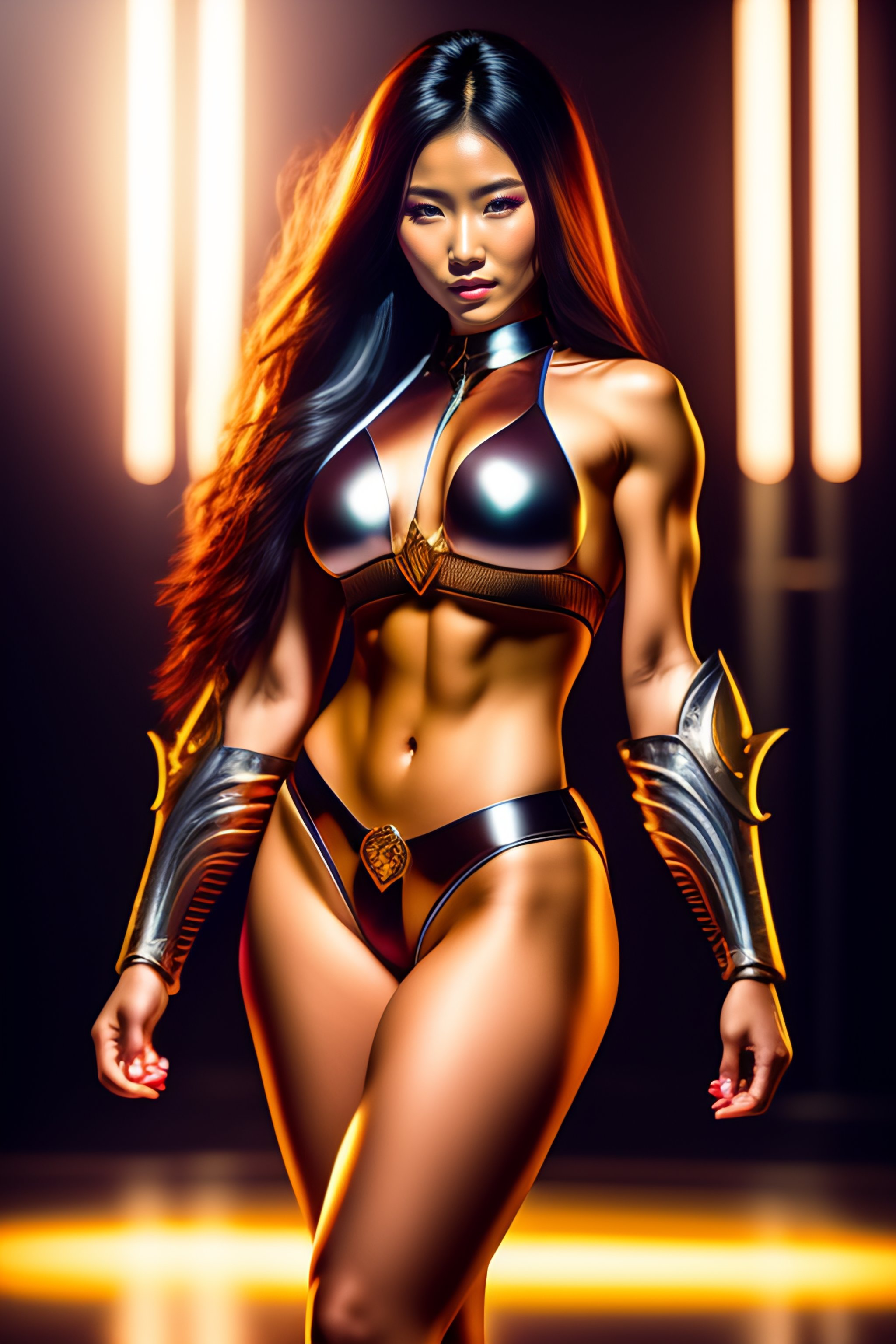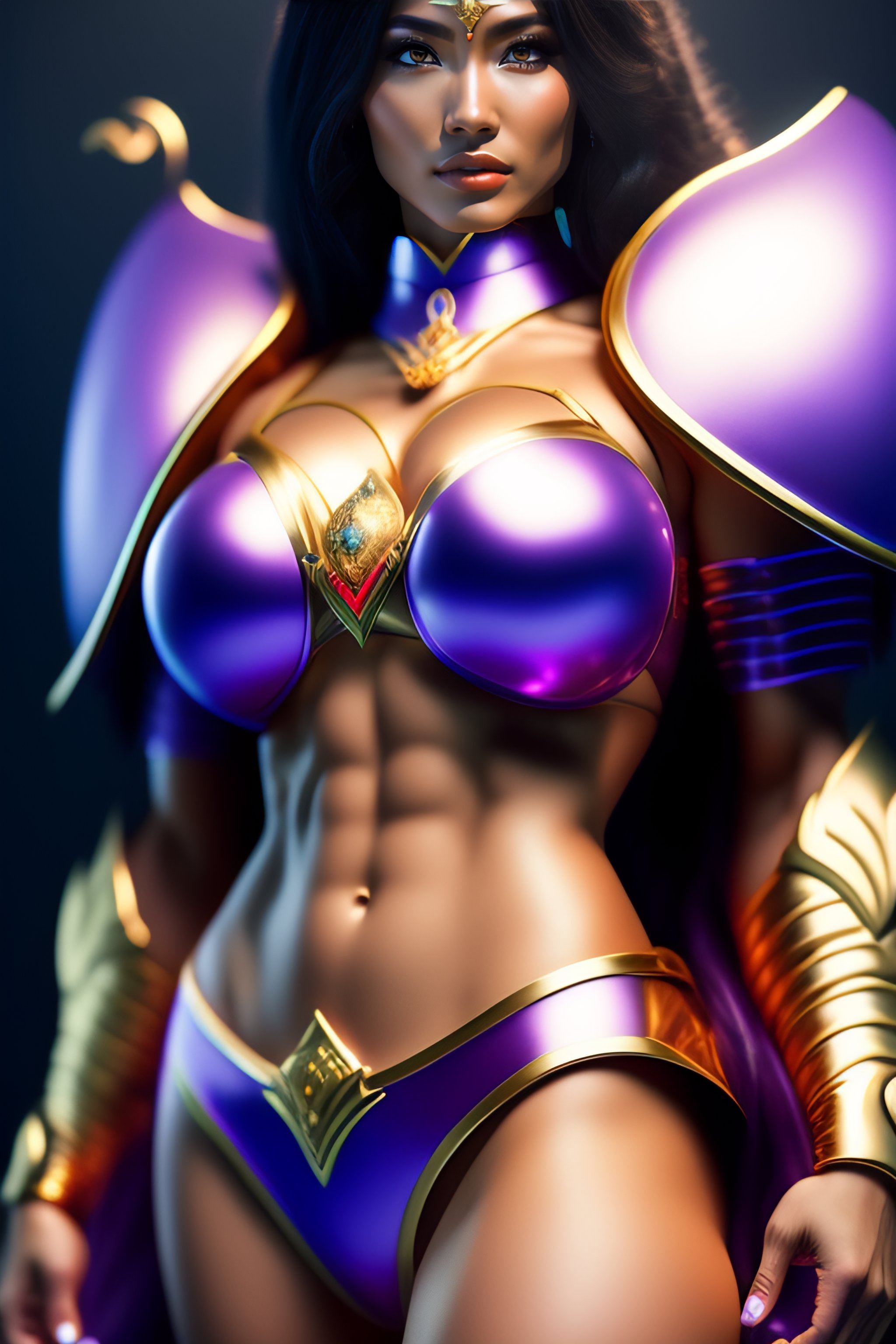 Portrait of a female saint seiya, cute, metal bikini, really nice proportions, photorealism, studio lighting, award photograph