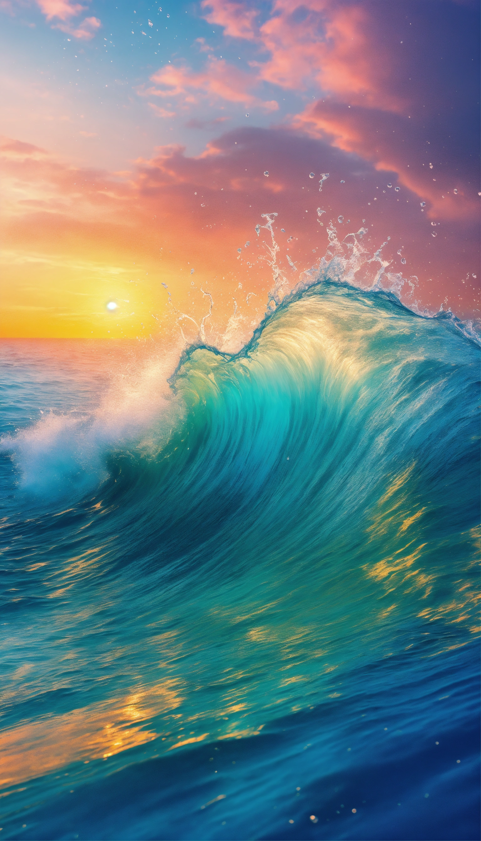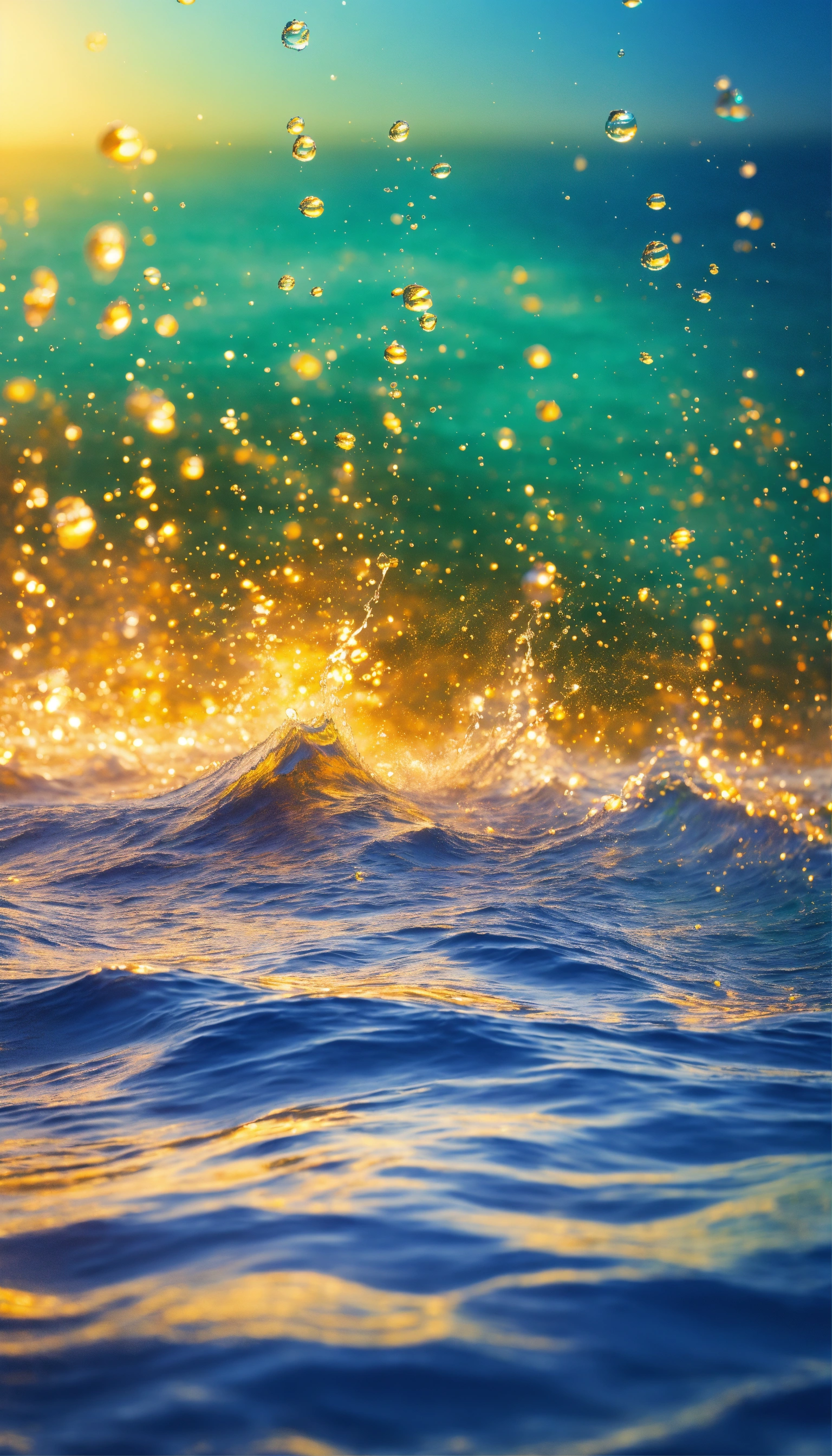 Summer background of sea water, vibrant, colorful gradient splash, hd, 4k, high-quality, highly detailed, photorealistic, raw, high quality, dynamic lighting, sharp focus, ultra realistic, masterpiece