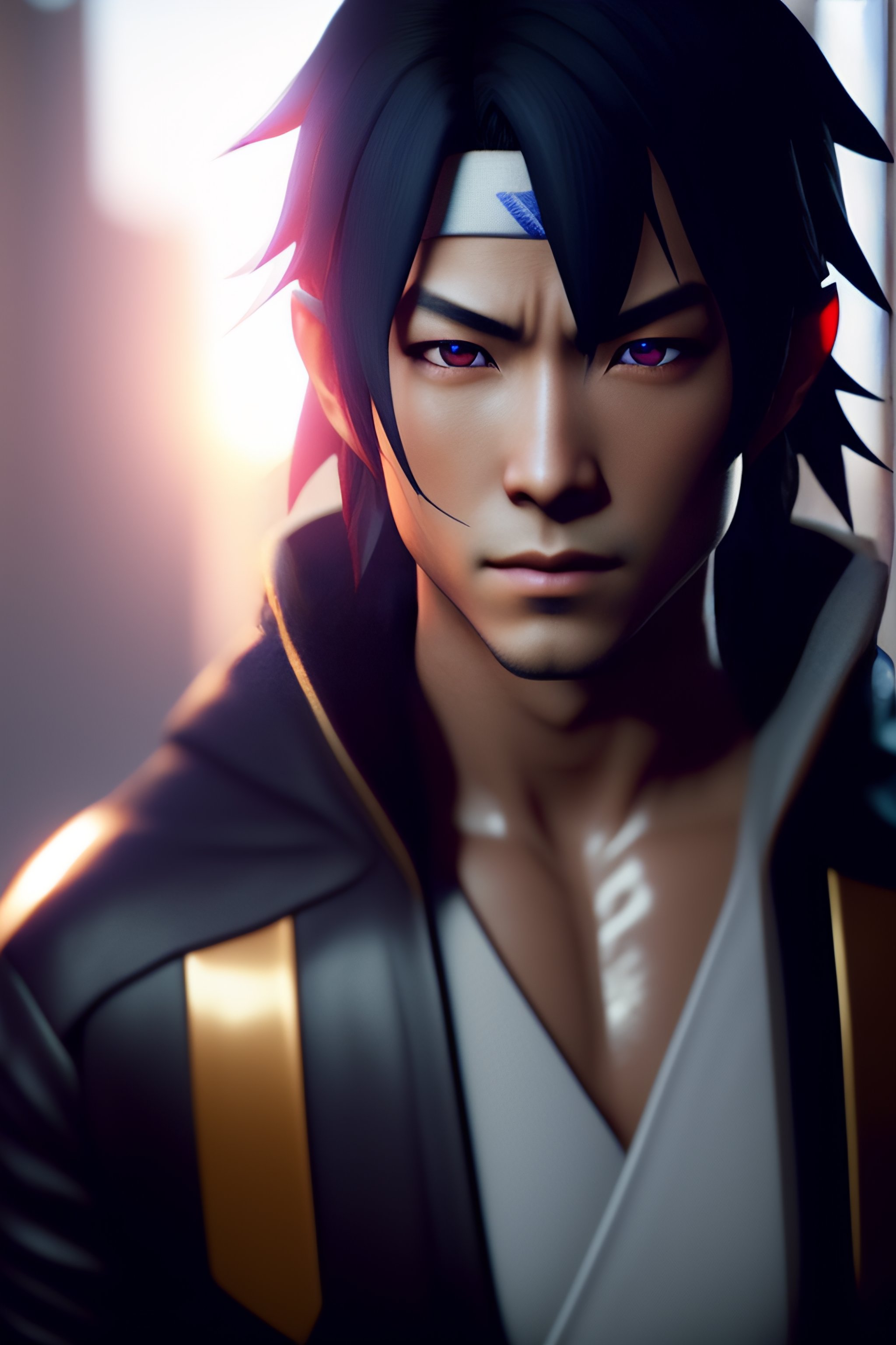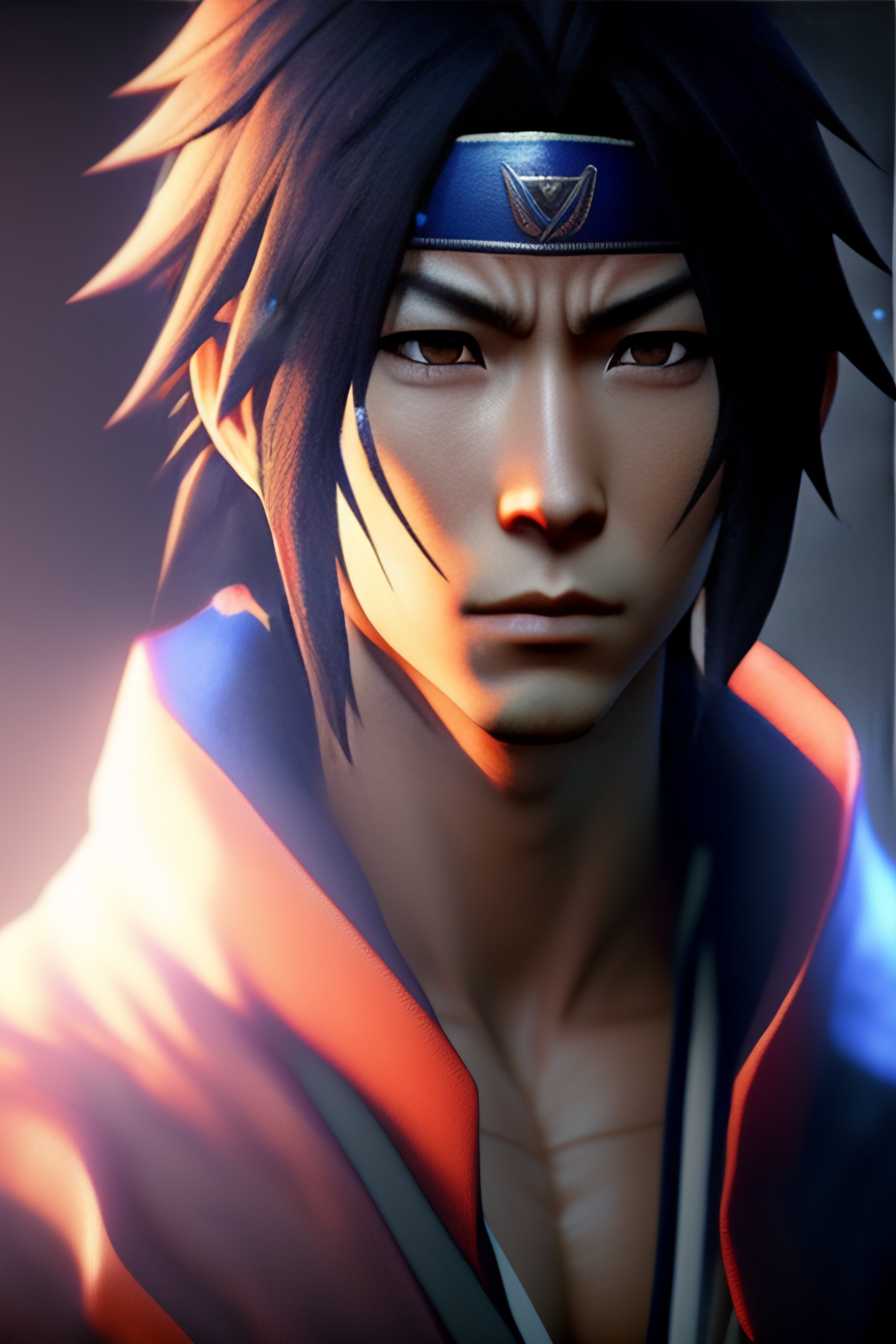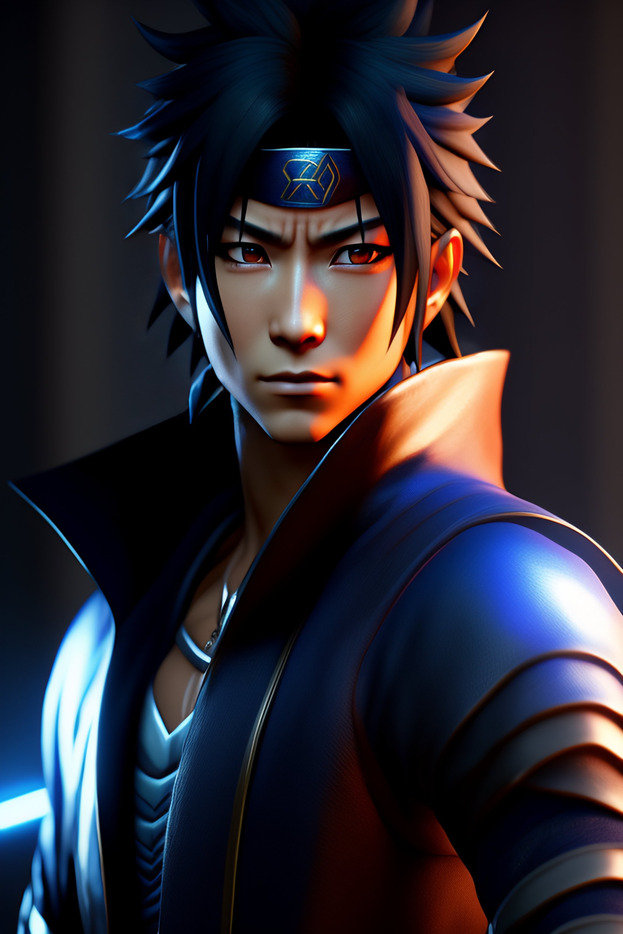 Sasuke uchiha from naruto, hyper realistic, octane rendering, unreal engine 5, illumination, 4k rendered, highly detailed
