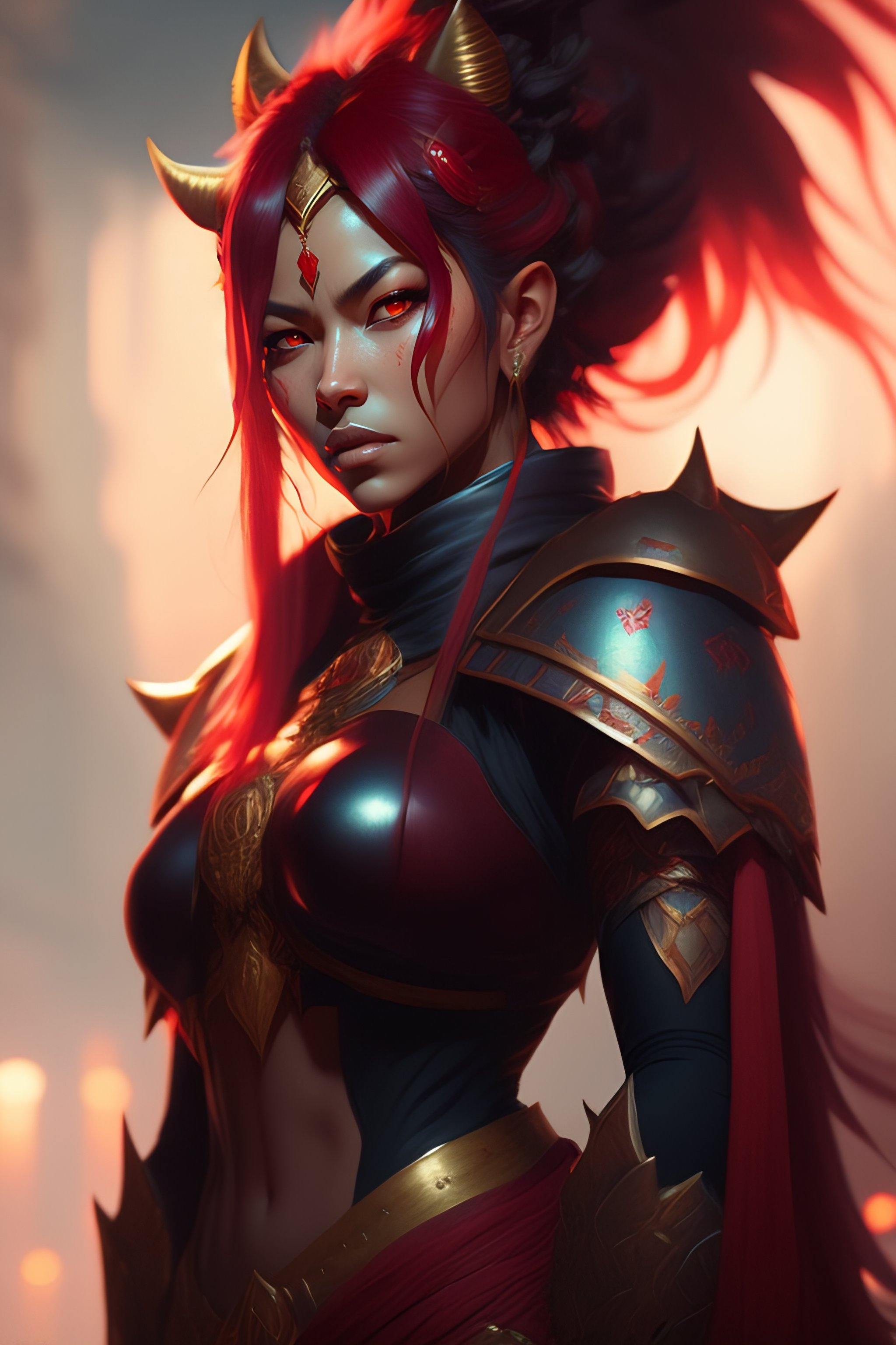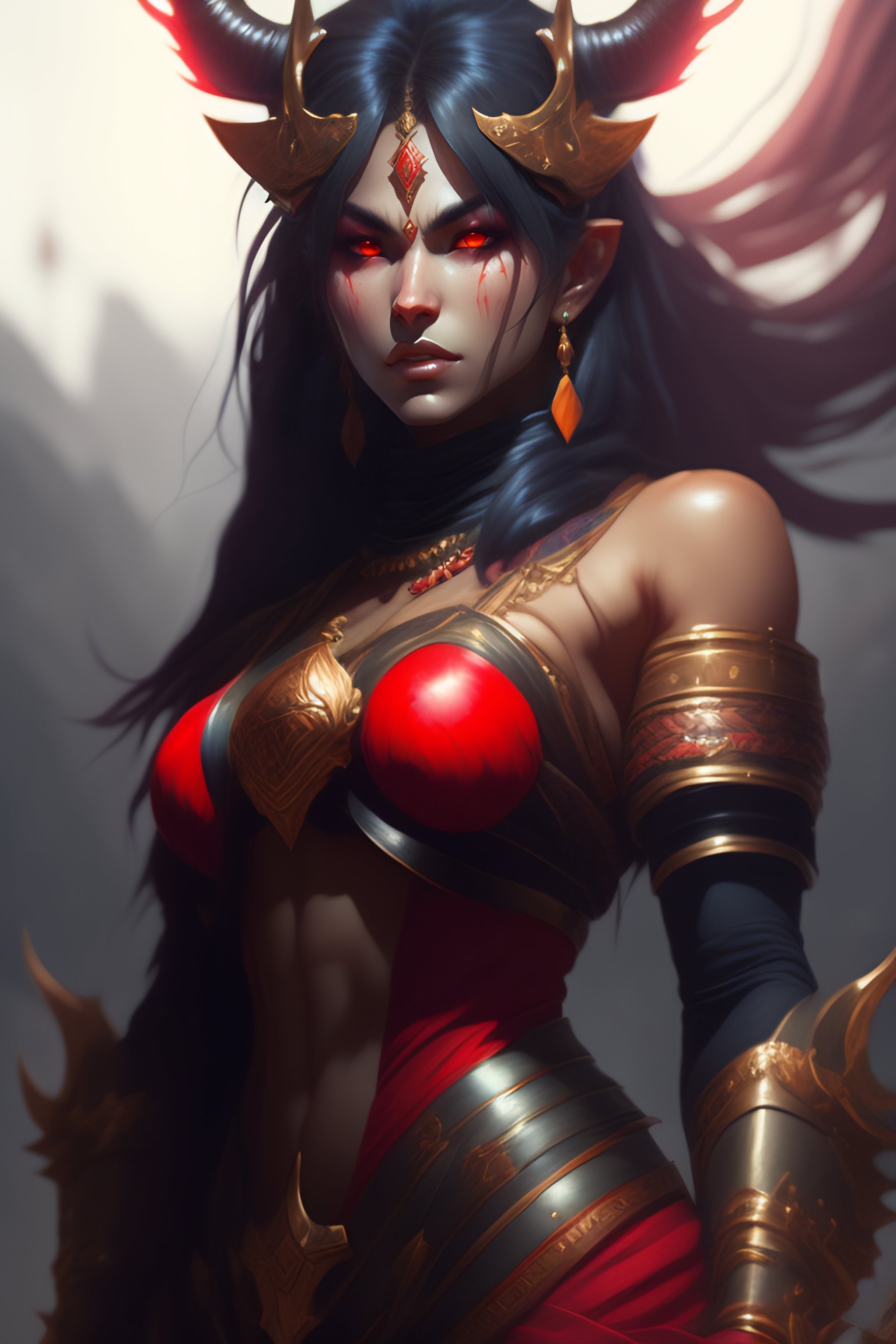 Portrait of four armed red oni by greg rutkowski, digital art, horror, trending on artstation, anime arts, featured on pixiv, hd, 8k, highly detailed, good lighting, beautiful, epic, masterpiece - h 768