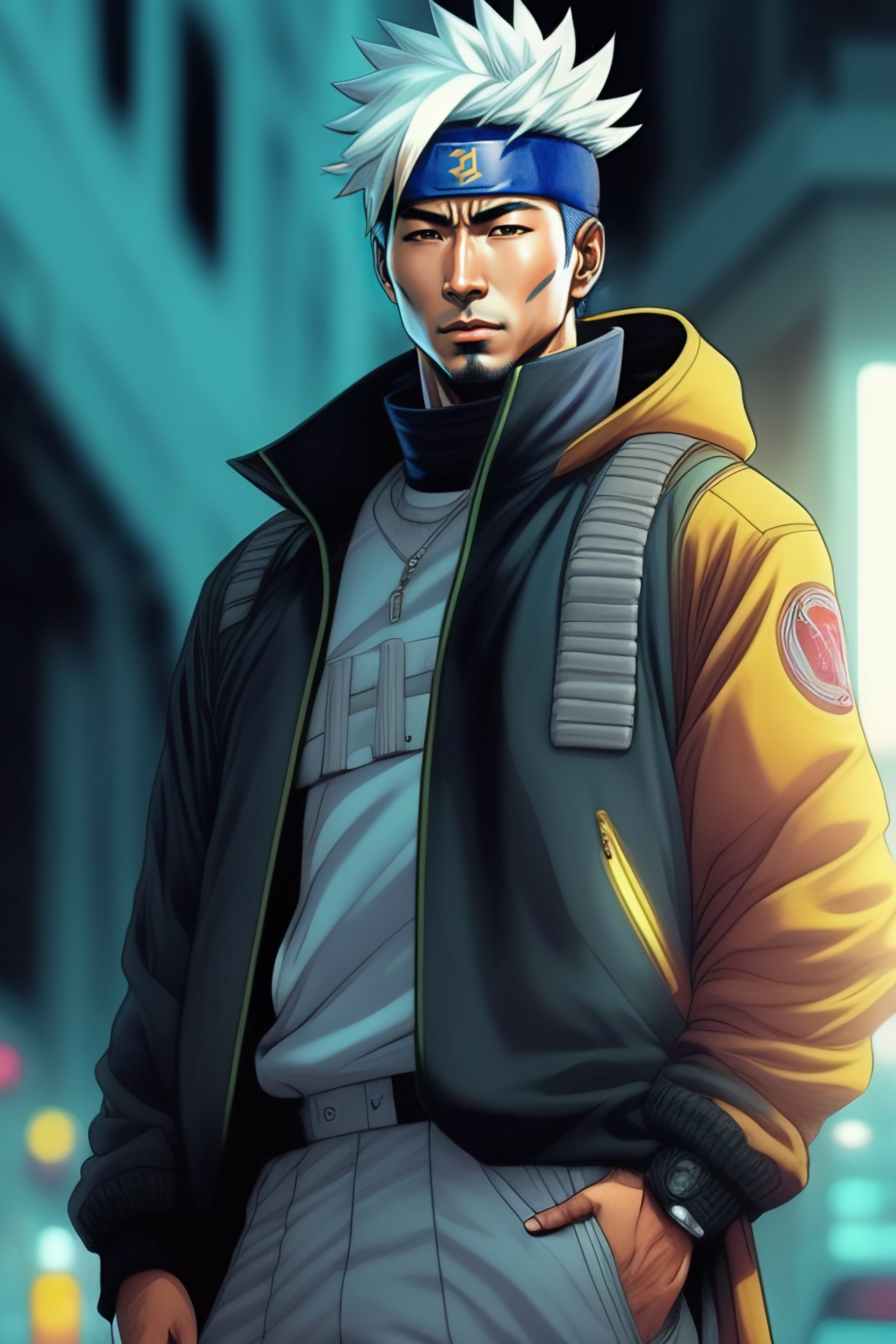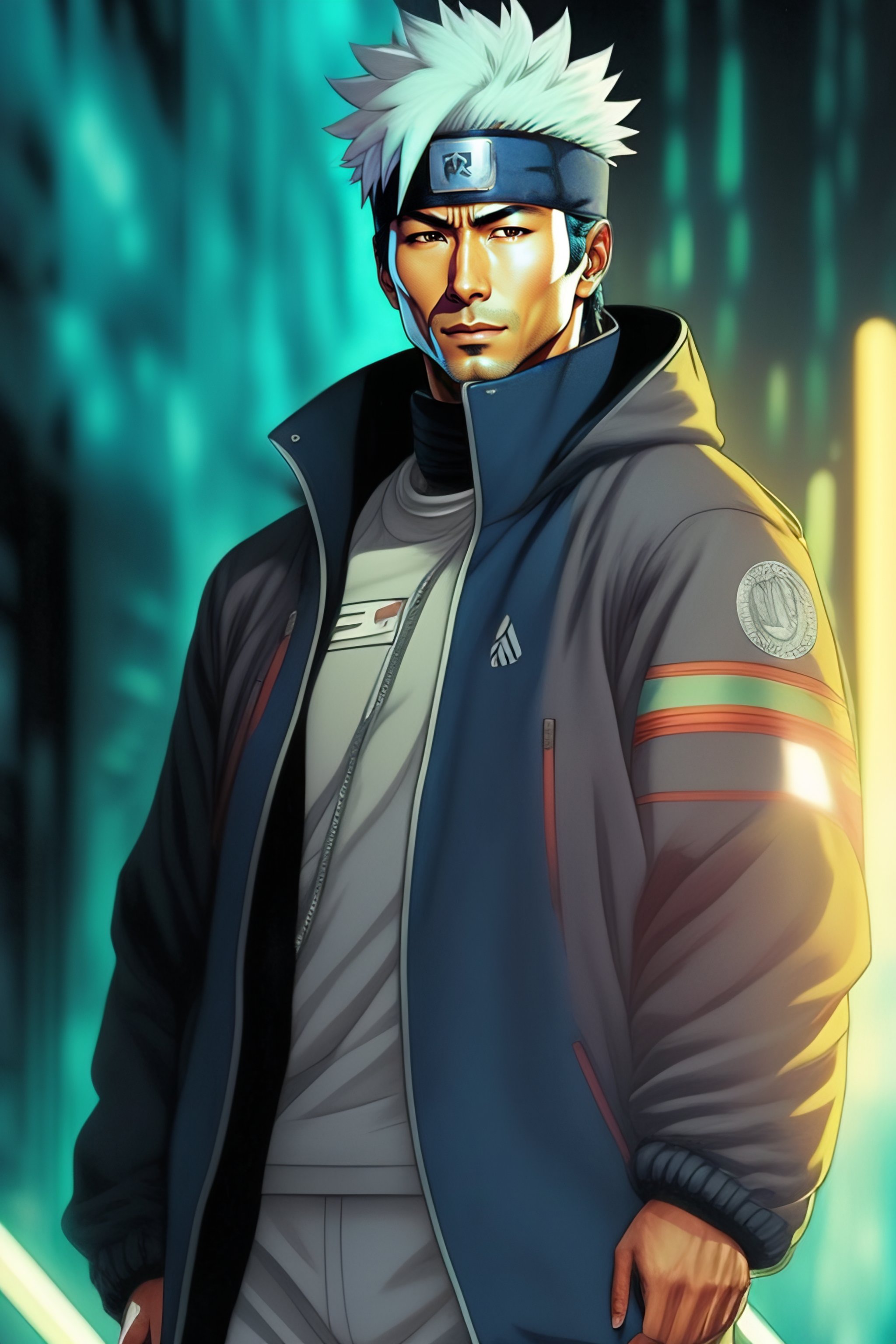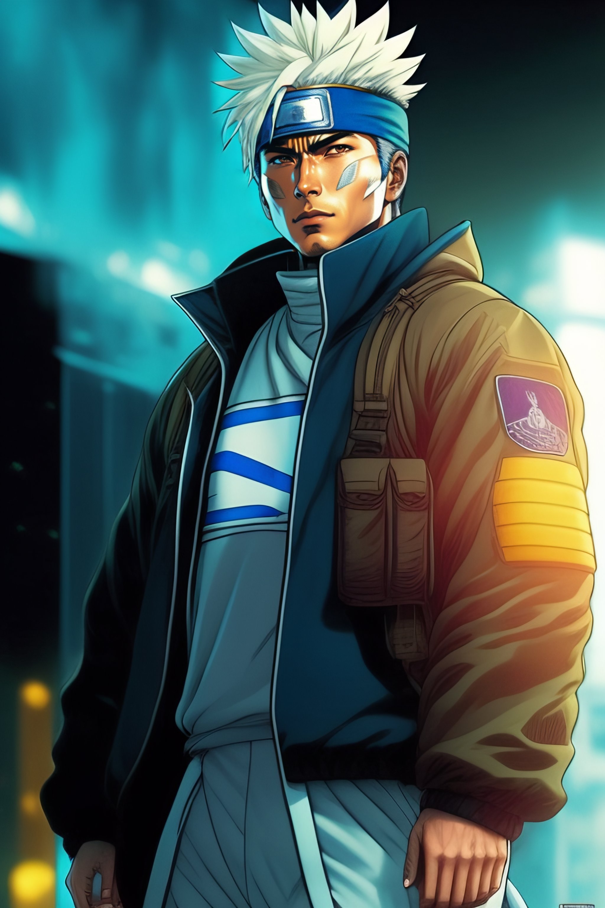 Kakashi hatake in tech gear clothes. concept art by james gurney and mœbius. cinematic, dramatic lighting