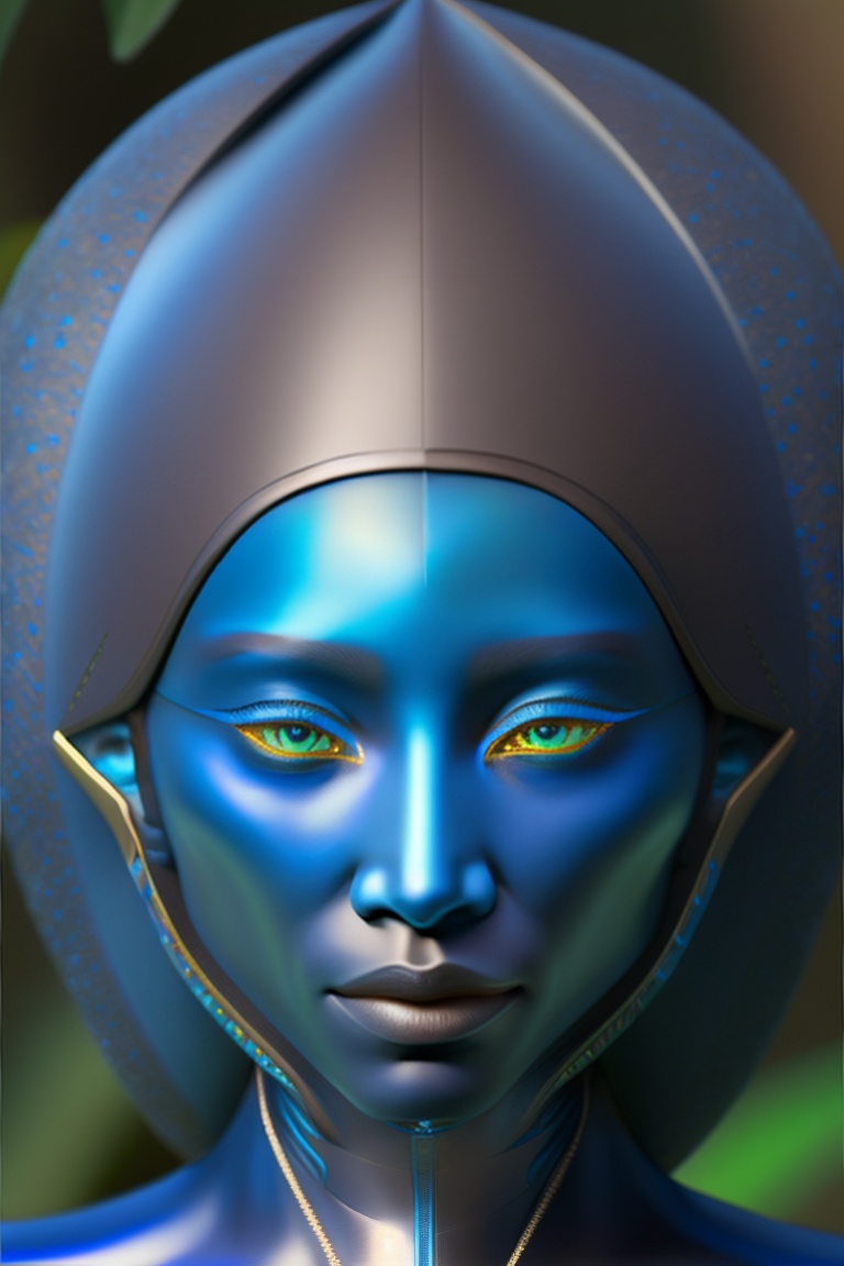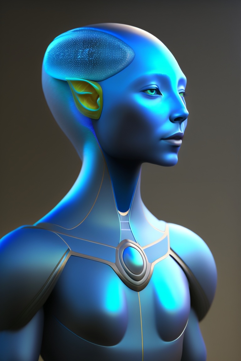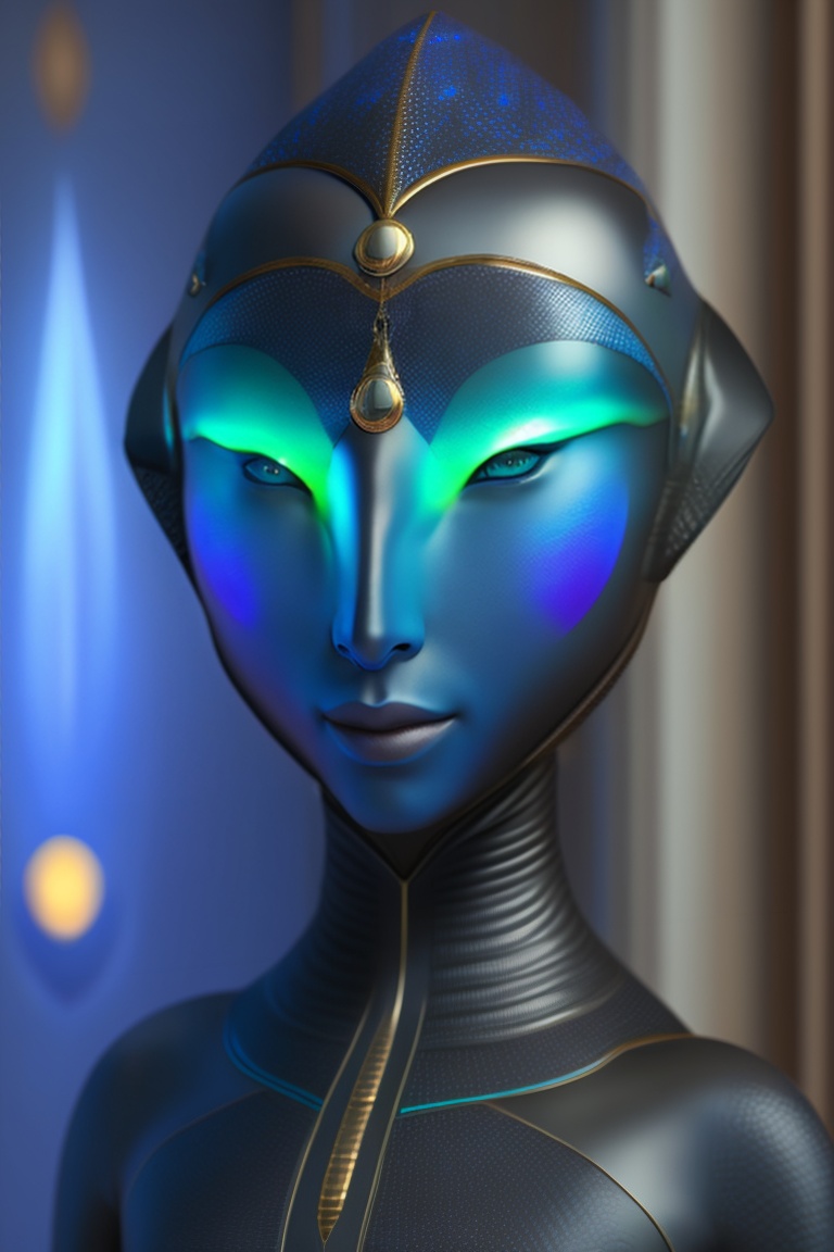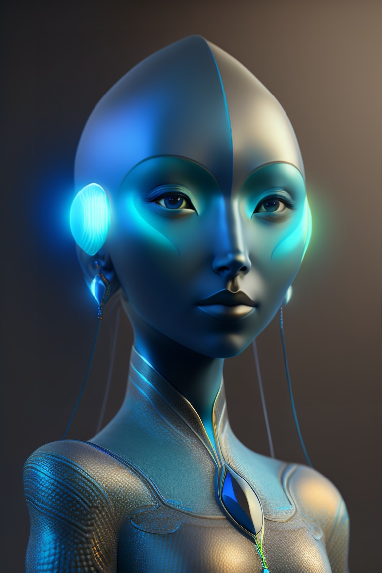 The arcturians are tall beings. they have a skin of blue-green or bluish-gray, which emits a subtle glow, almost like a bioluminescence. their bodies are thin and graceful, with slightly elongated proportions relative to the human standard.the head is large in proportion to the body, and the eyes are very expressive, they look like two large black almonds, standing out strongly against the bluish skin. they don't have hair. their ears are small and almost nonexistent, and the nose is only a small elevation above the upper lip. the mouth is small and appears to have no teeth when closed. the arms are long and thin, ending in hands with three or four long, thin fingers, each with a kind of cushion at the tip, perhaps for sensitive manipulation of objects. the legs are thin and end in small feet. ultra realistic art