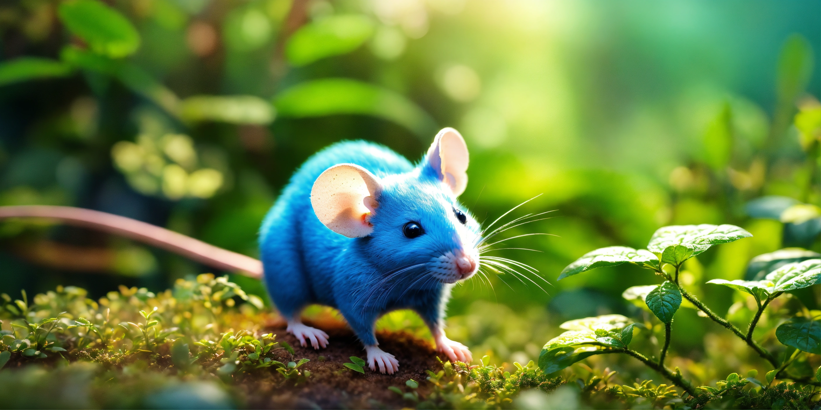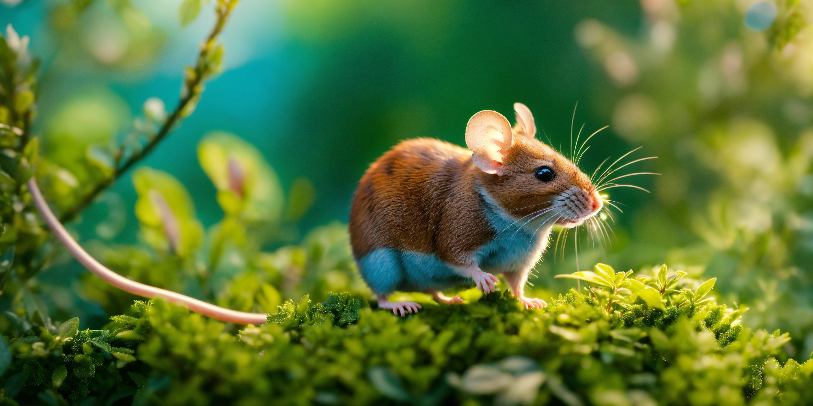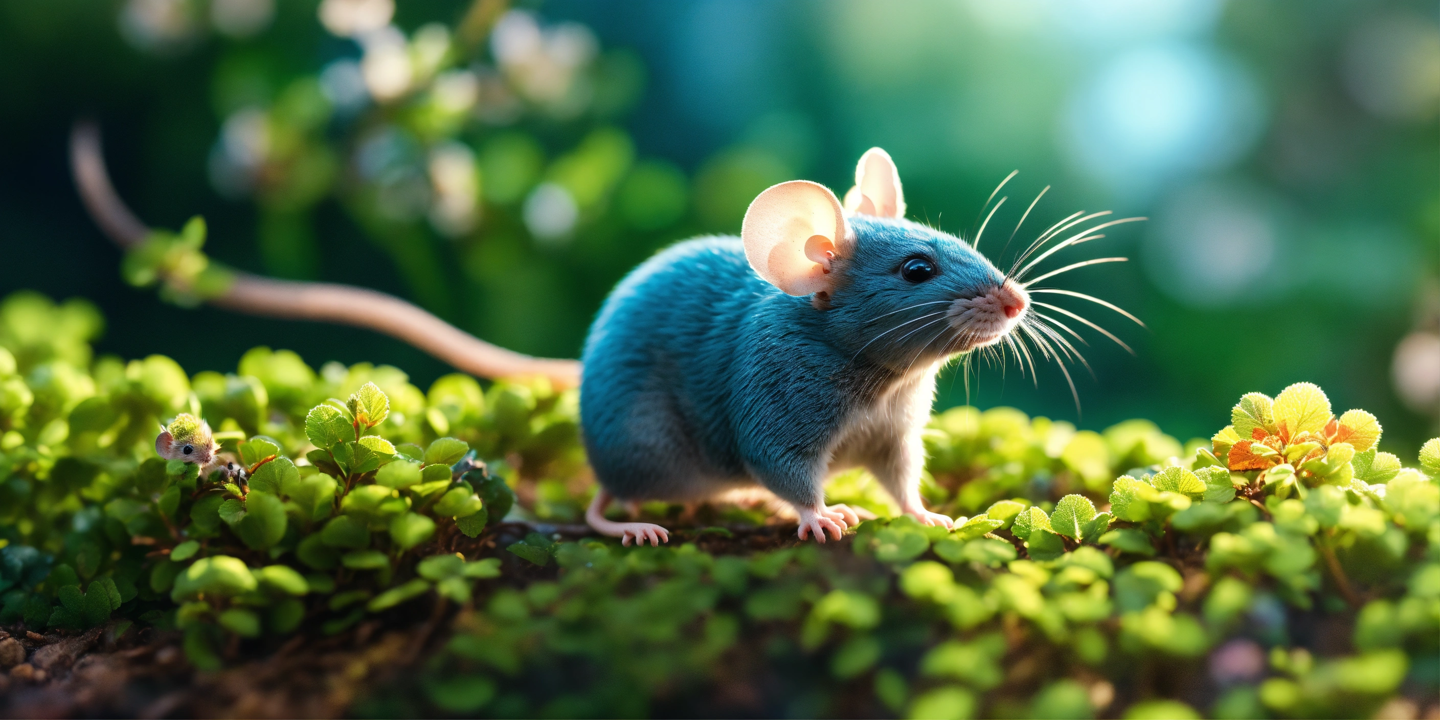 4d photographic image of a tiny mouse living in a small bush. surrounded by lush greenery. realistic, vivid colors octane render trending on artstation, artistic photography, photorealistic concept art, soft natural volumetric cinematic perfect light, uhd, cartoon style