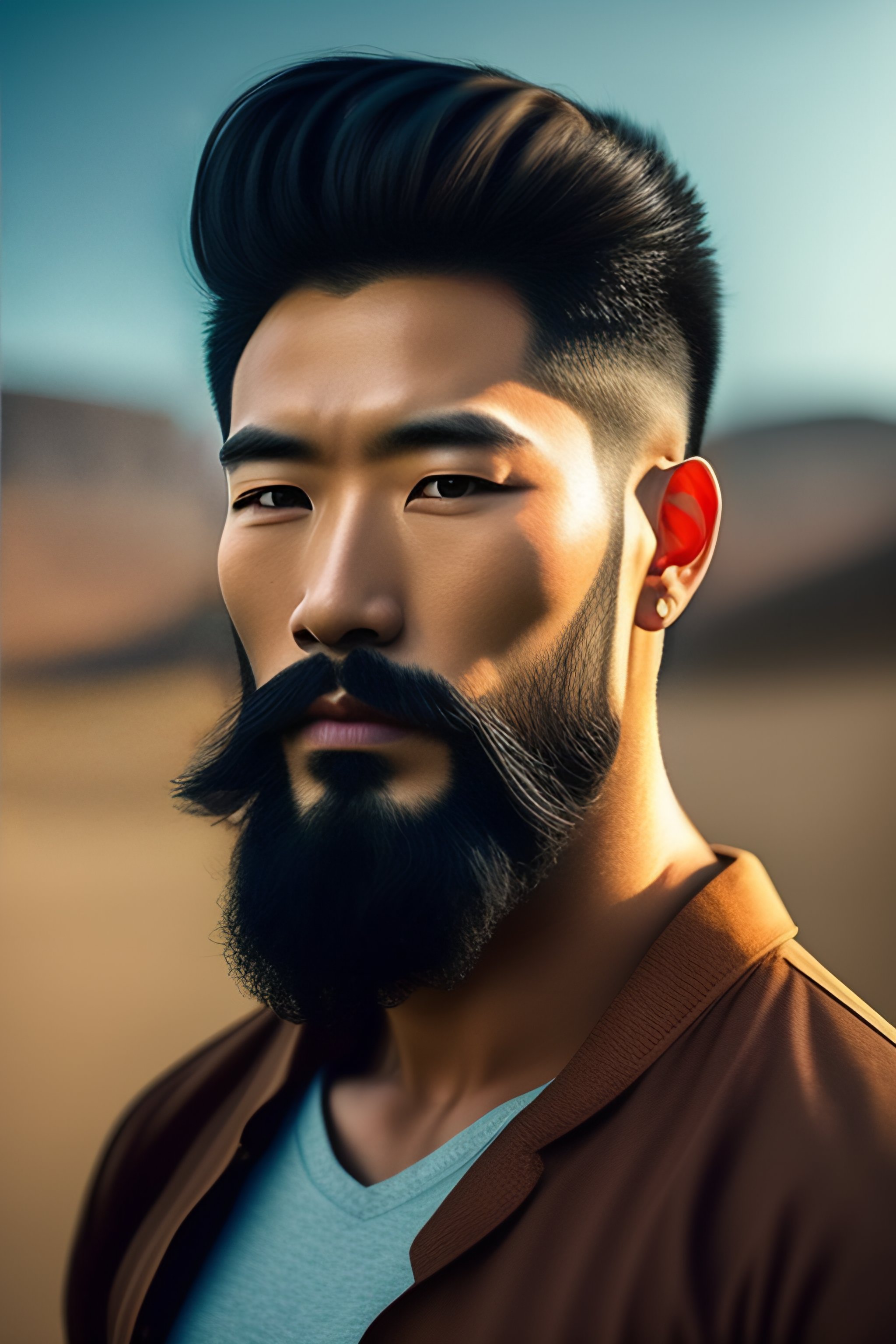 Hombre chino con poco pelo y barba de candado