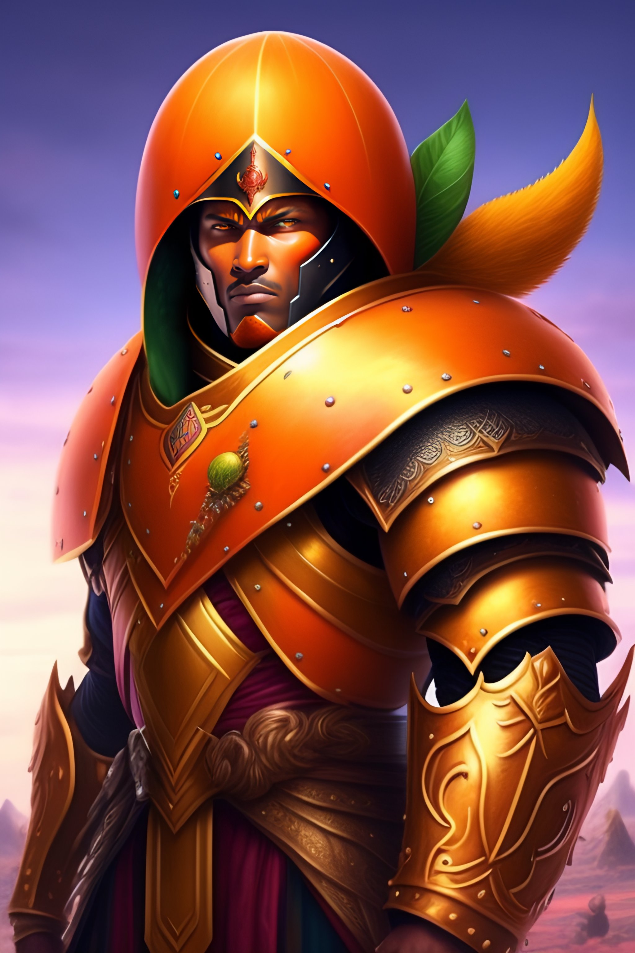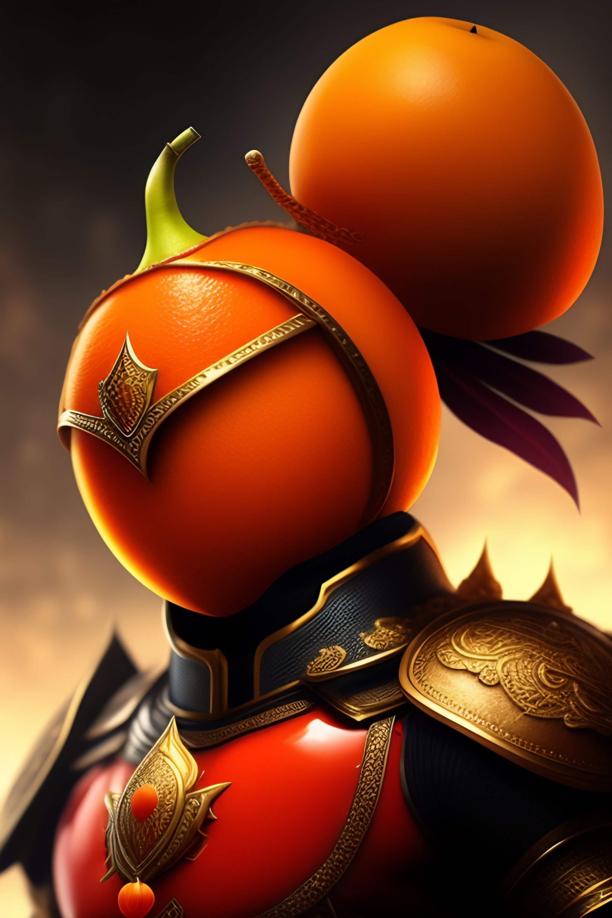 An orange fruit warrior with armor