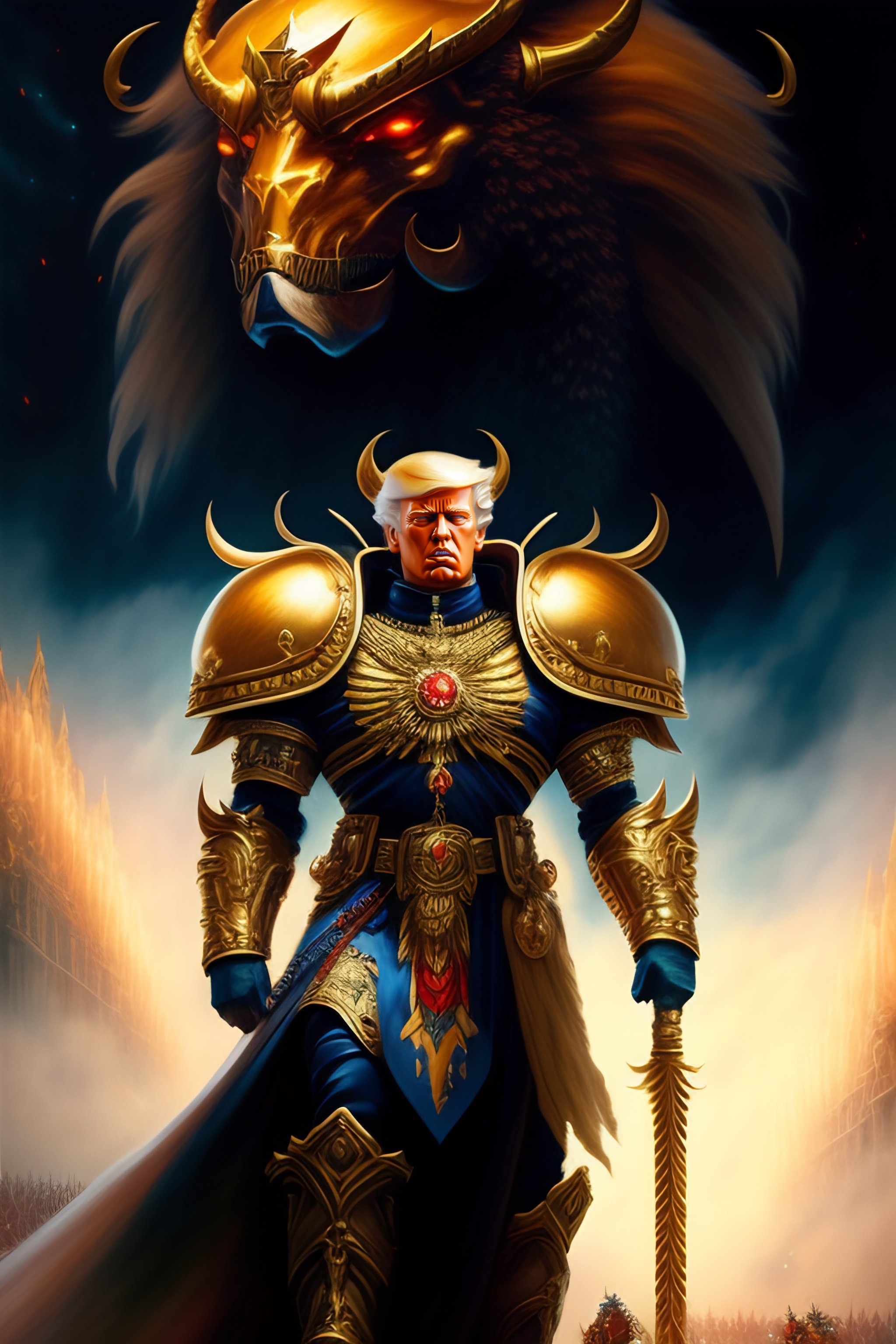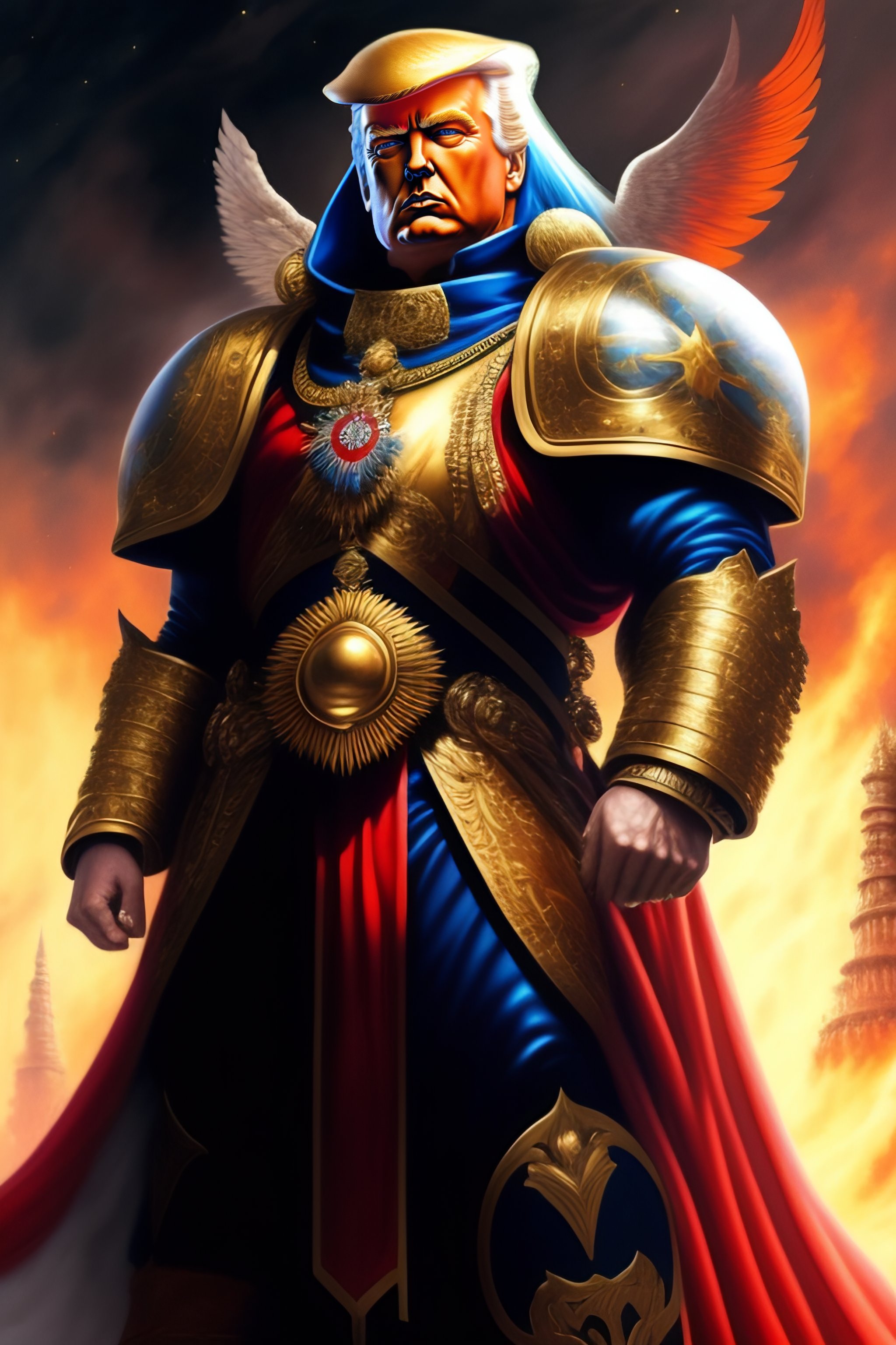 Donald trump as the god emperor of mankind, warhammer 4 0 k universe, immense detail, by john blanche