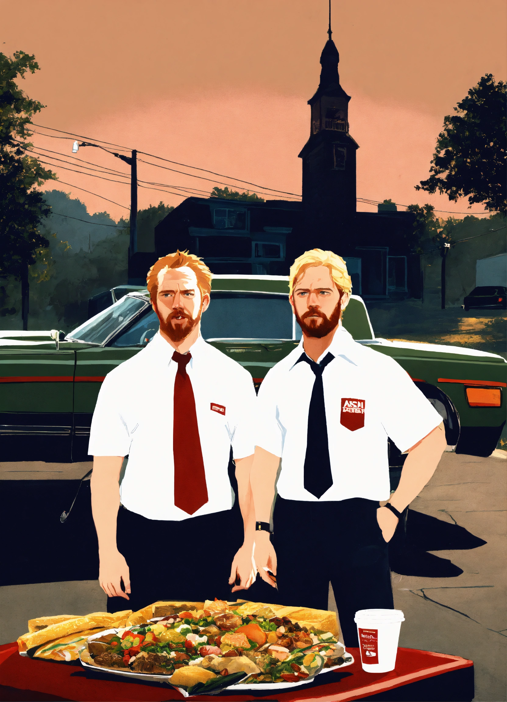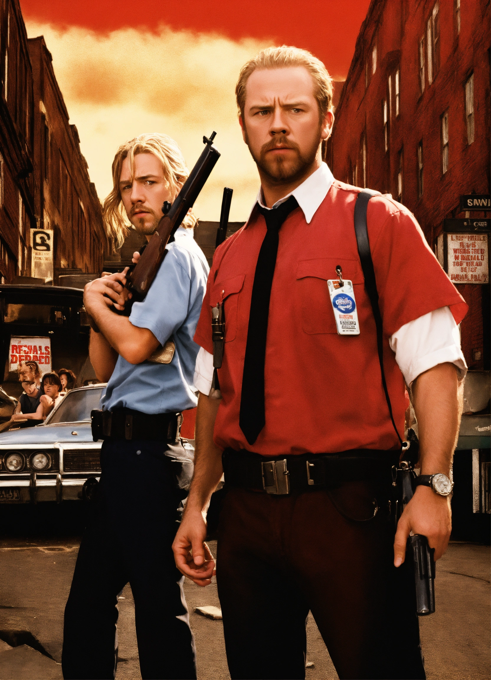 Represent the two main actors of shaunofthedead as realistically as possible